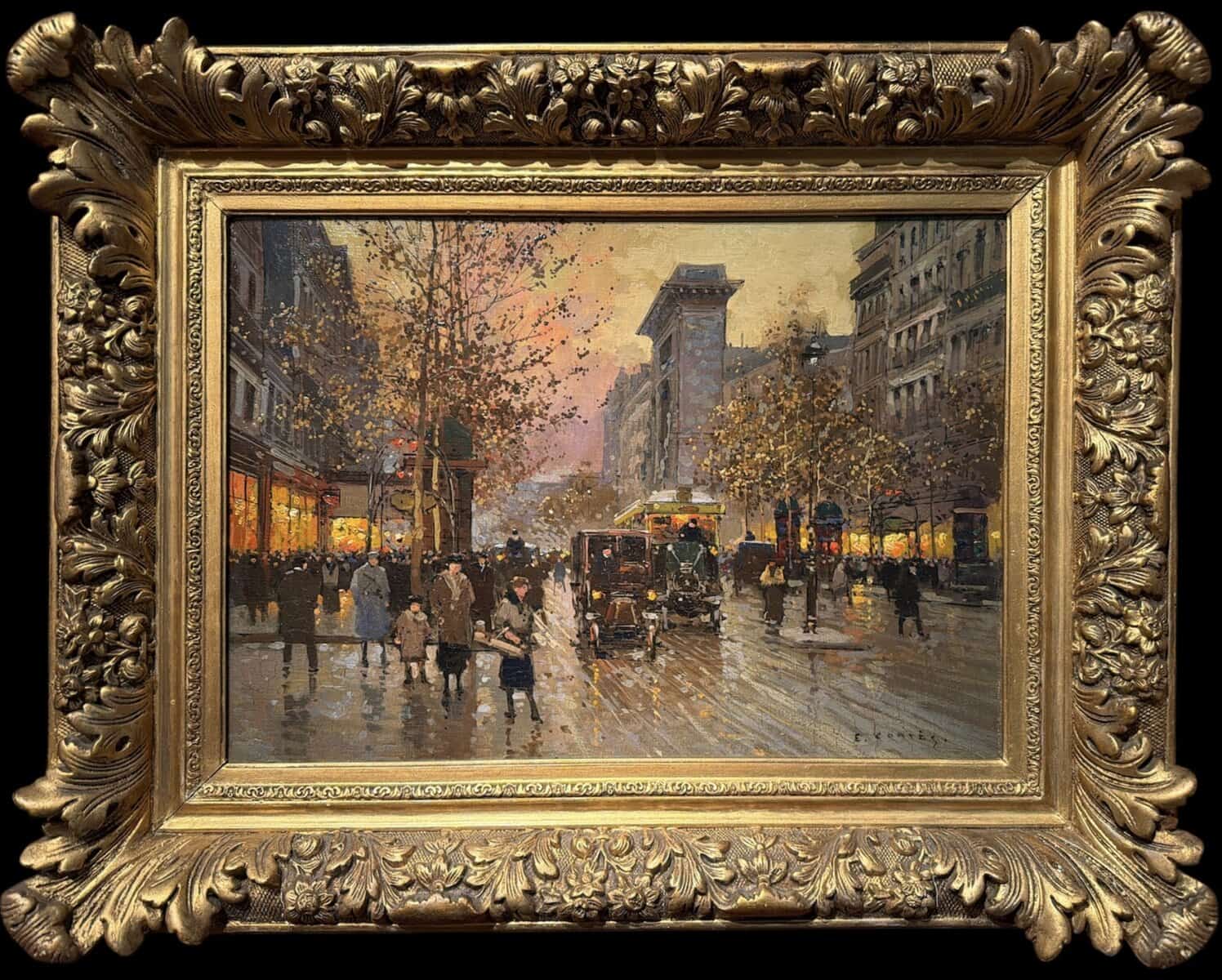 CORTES Edouard Paris Les Grands Boulevards la porte St Denis au crépuscule Huile sur toile signée Certificat du Comité