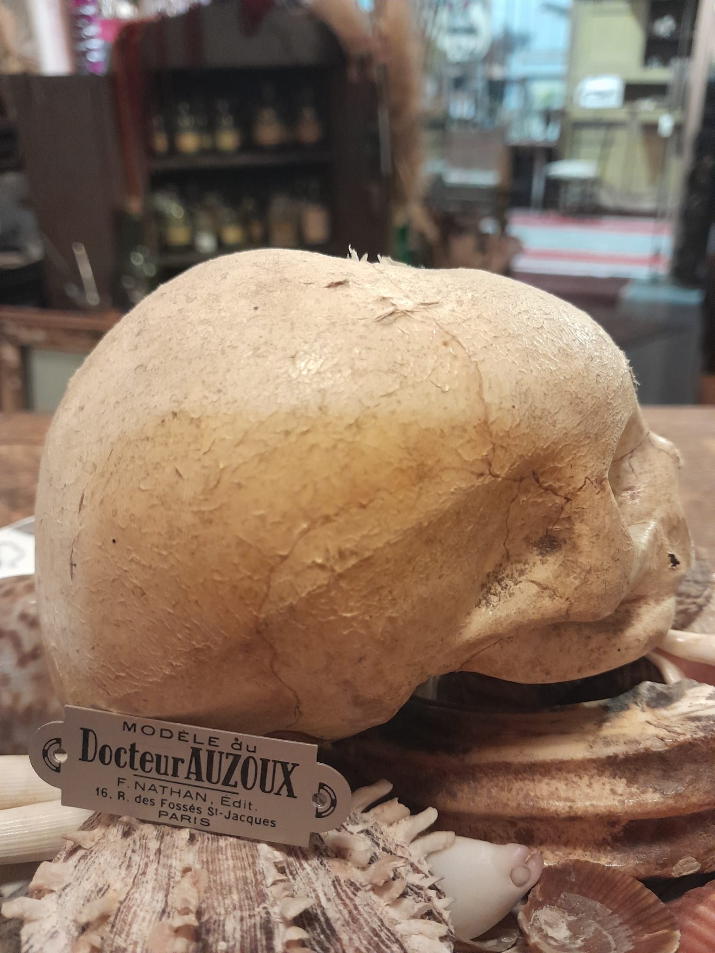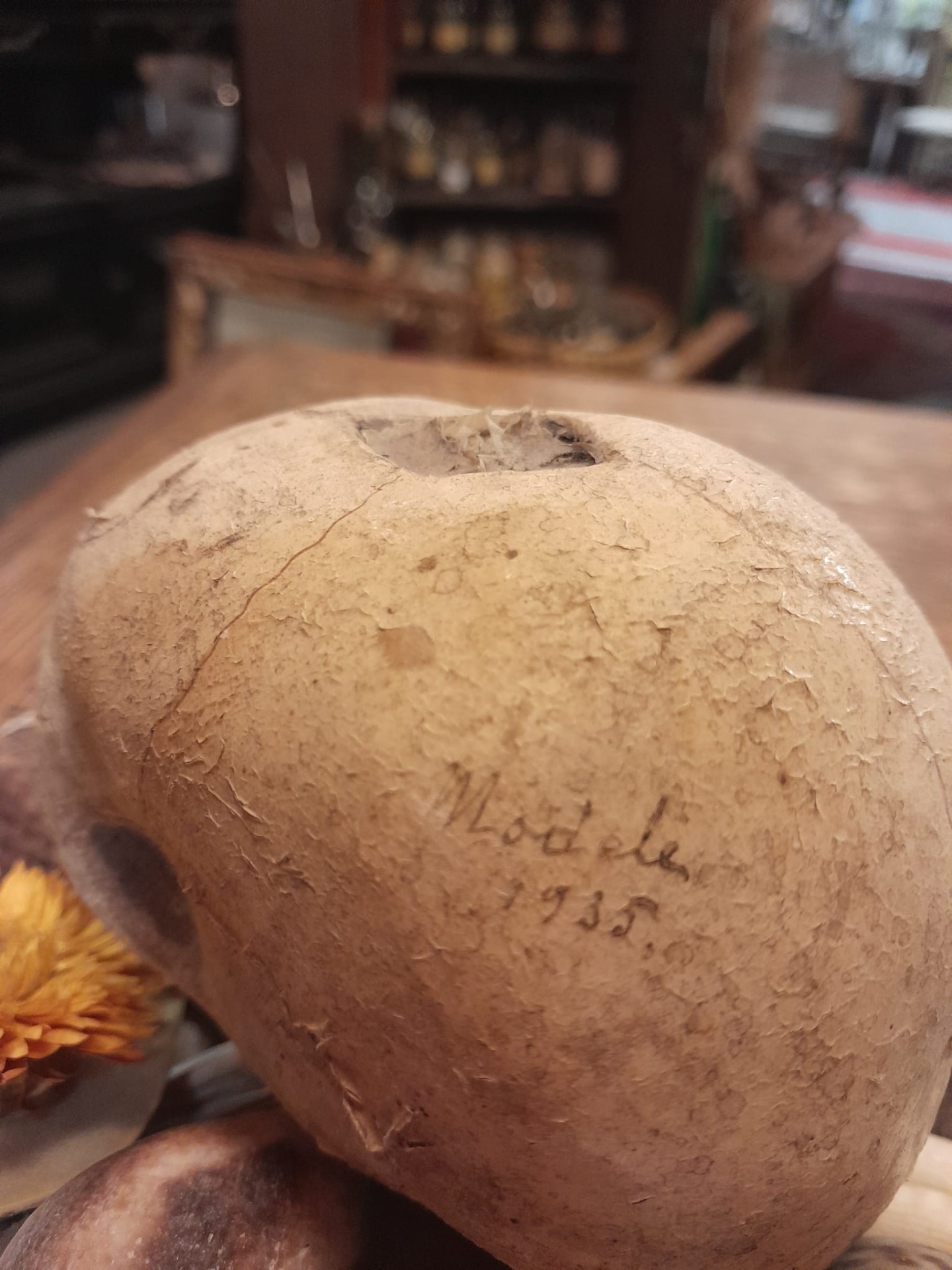 Crâne de foetus en papier mâché, en provenance des ateliers du Dr Auzoux.