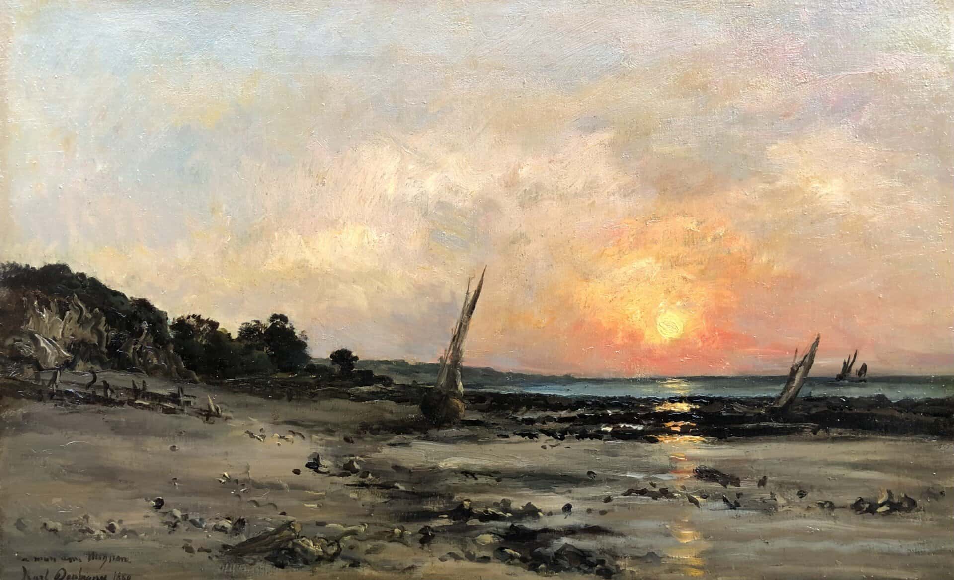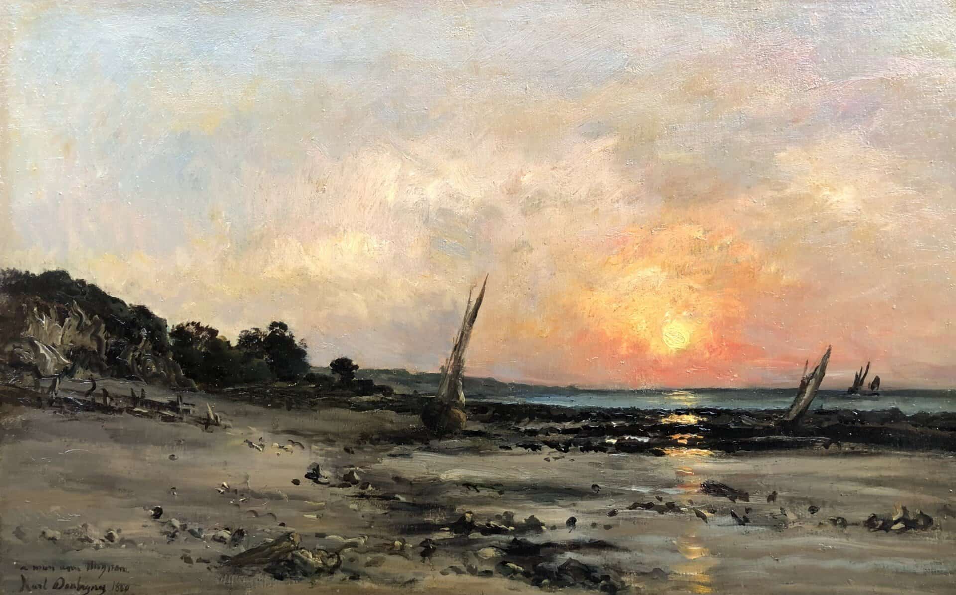 DAUBIGNY Karl Soleil couchant en bord de mer Huile sur toile signée datée dédicacée Certificat d’authenticité.