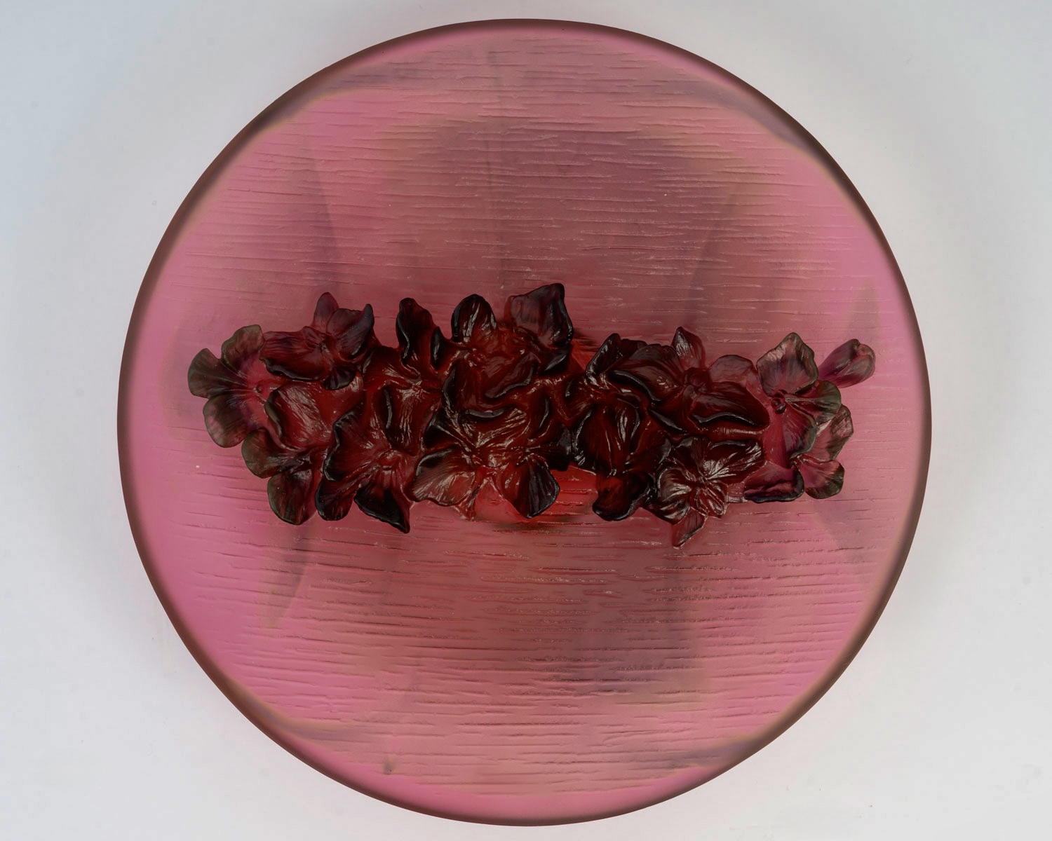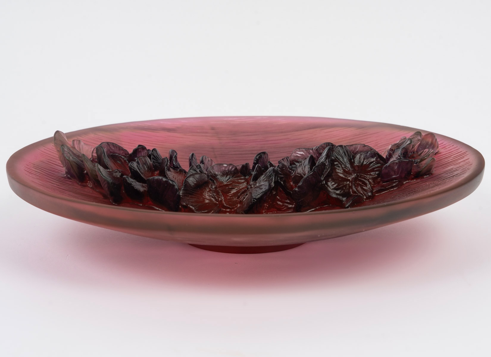 Coupe « Fleur d’Orchidée » en cristal dégradé rose, violet et rouge de Daum.