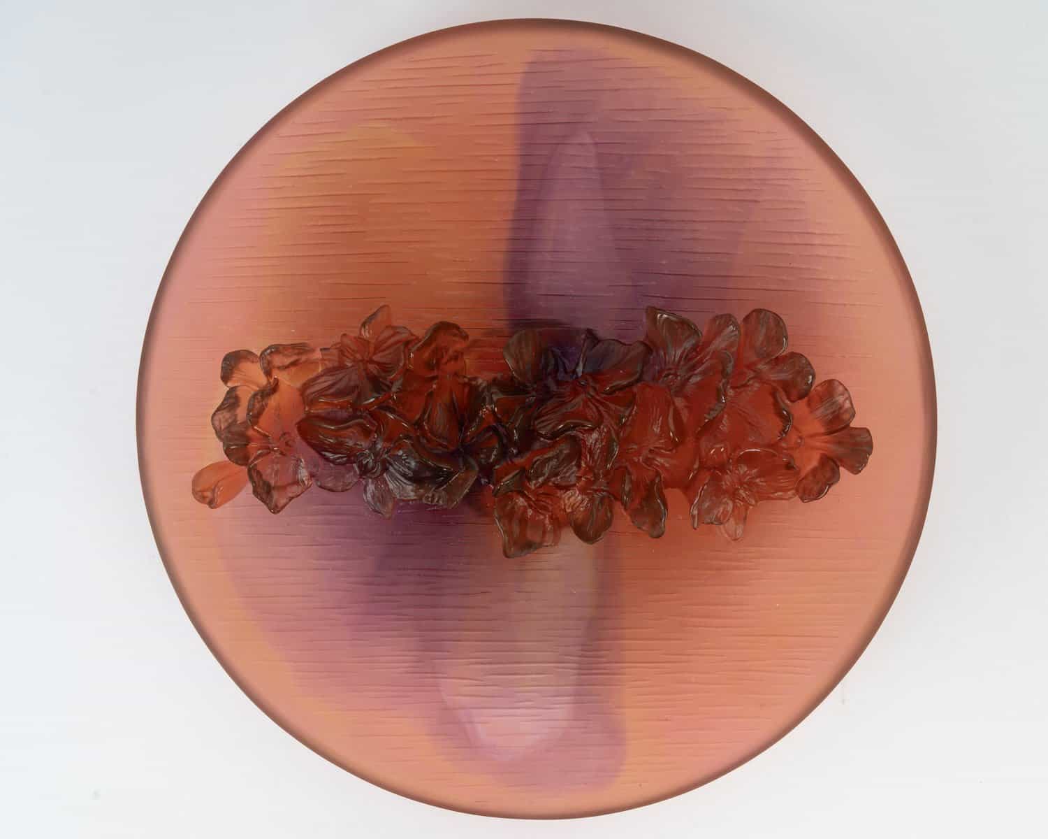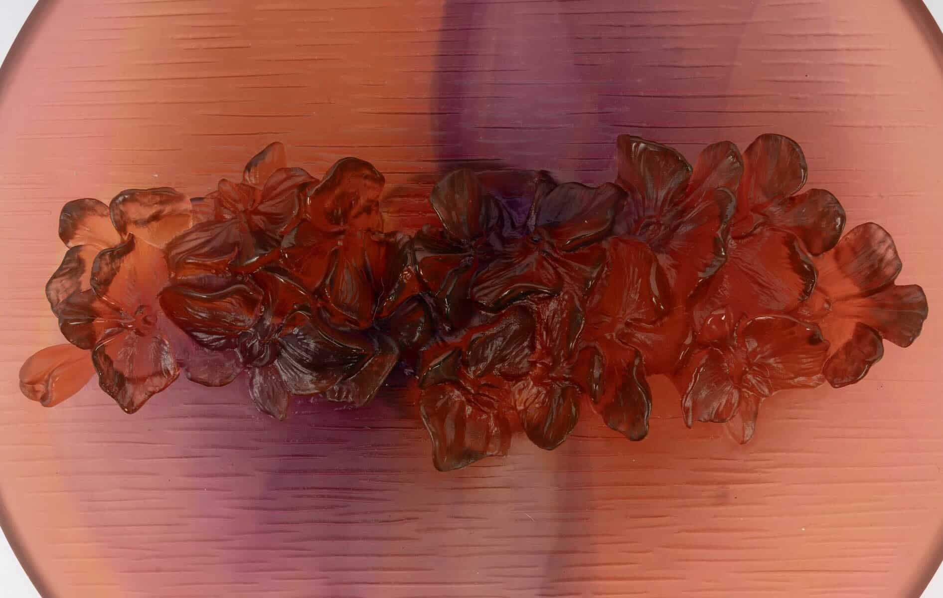 Coupe « Fleur d’Orchidée » en cristal dégradé rose, violet et rouge de Daum.
