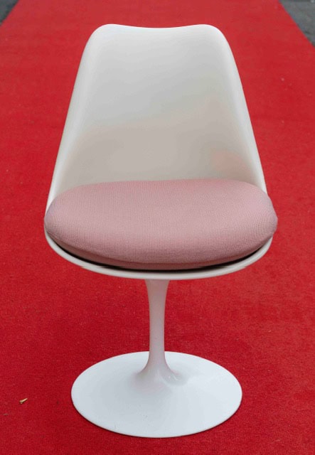 Six chaises « TULIP » pivotantes à coques en fibre de verre blanc sur piètement en fonte d’aluminium