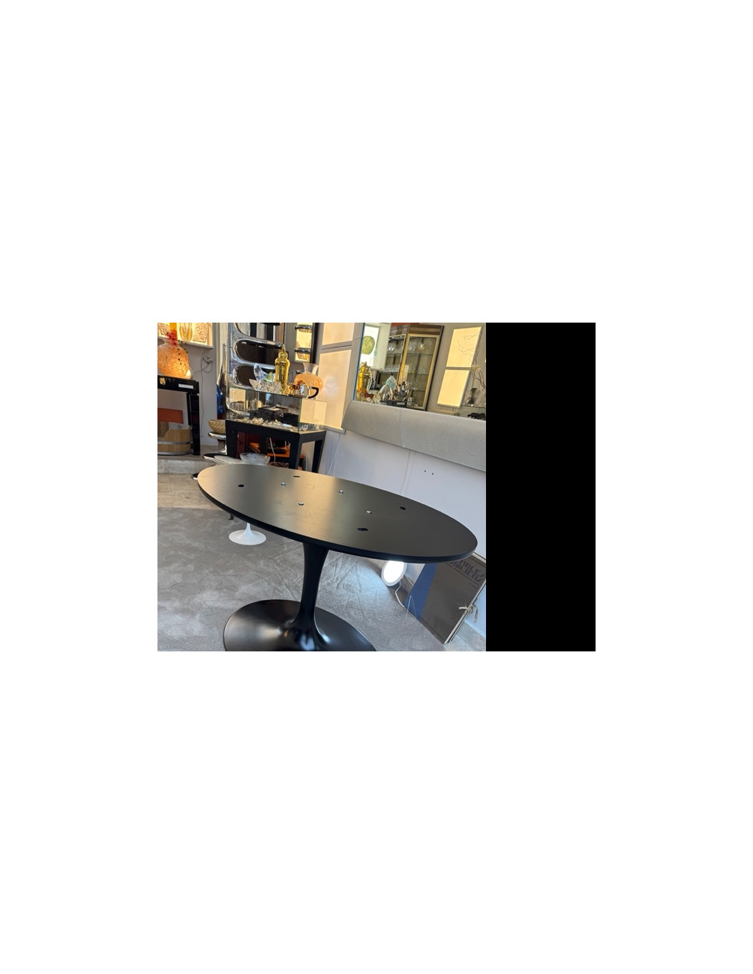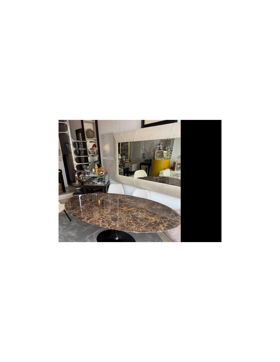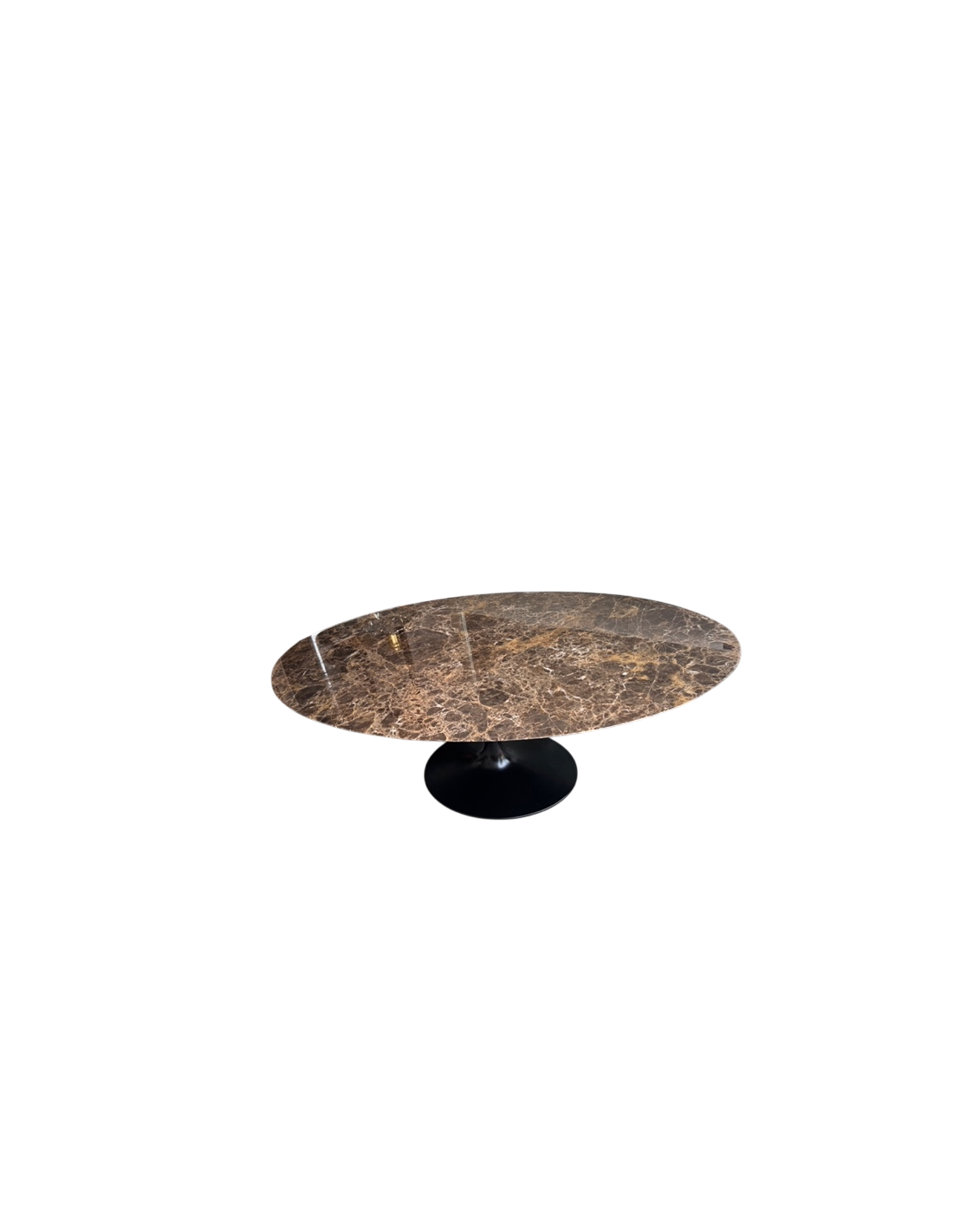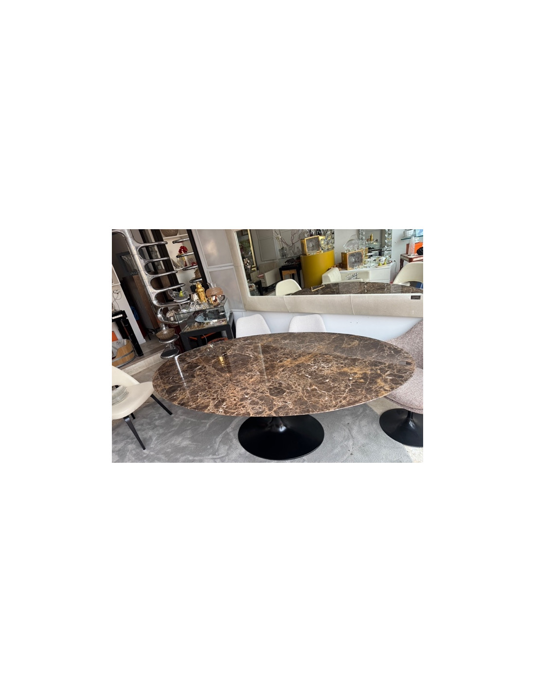Knoll & Eero Saarinen — Table Tulip marbre « Emperador ,Plateau ovale sur un pied aluminium recouvert de Rilsan Noir .