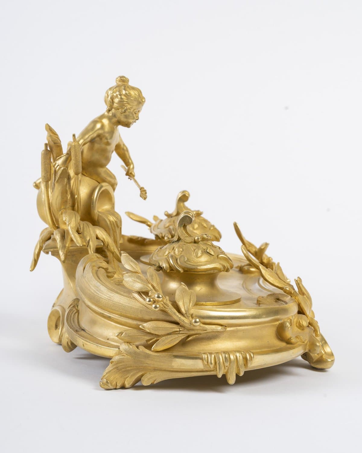 Très beau encrier en bronze doré à foisonnant décor de feuillage.