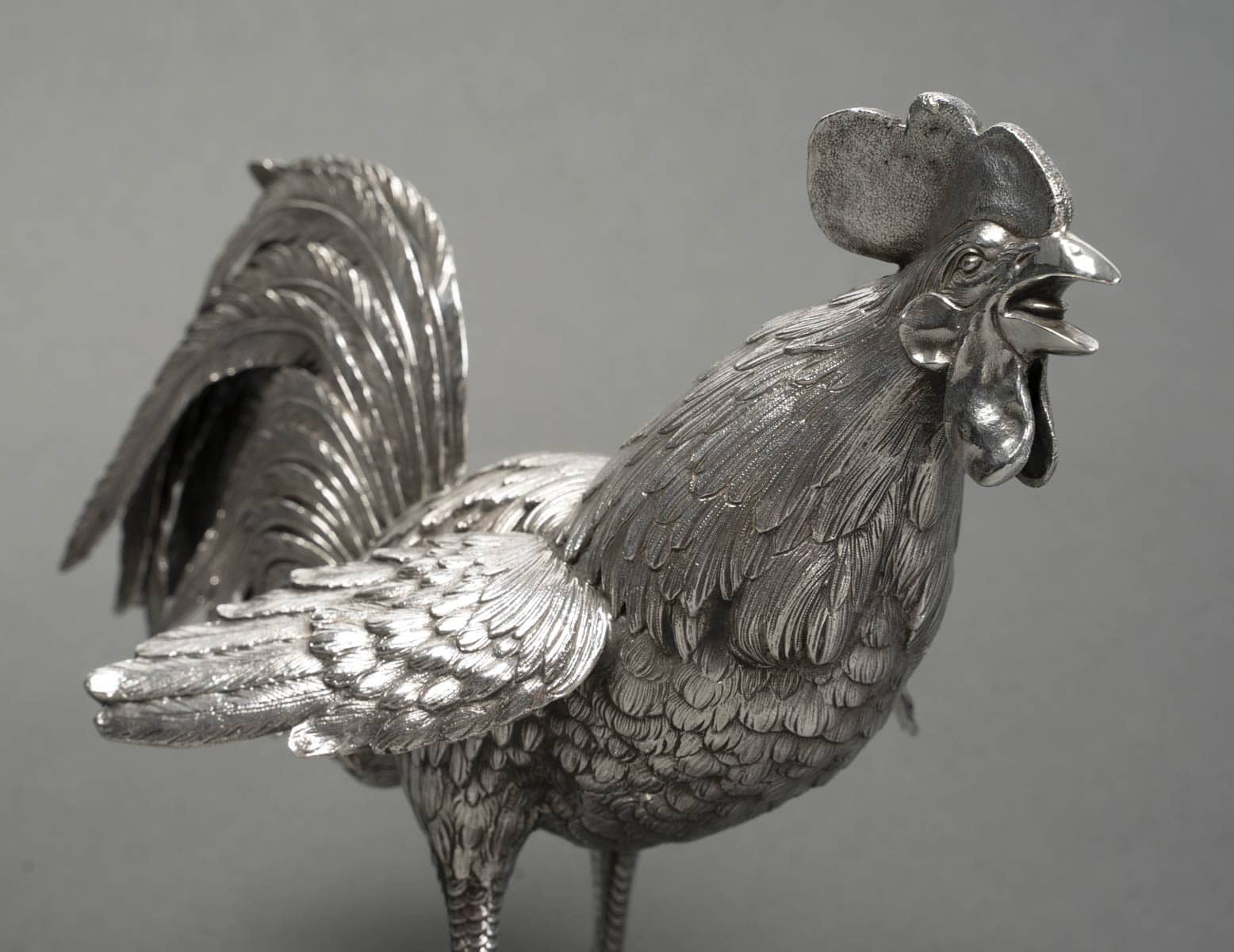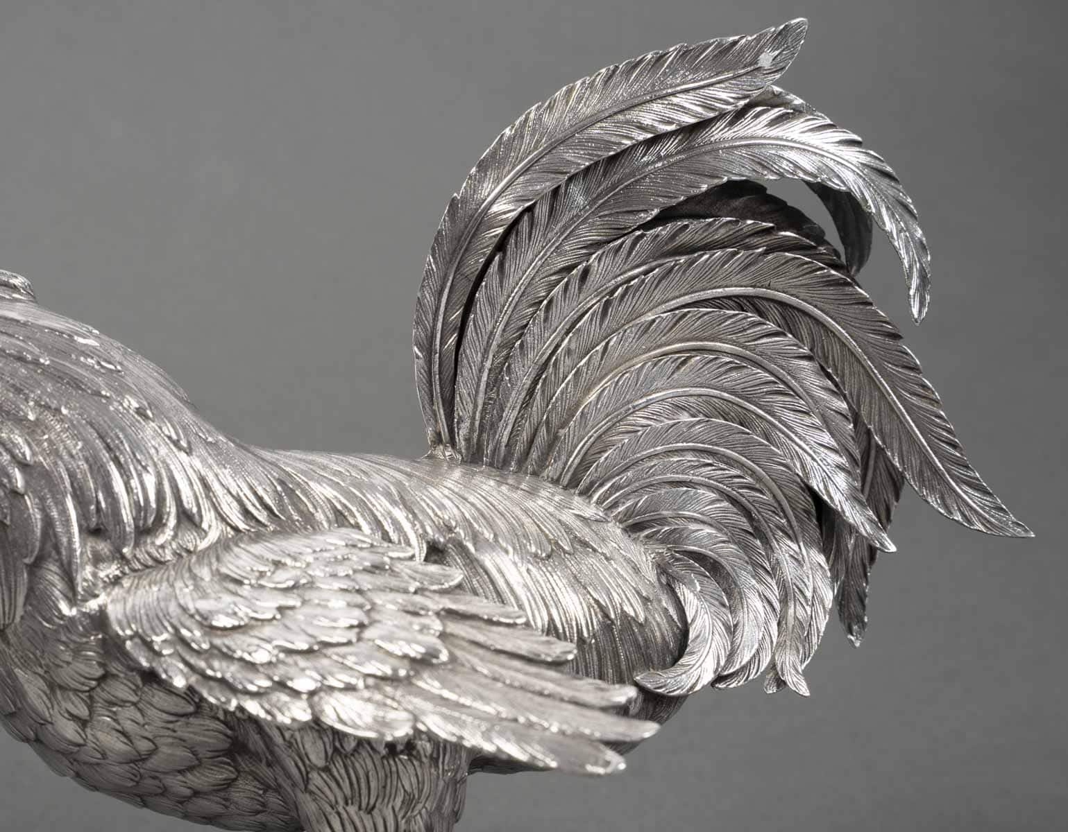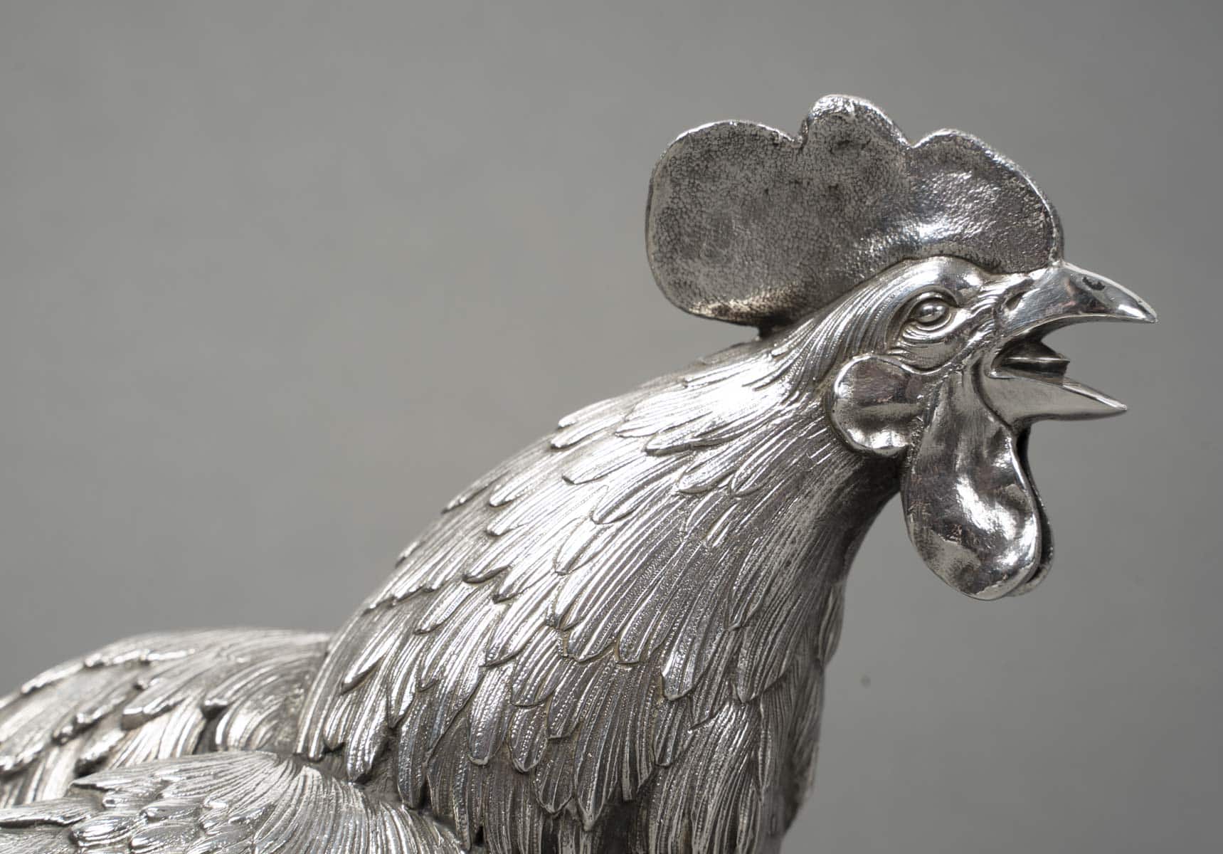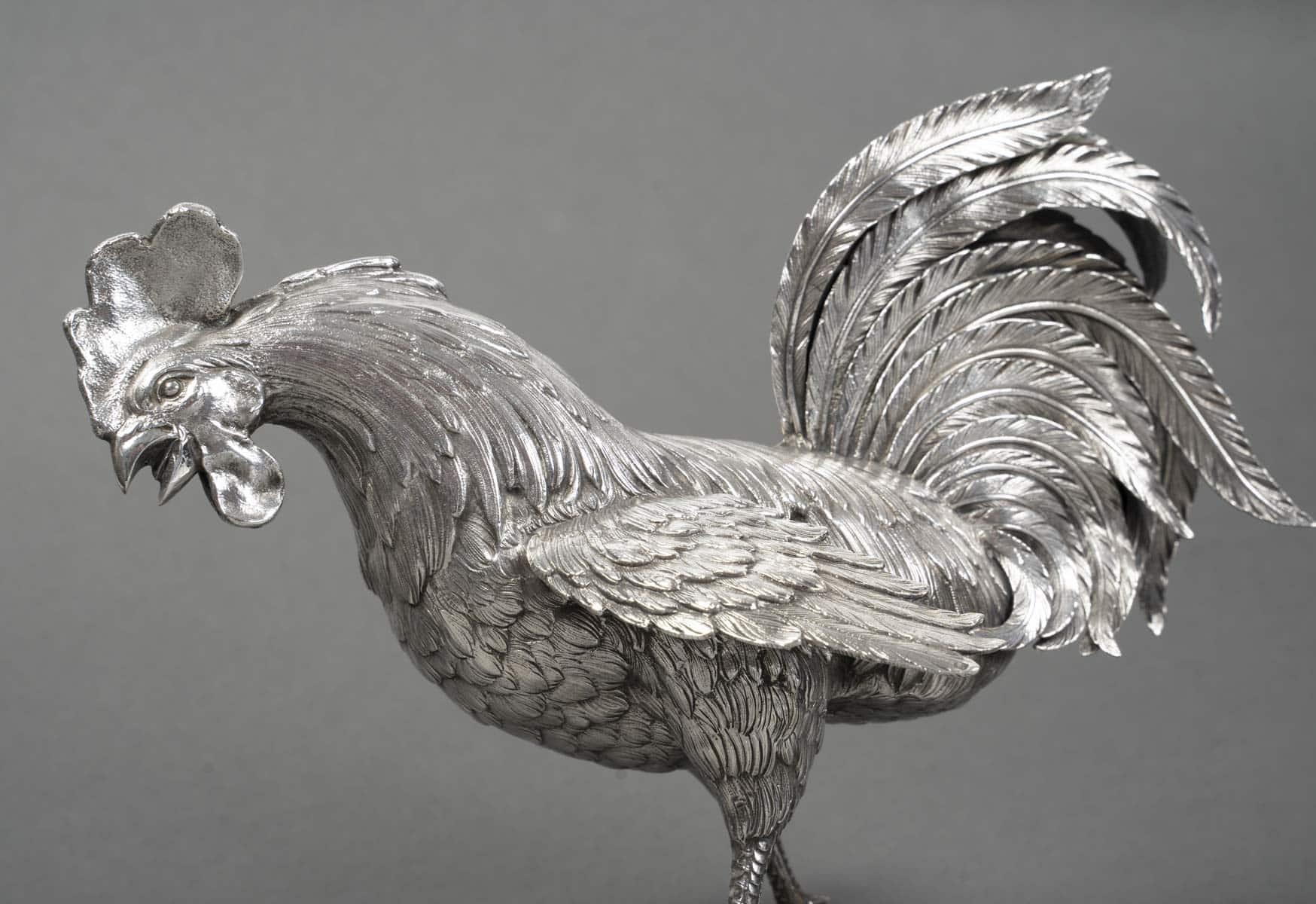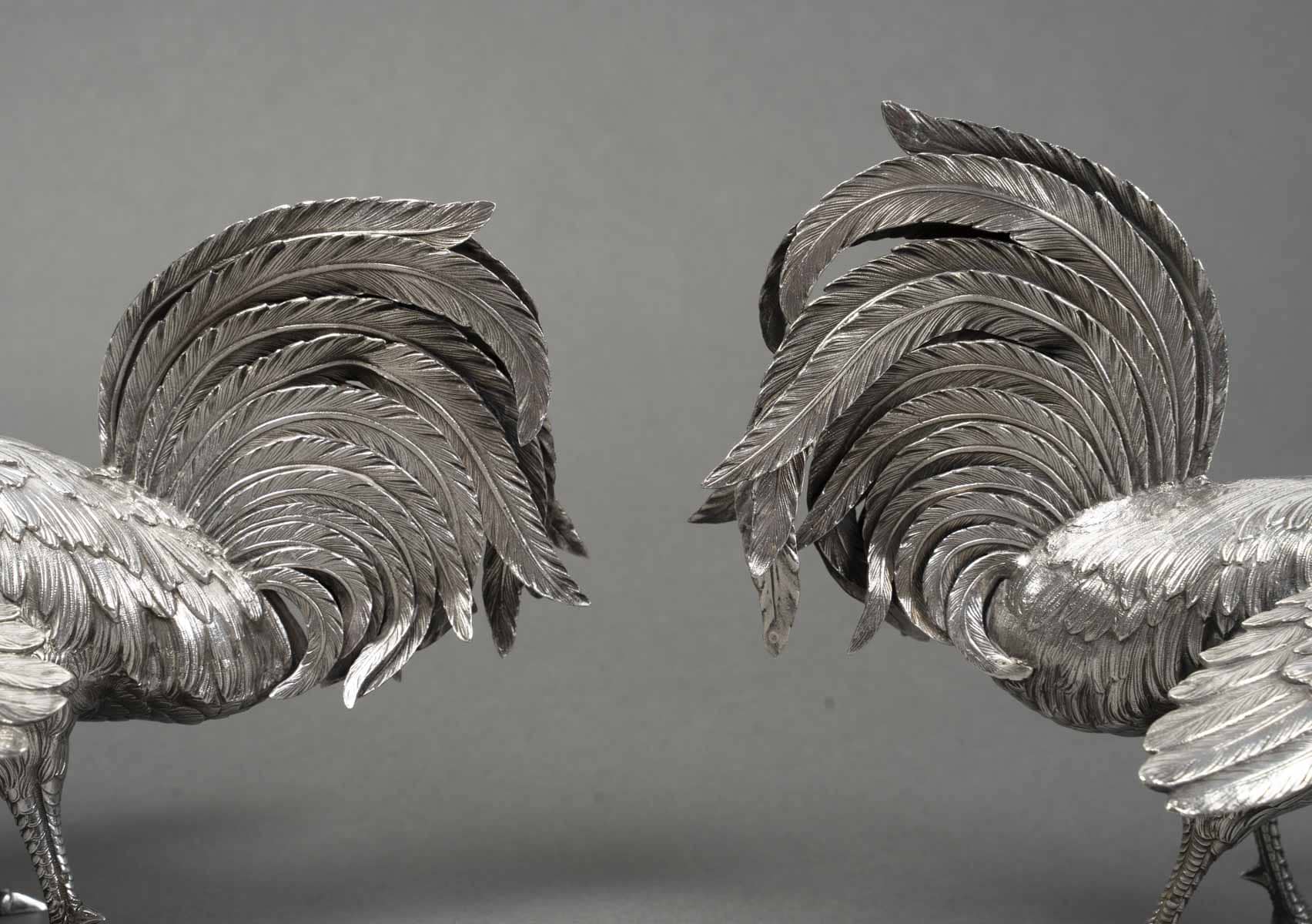 ESCHWEGE Paire de coqs combattant, argent massif circa 1950