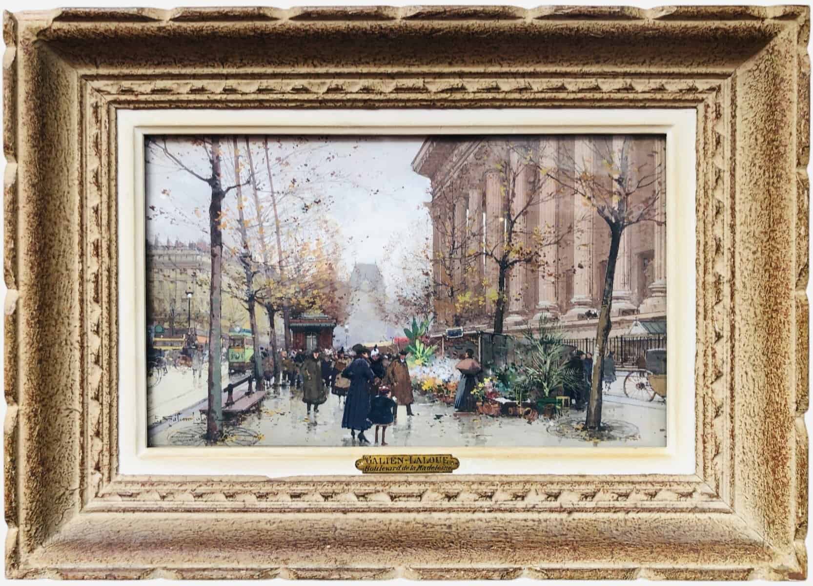 GALIEN LALOUE Peinture Française 20è Paris Le marché aux fleurs de La Madeleine Certificat