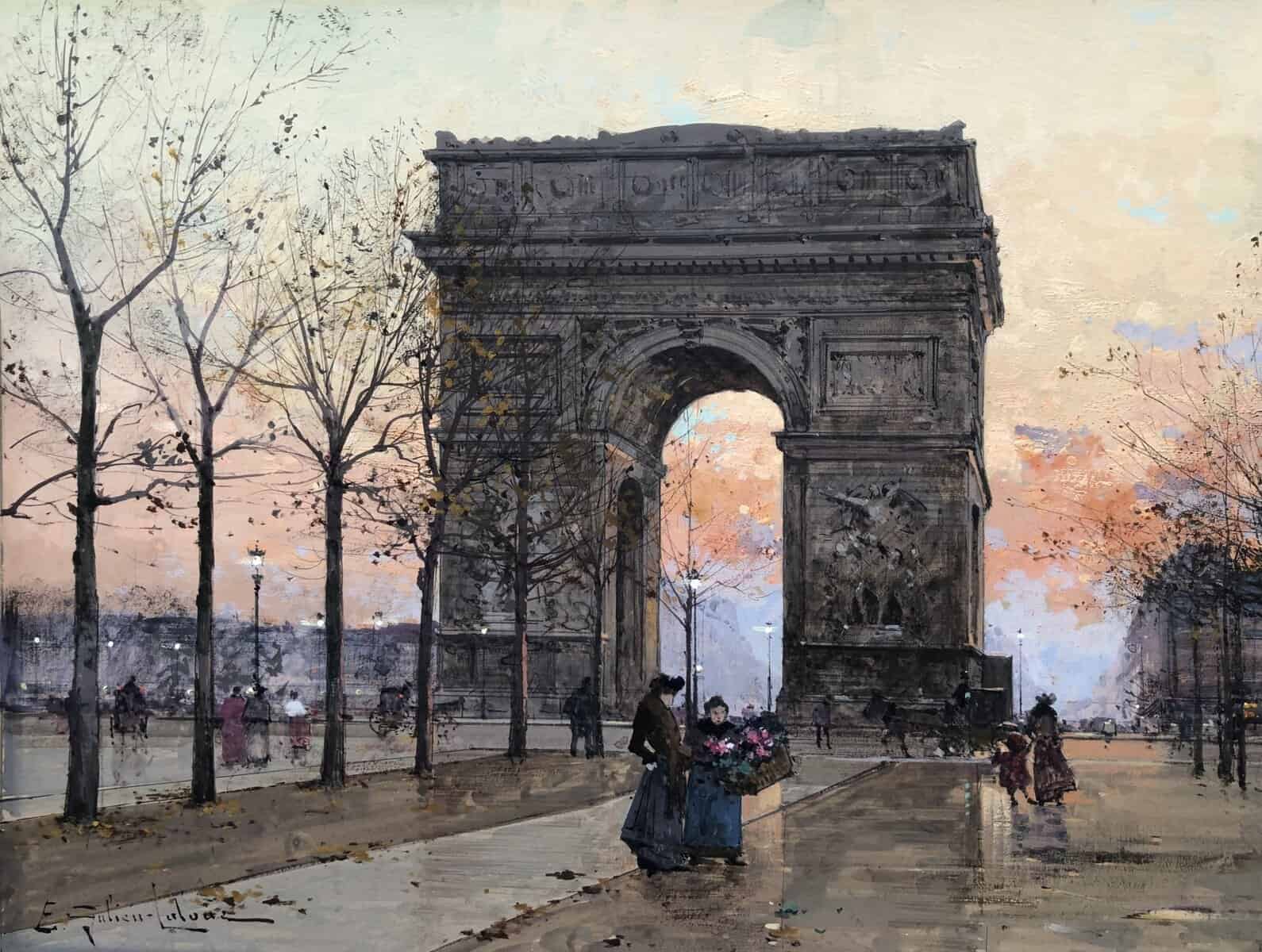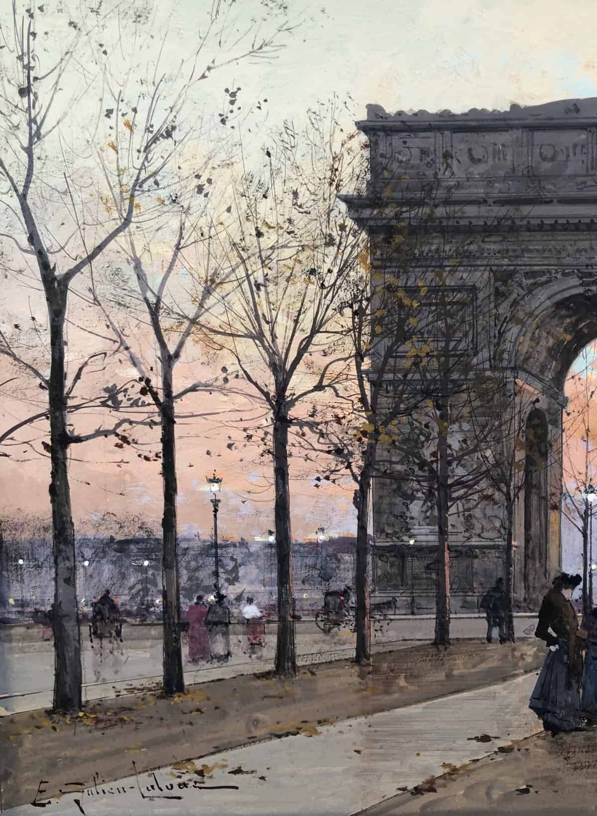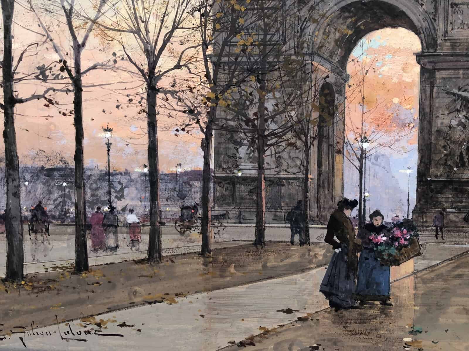 GALIEN LALOUE Peinture Française 20è Paris Place de l’Etoile animée Certificat d’authenticité