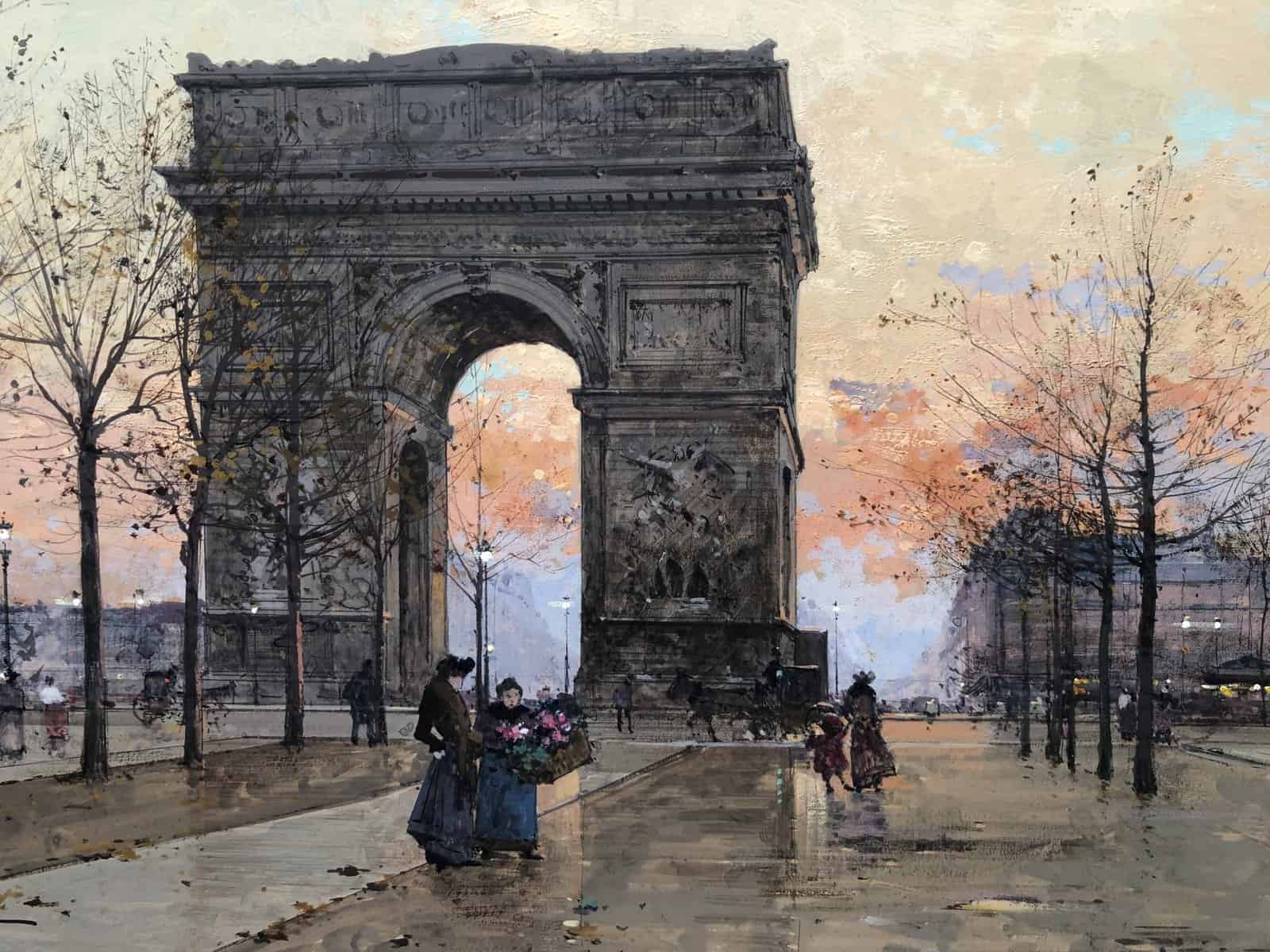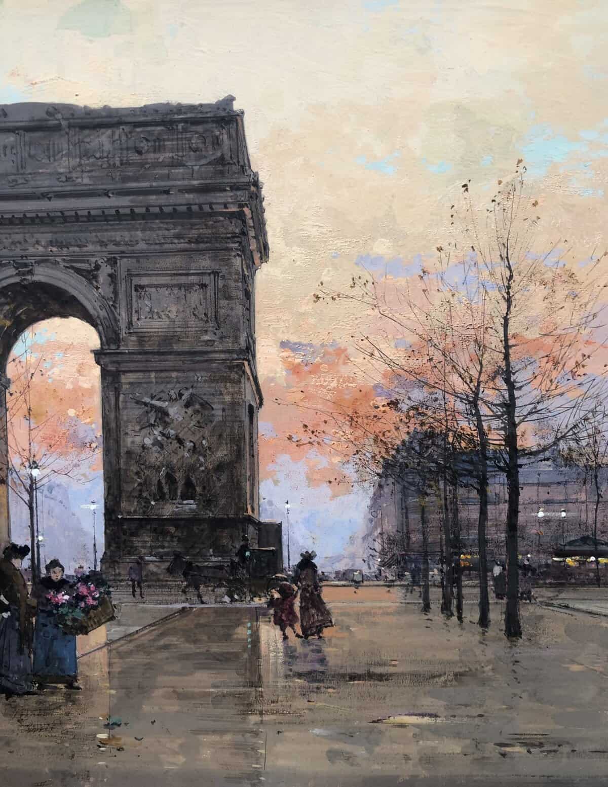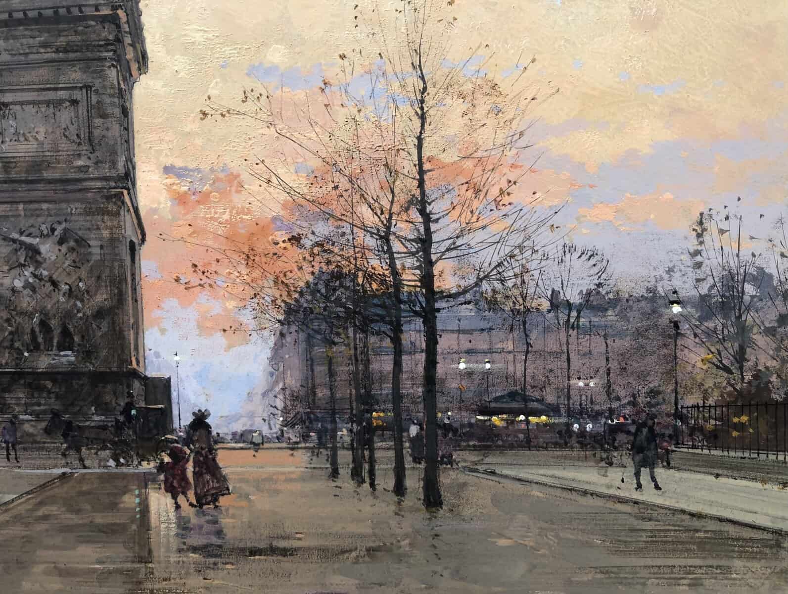 GALIEN LALOUE Peinture Française 20è Paris Place de l’Etoile animée Certificat d’authenticité