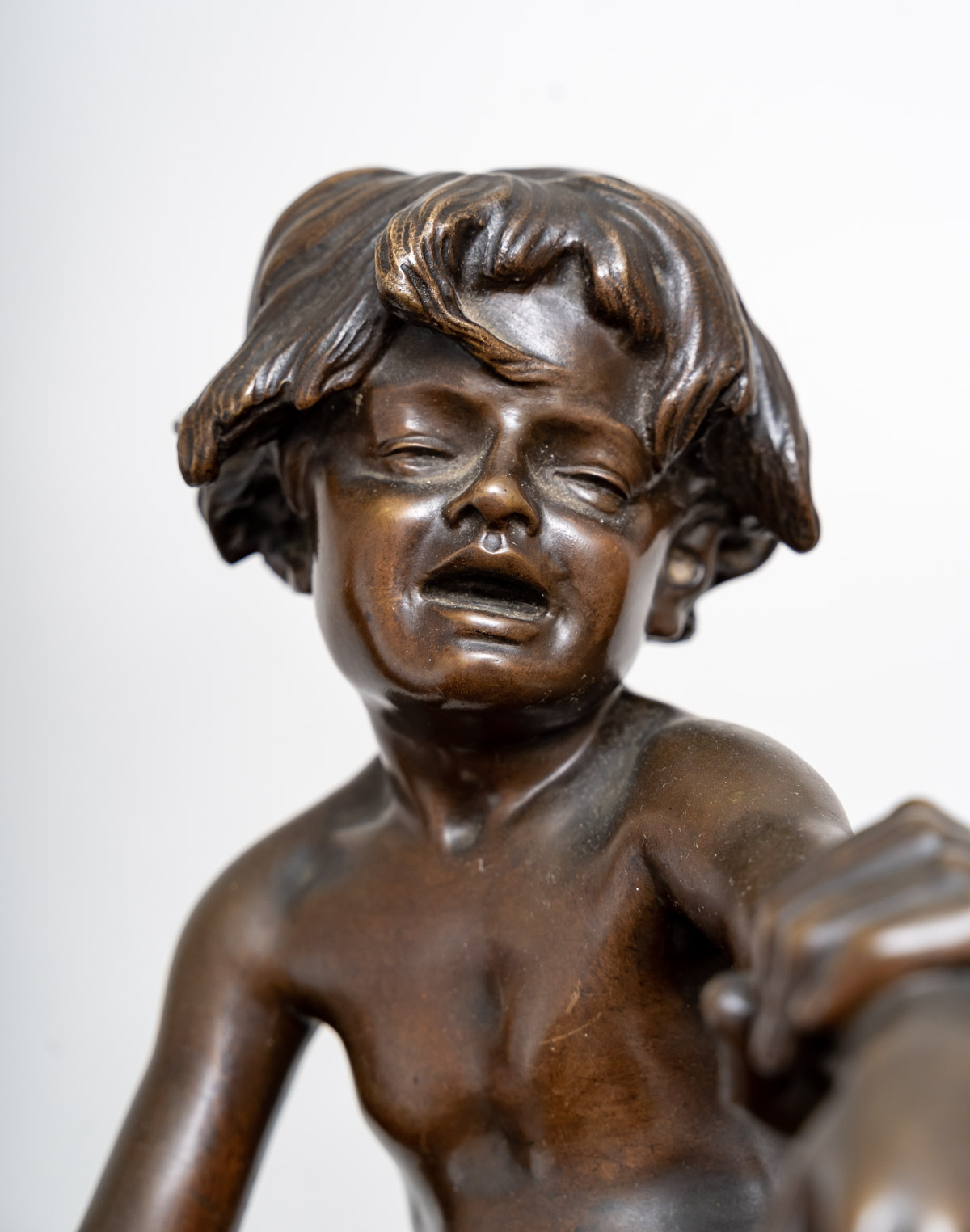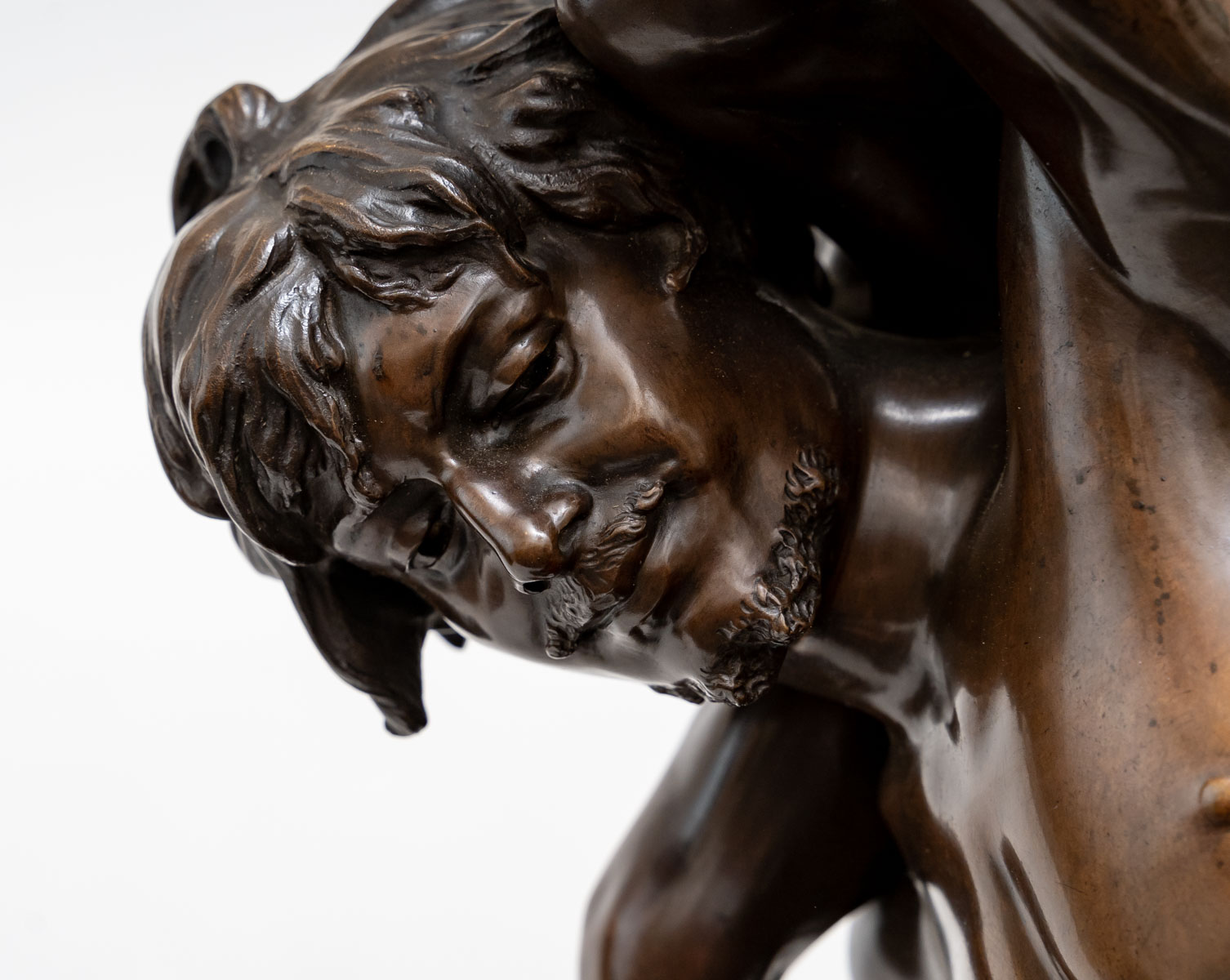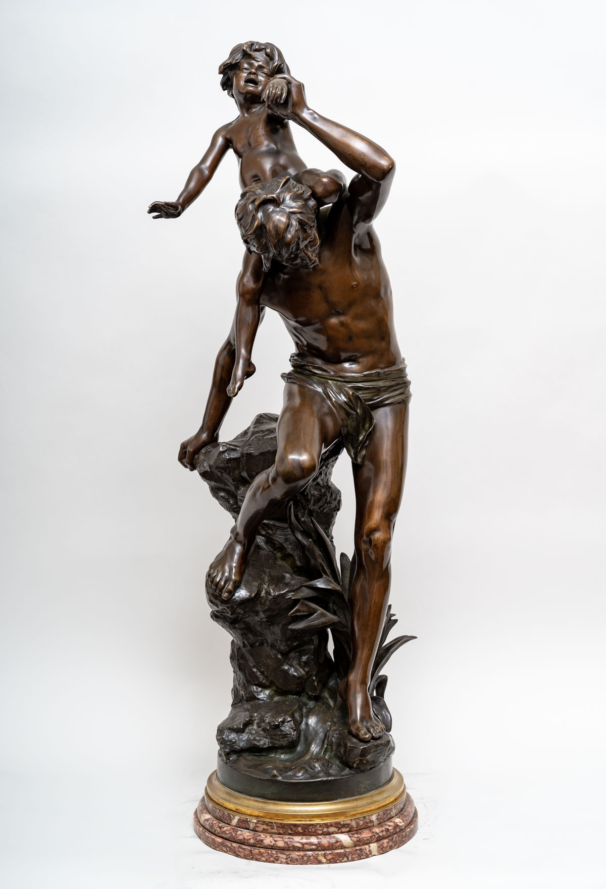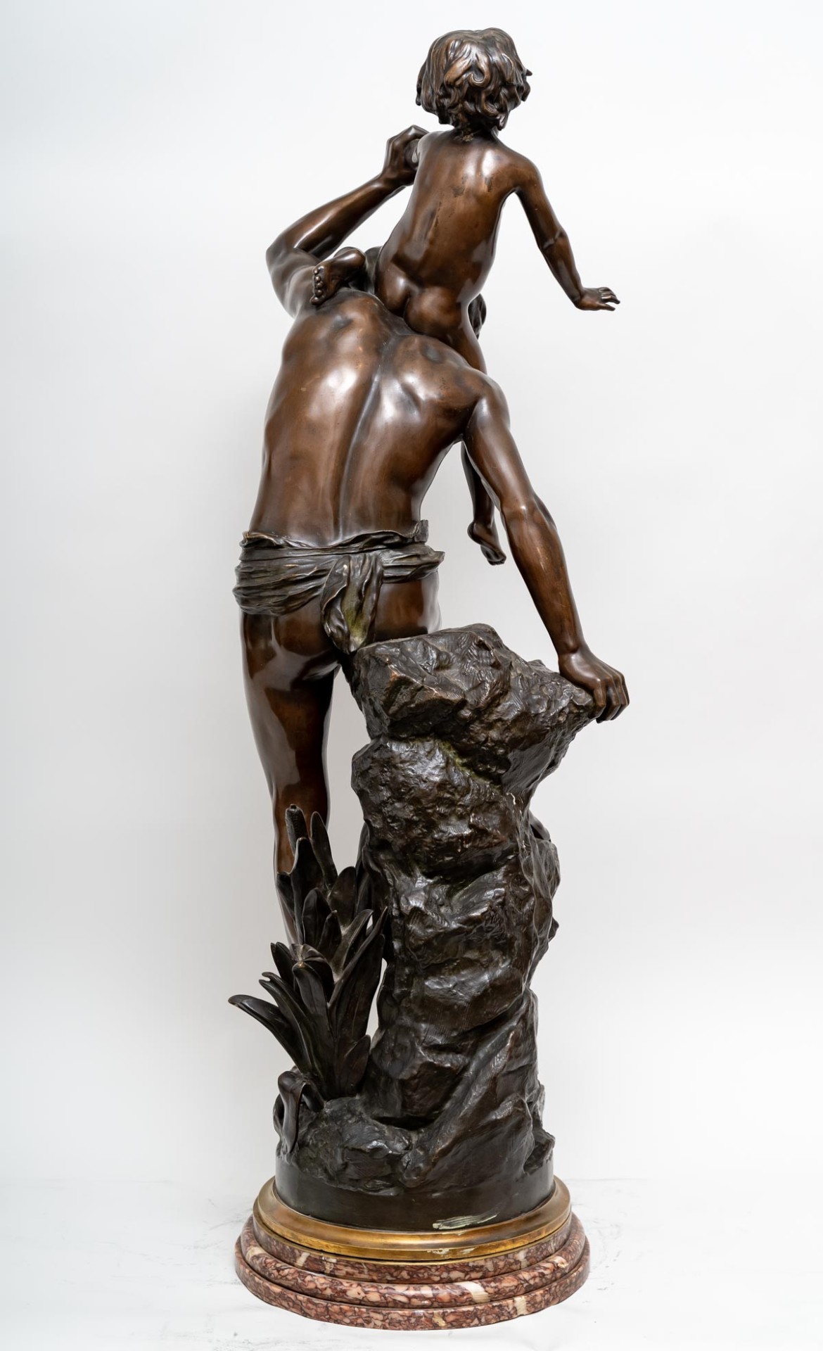 L’œuvre capte avec réalisme et émotion la solidarité intergénérationnelle et la protection paternelle. Une évocation silencieuse de la traversée des épreuves de la vie, où la force de l’un soutient la vulnérabilité de l’autre. Base en marbre Brèche Médicis. Sculpture pivotante sur sa base en marbre, afin qu’elle soit admirée de toutes faces.