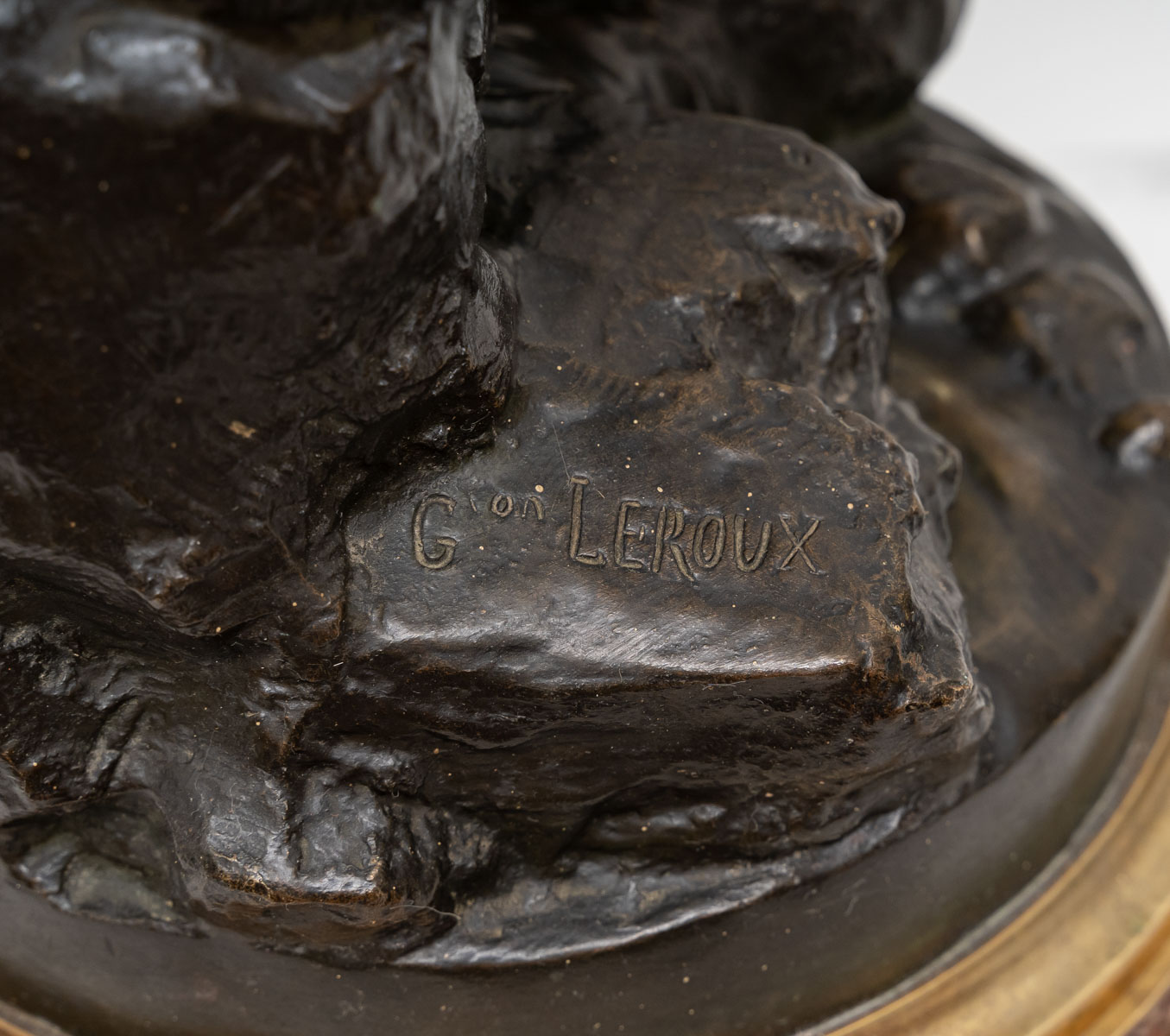 Bronze à patine médaille, signé “Gaston LEROUX” sur le rocher.