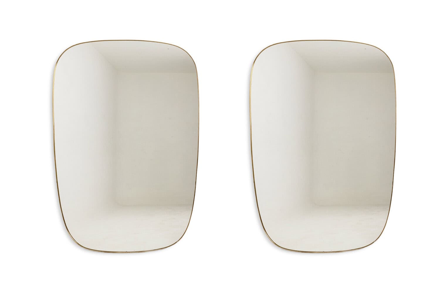 Gio Ponto, dans le style de. Paire de miroirs cerclés de laiton doré. 1980′