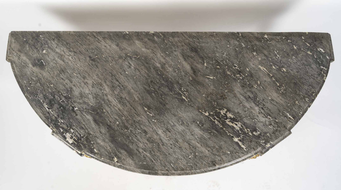Grande console de forme demi-lune en bois sculpté et doré, d’époque Louis XVI (1774-1789).