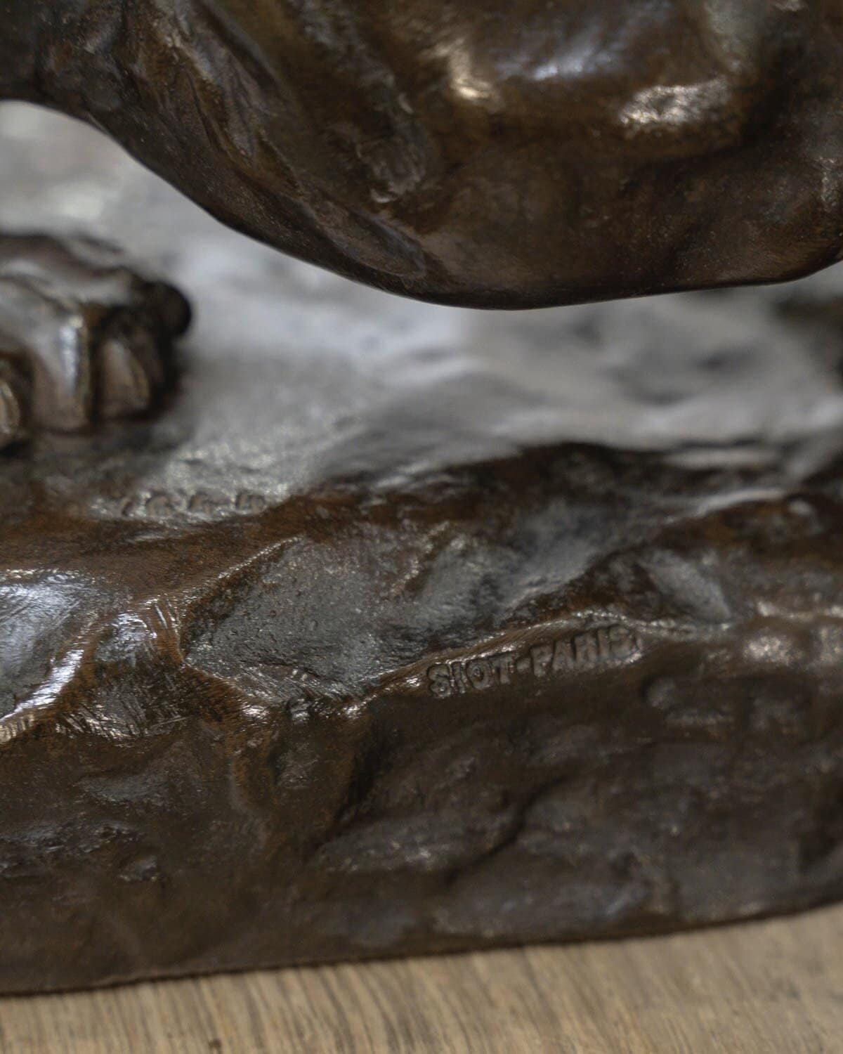 The sculpture, signed « GEORGES GARDET » in relief on the naturalistic base , also bears the foundry mark « SIOT-Paris » and the number Y644 .