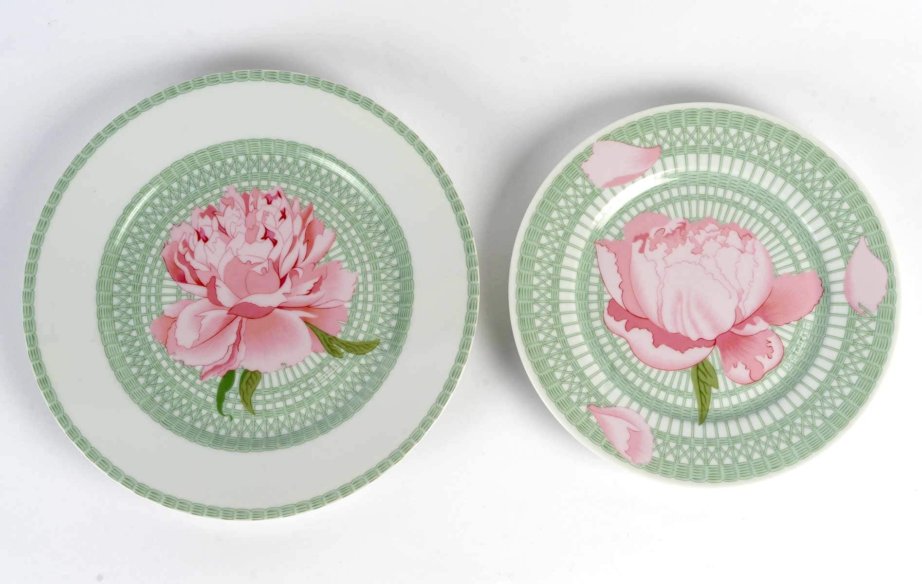 Service de 24 assiettes « Pivoines » en porcelaine créé par Hermès.