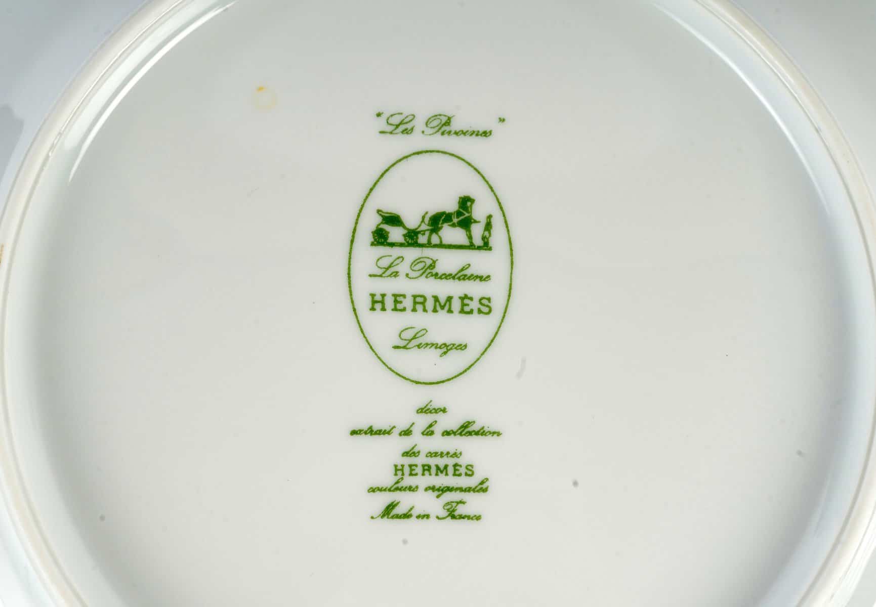 Hermès – 12 Assiettes à Dîner et 12 Assiettes à Dessert Pivoines Porcelaine