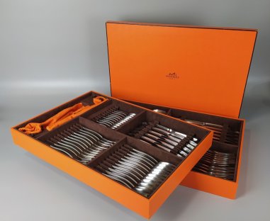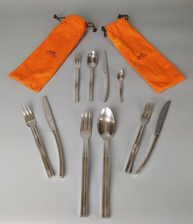 Hermès ménagère modèle « Ondes » HERMÈS PARISMénagère en métal argenté modèle « Ondes », comprenant :