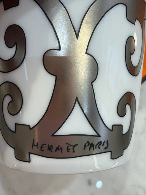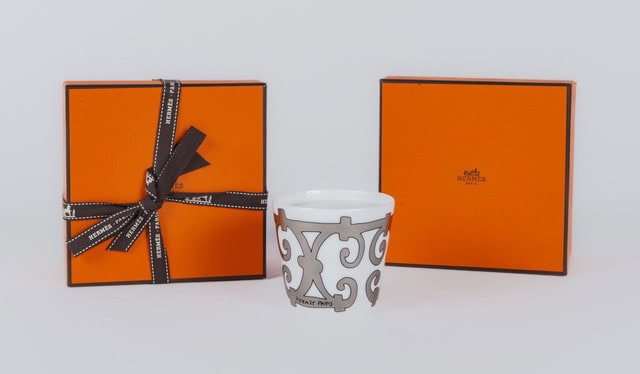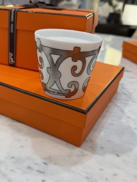 HERMES Service Balcon Guadalquivir émaillé platine Bougie parfumée dans son gobelet en porcelaine émaillée platine