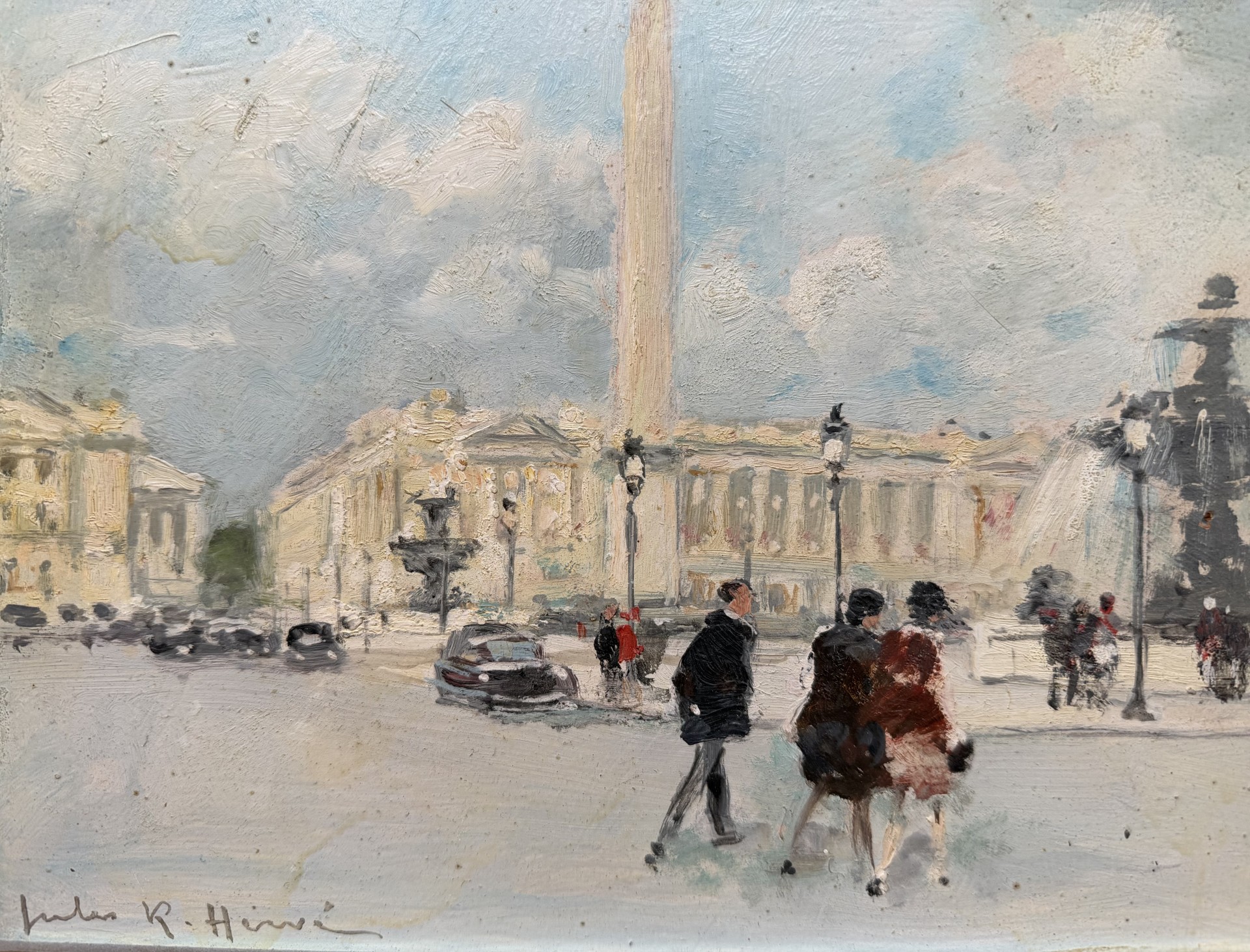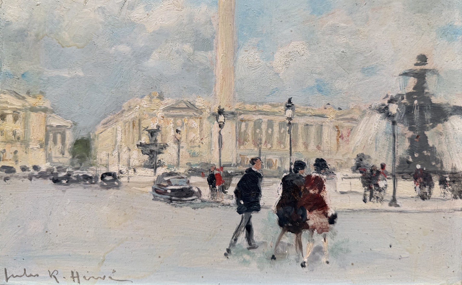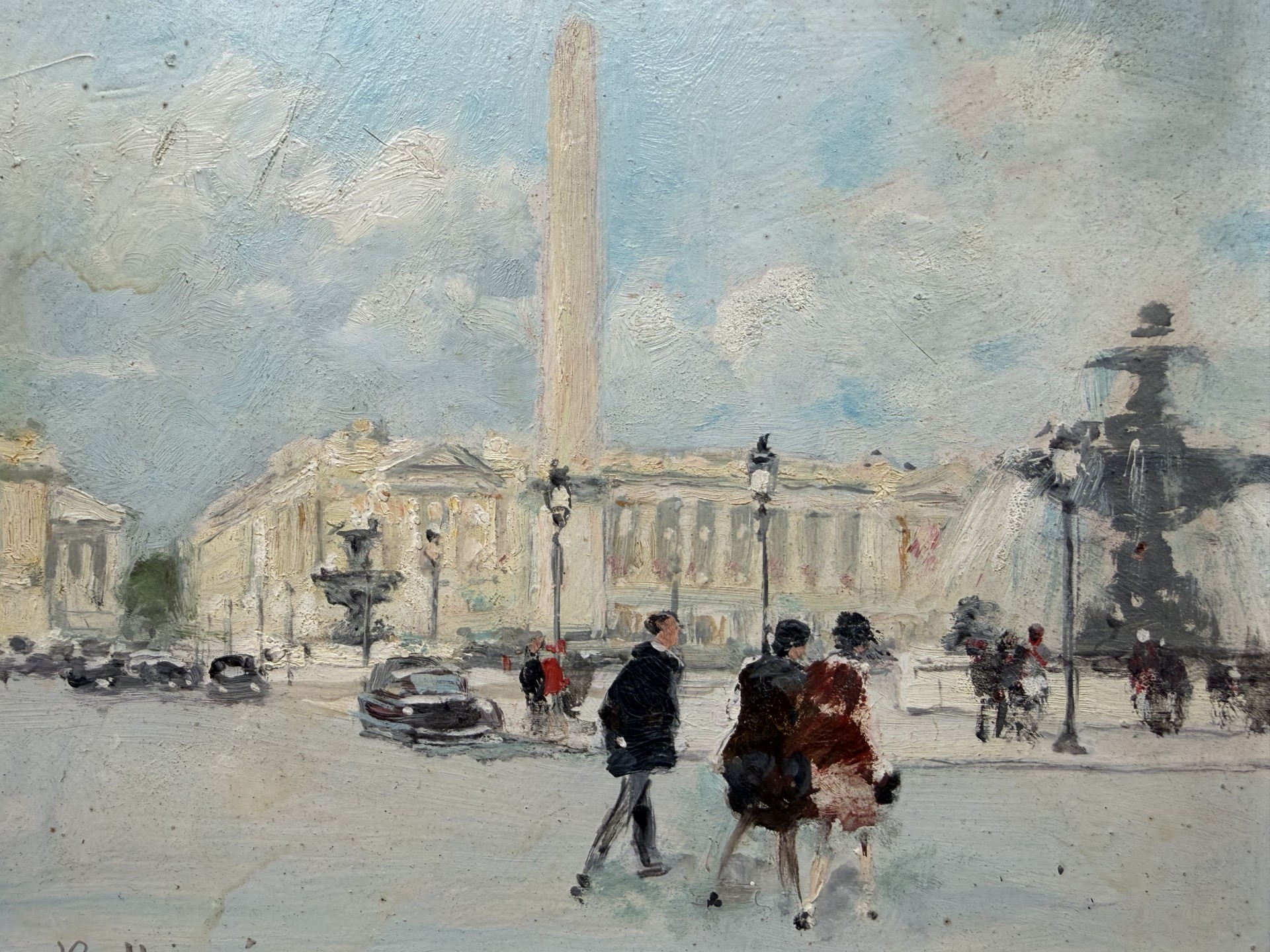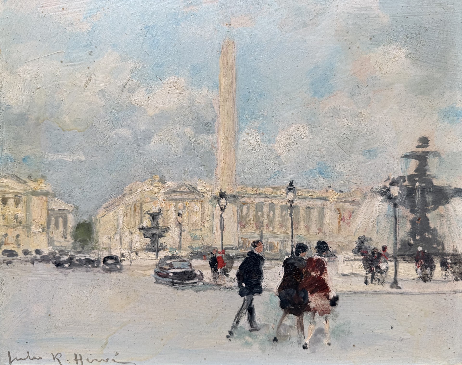 HERVE Jules Peinture Française 20è Paris animation Place de La Concorde Huile sur carton fort signée Certificat D’authenticité