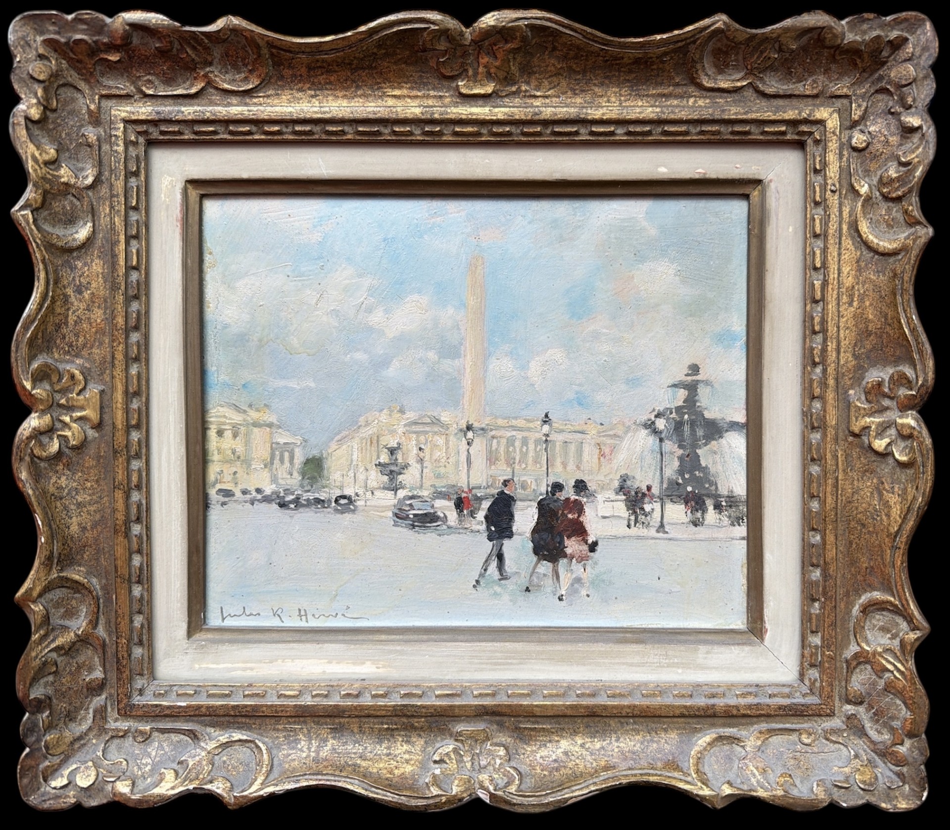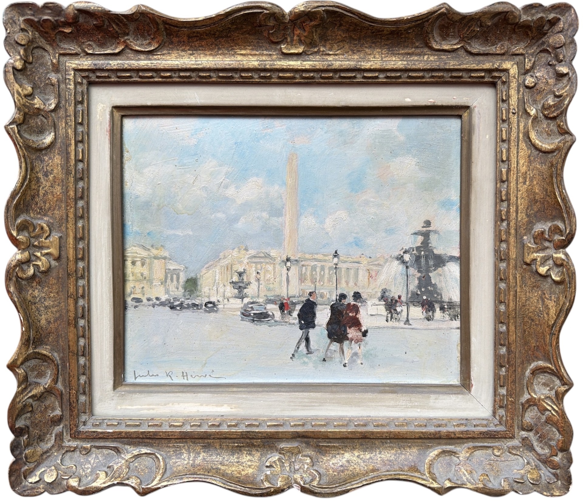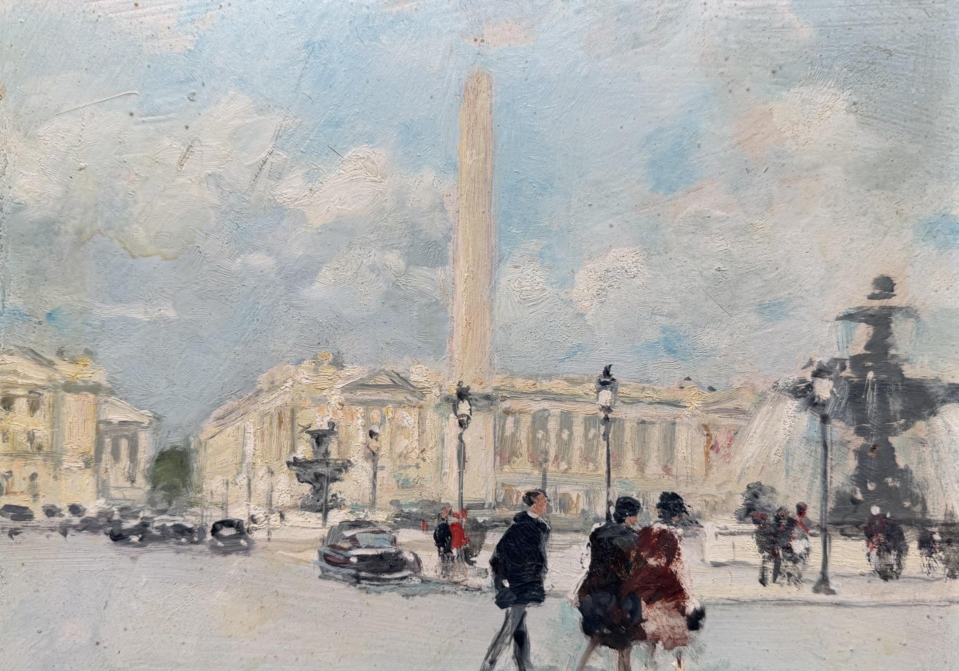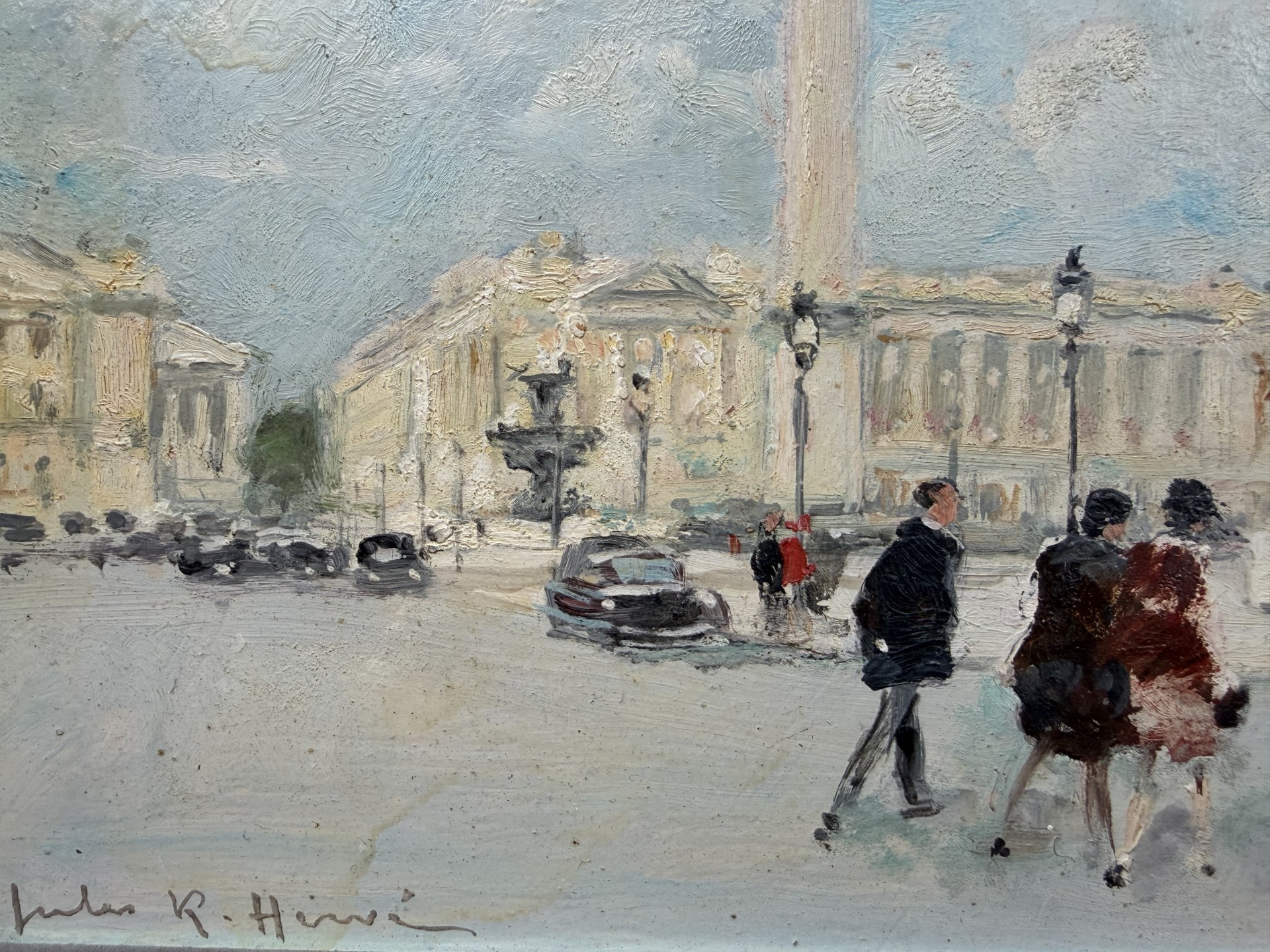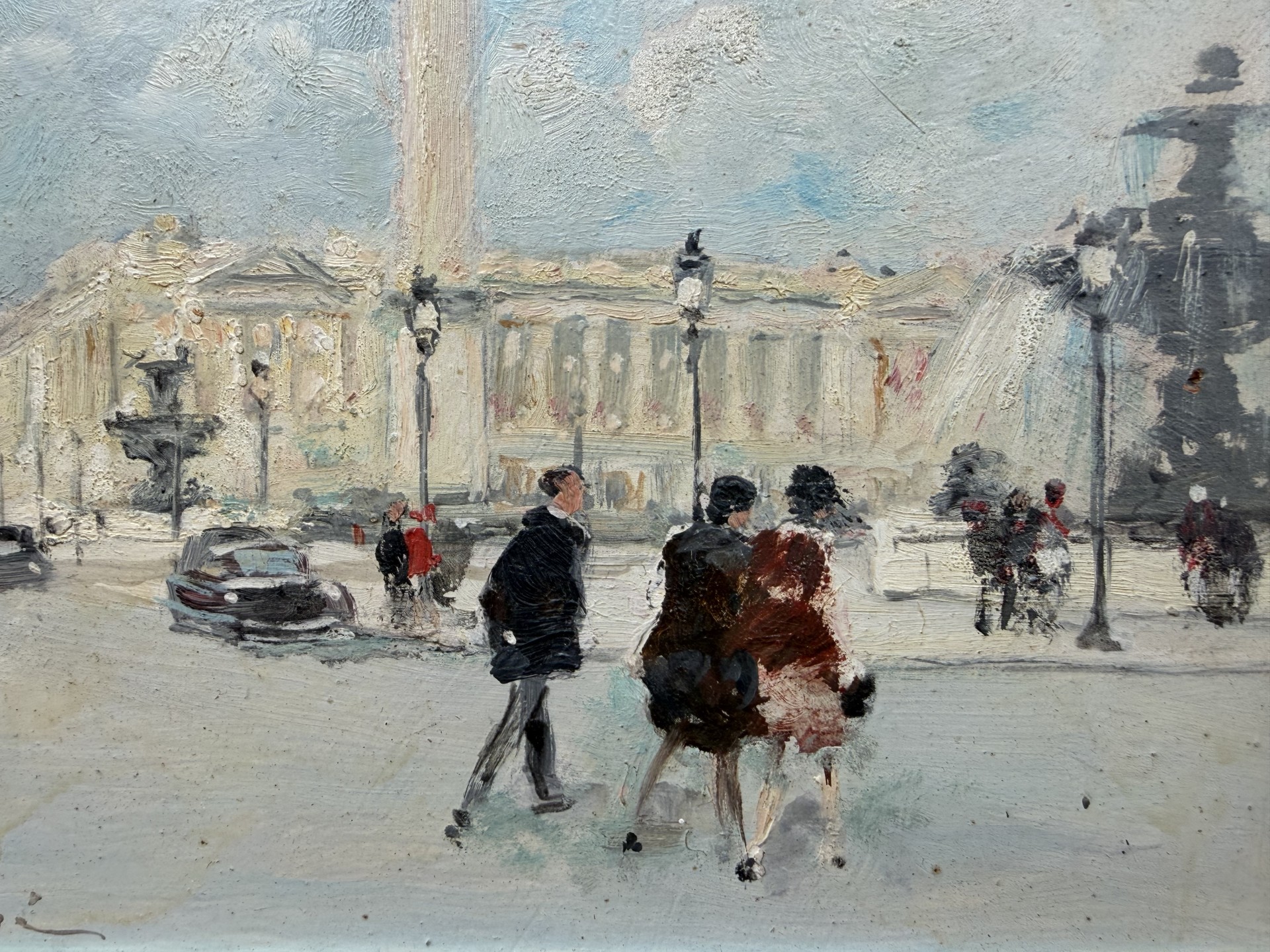 HERVE Jules Peinture Française 20è Paris animation Place de La Concorde Huile sur carton fort signée Certificat D’authenticité
