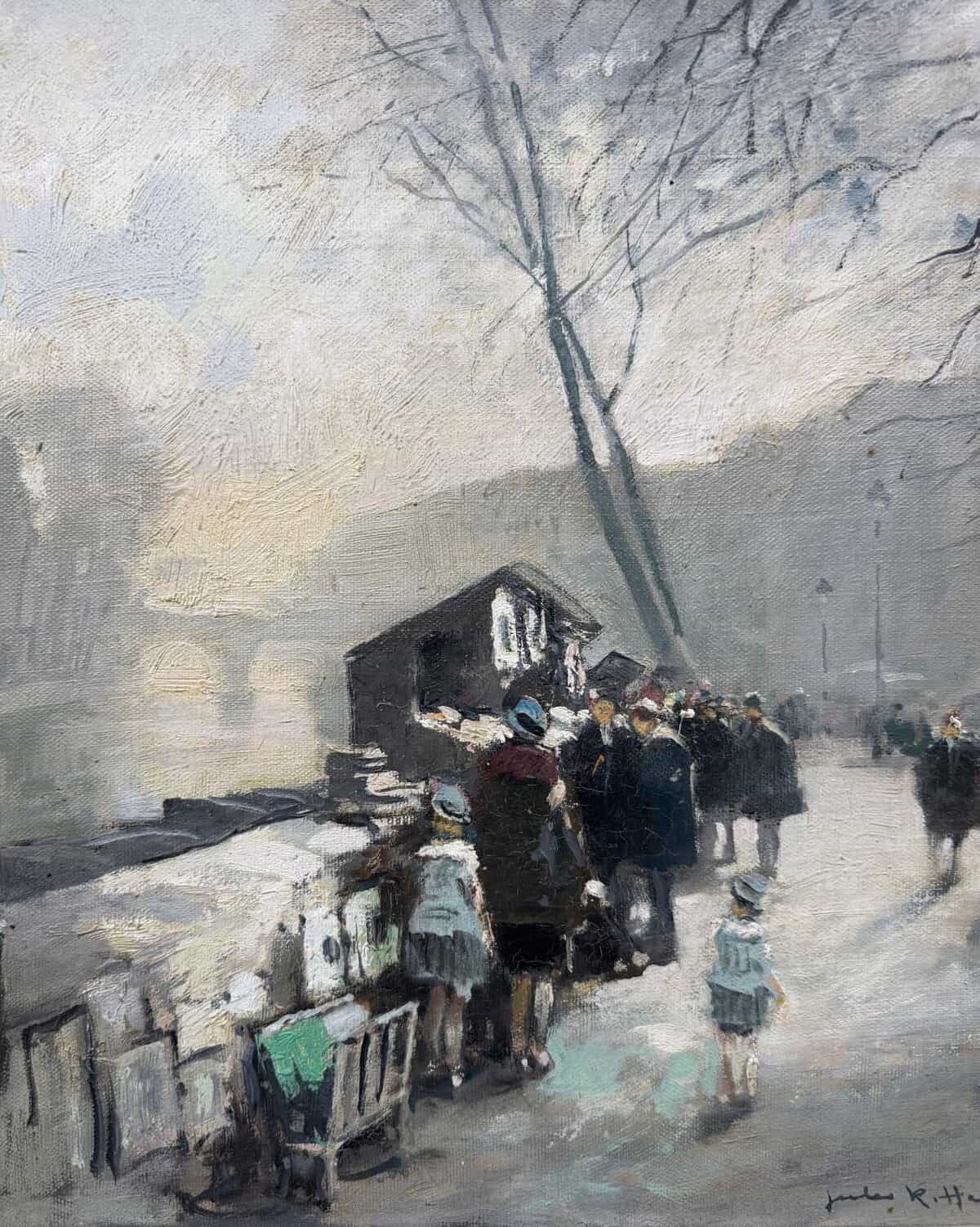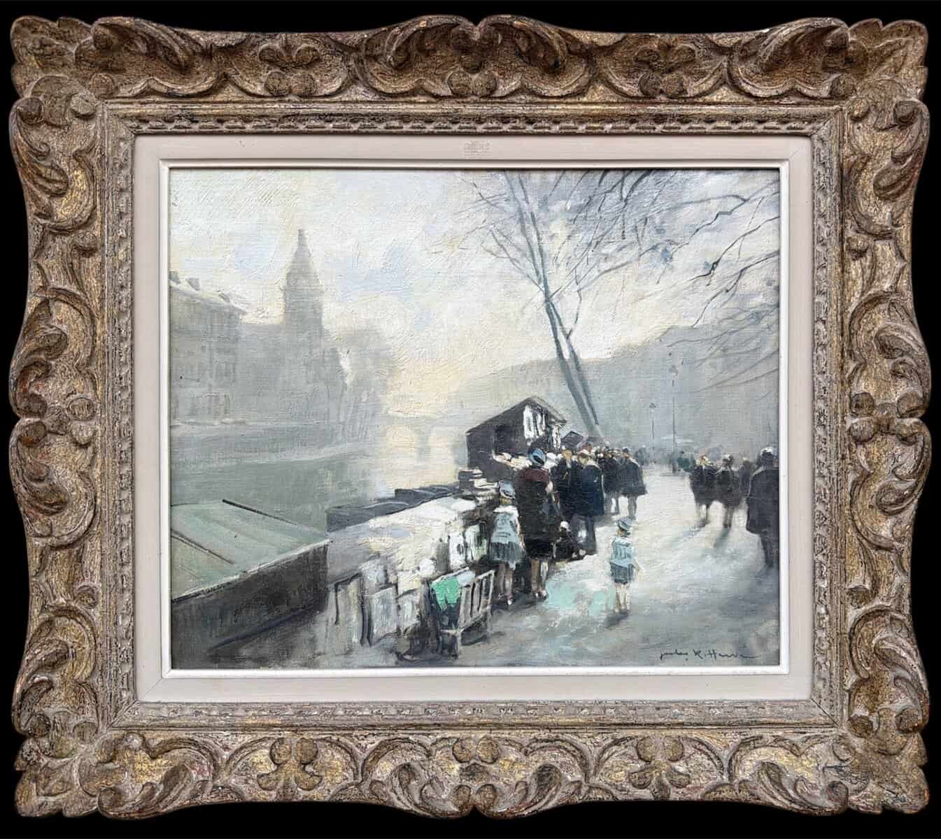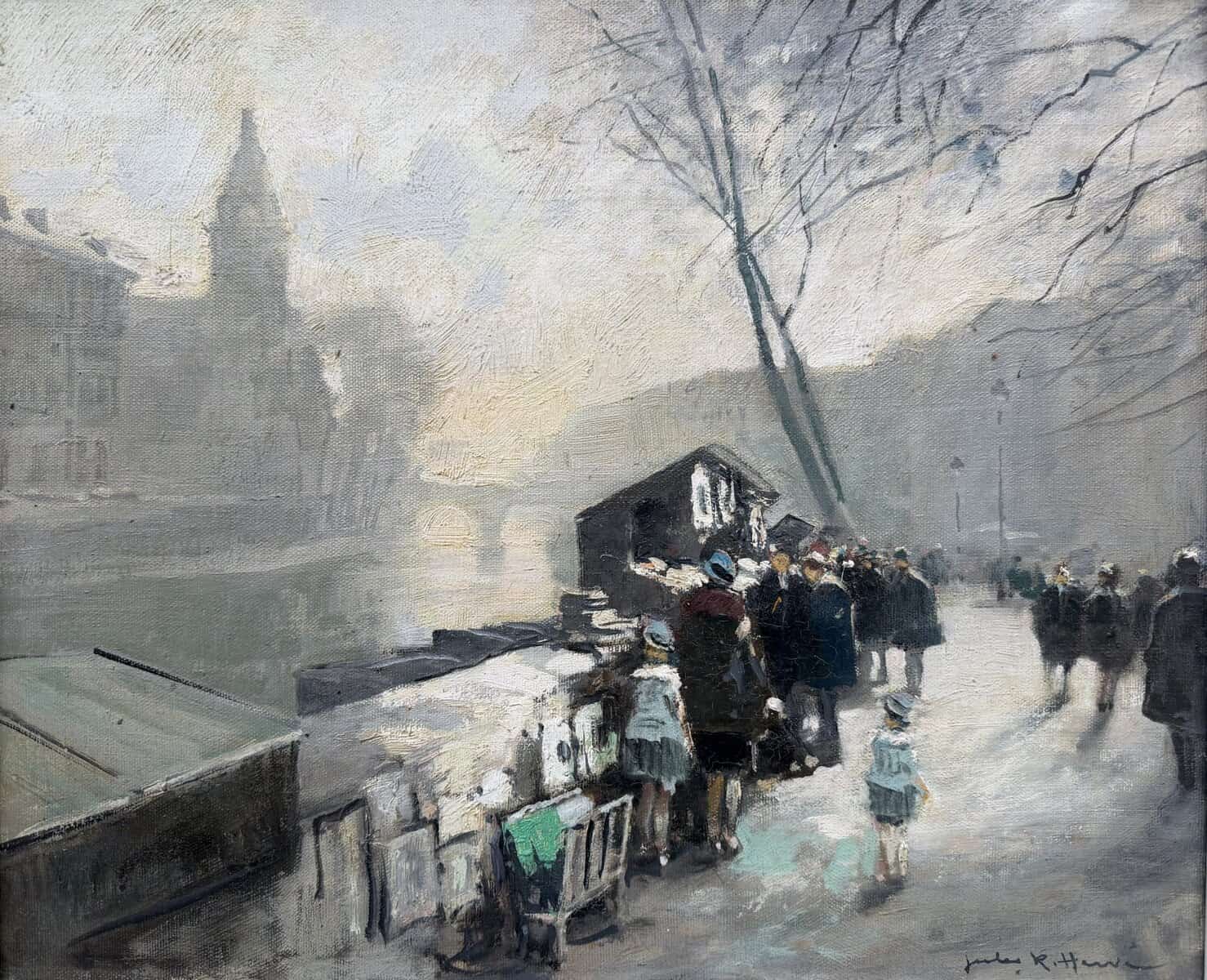 HERVE Jules Peinture Française 20è Paris La Seine et ses bouquinistes Huile sur Toile Signée Certificat d’authenticité
