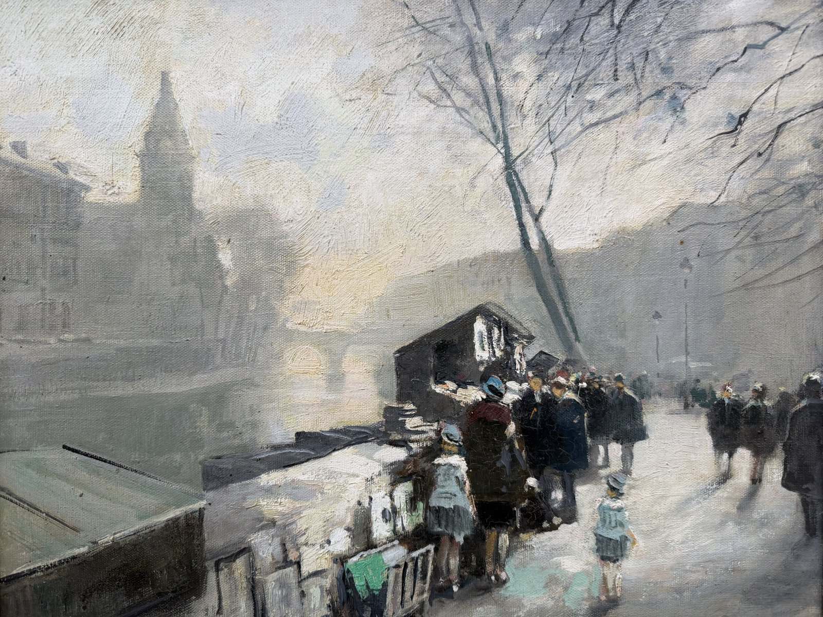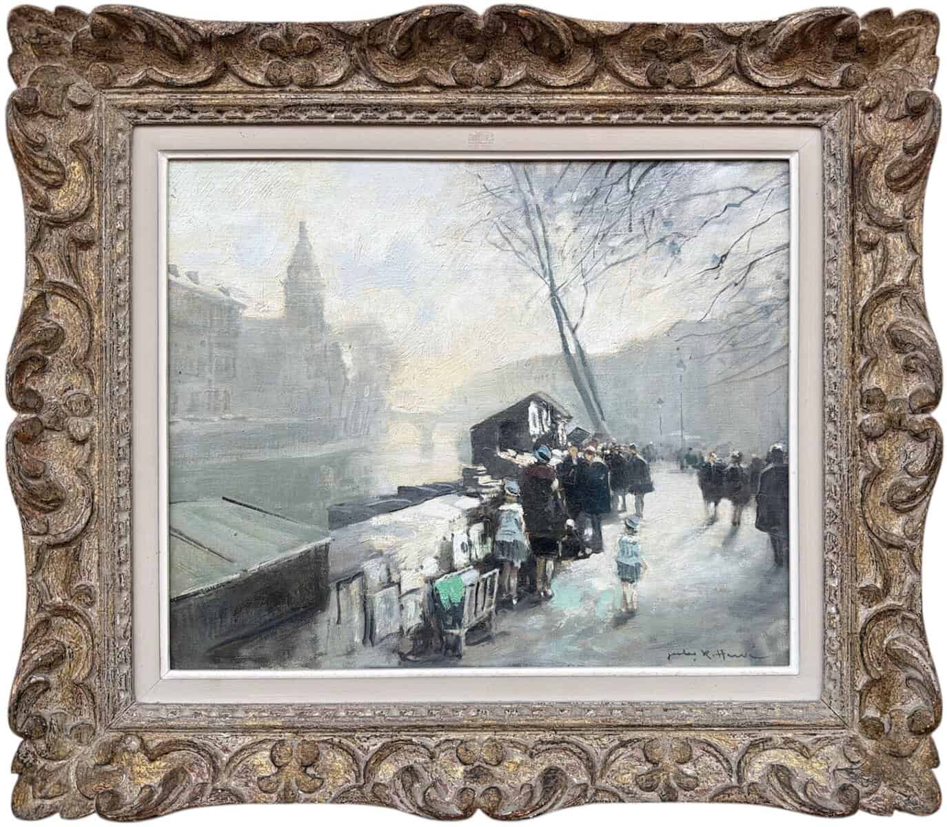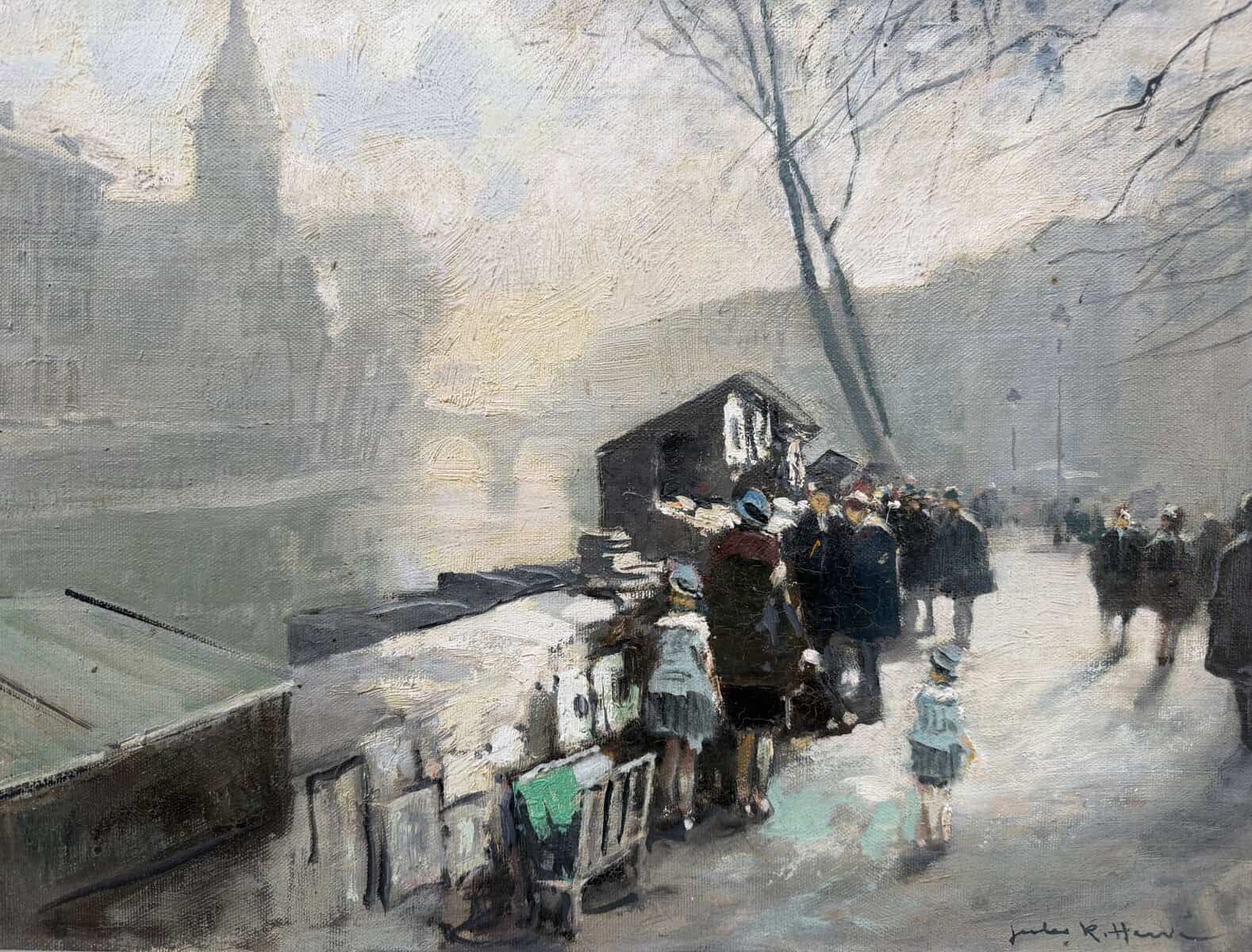 HERVE Jules Peinture Française 20è Paris La Seine et ses bouquinistes Huile sur Toile Signée Certificat d’authenticité