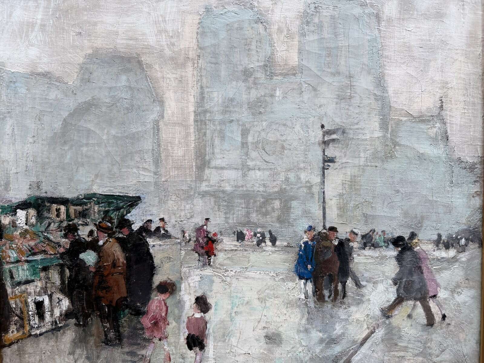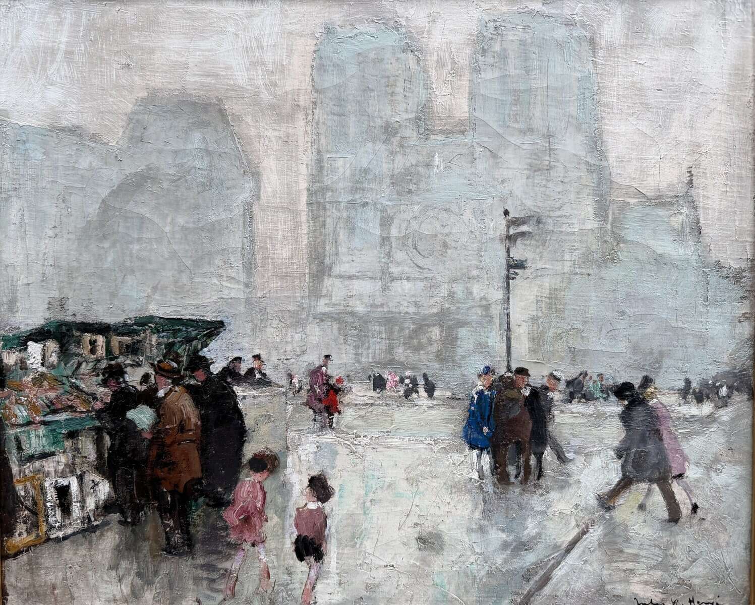 HERVE Jules Peinture impressionniste 20è Paris Les bouquinistes devant Notre Dame Huile sur Toile Signée Certificat