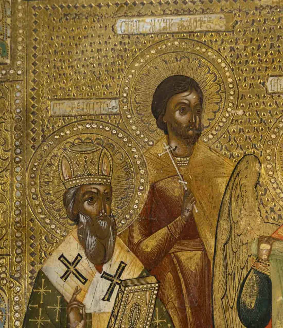Icone russe représentant l’Archange Michel entourré de saints, d’époque XIXème siècle, Russie.