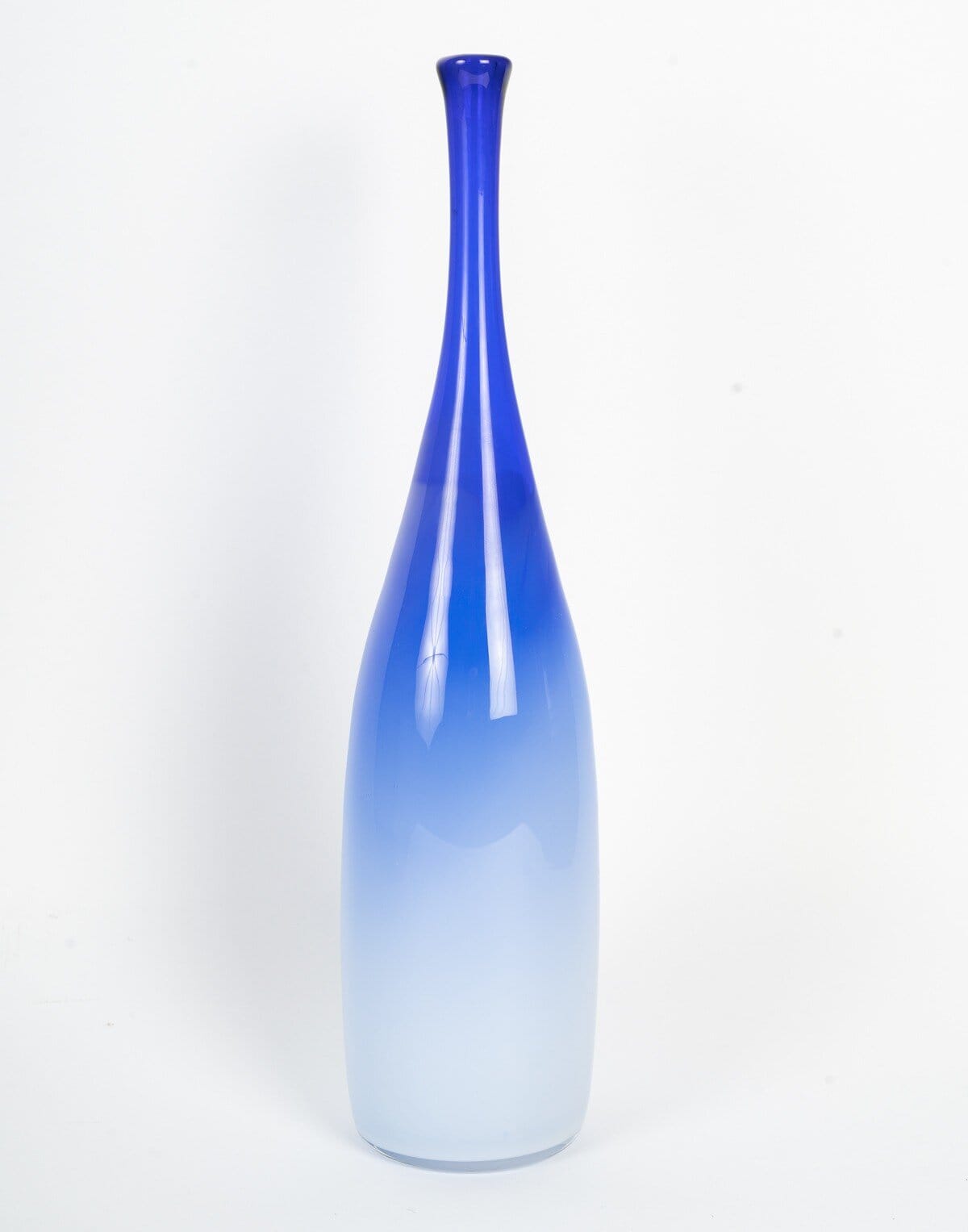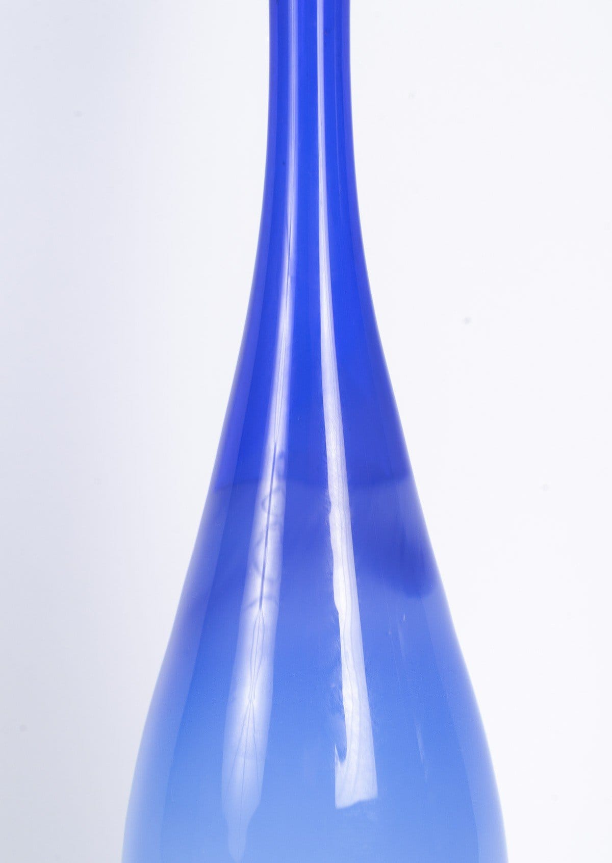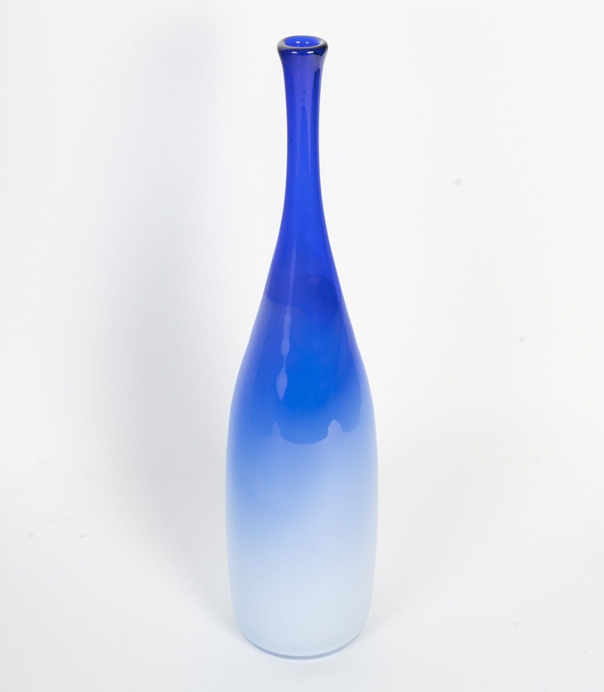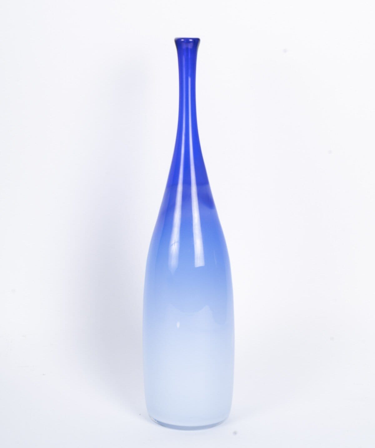 Vase bouteille en verre soufflé à la bouche nuancé bleu et blanc