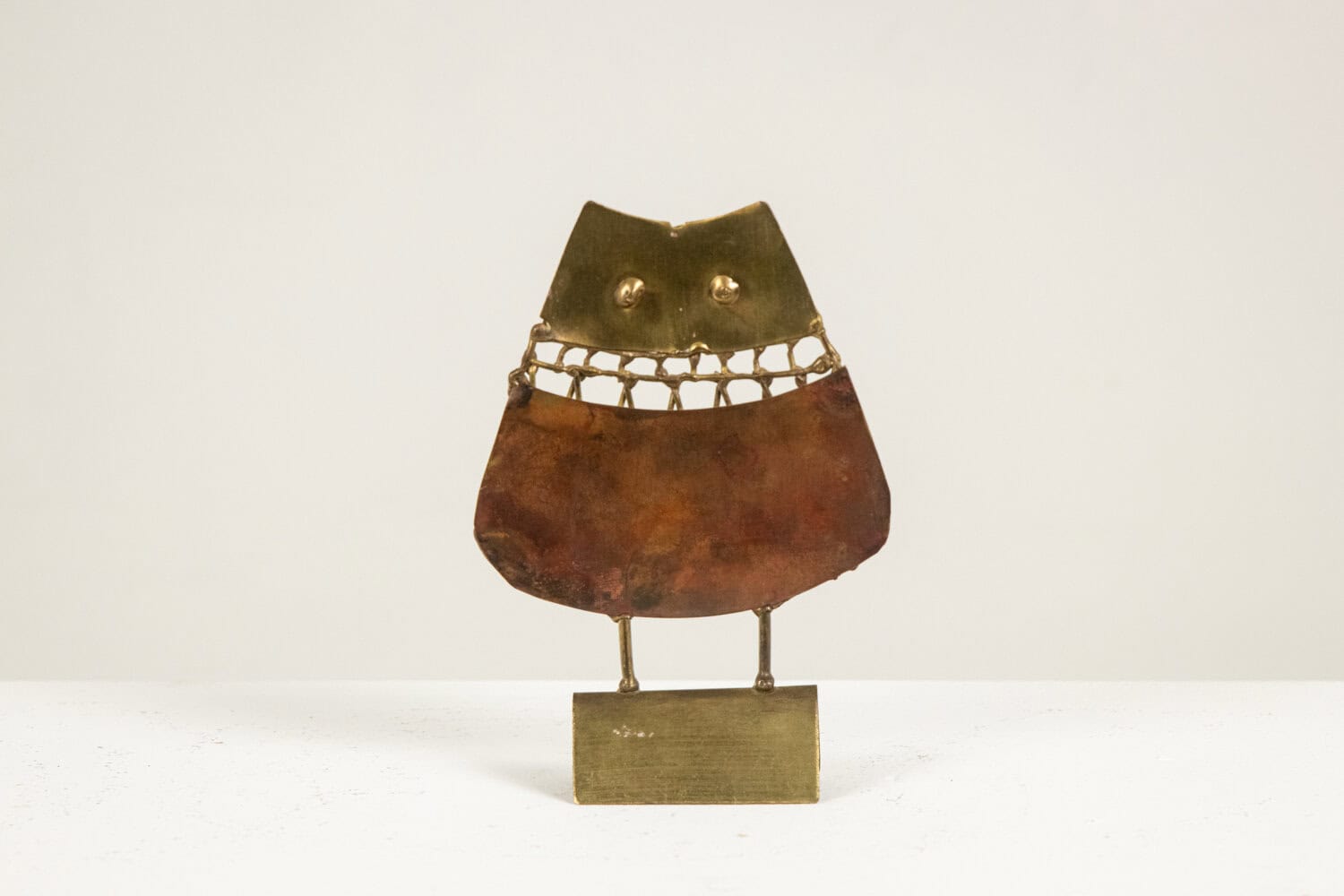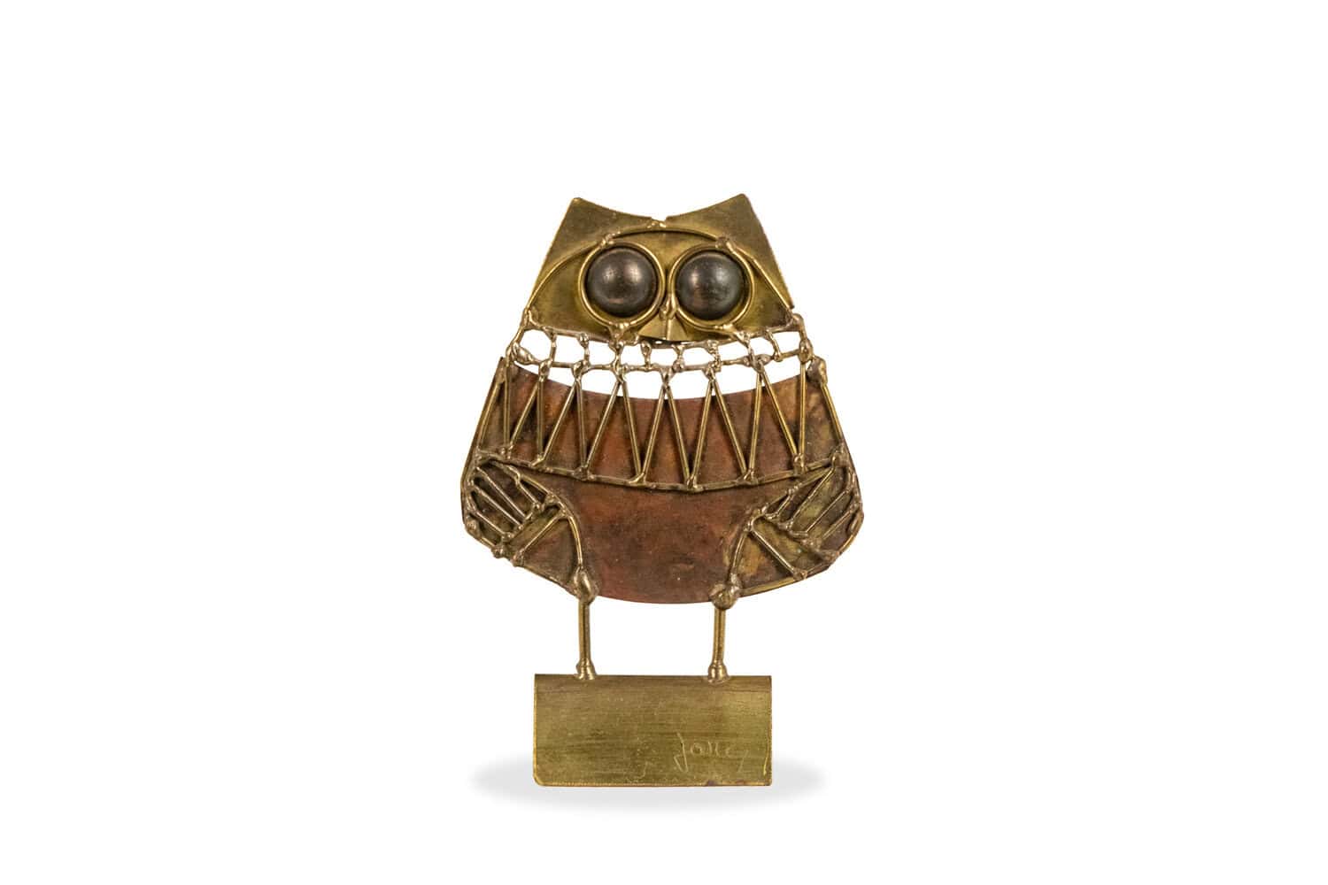 Sculpture brutaliste en laiton représentant une petite chouette.