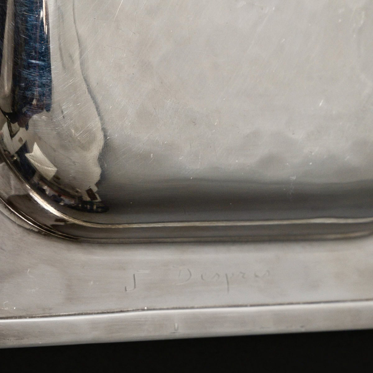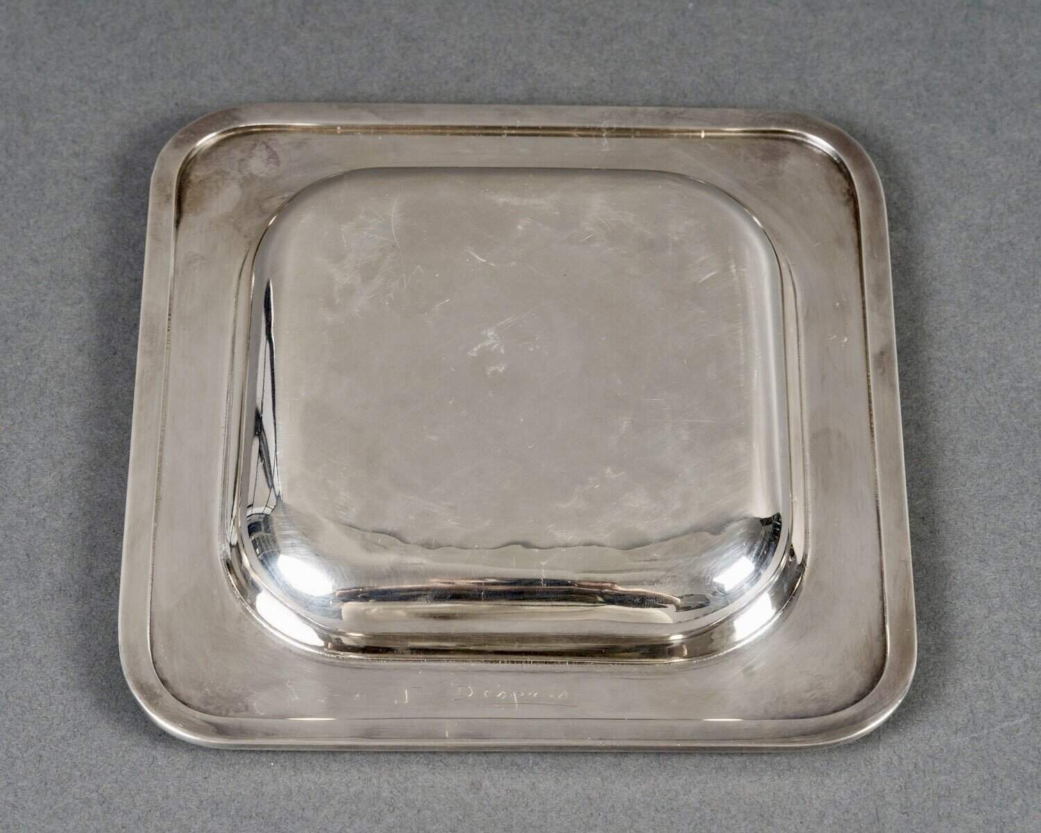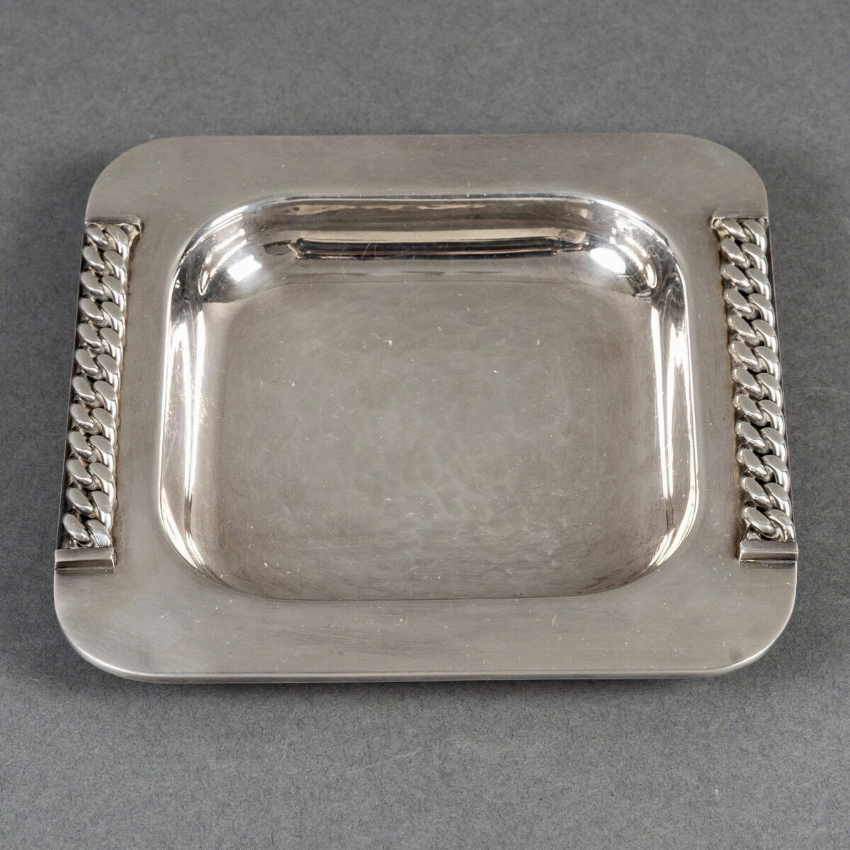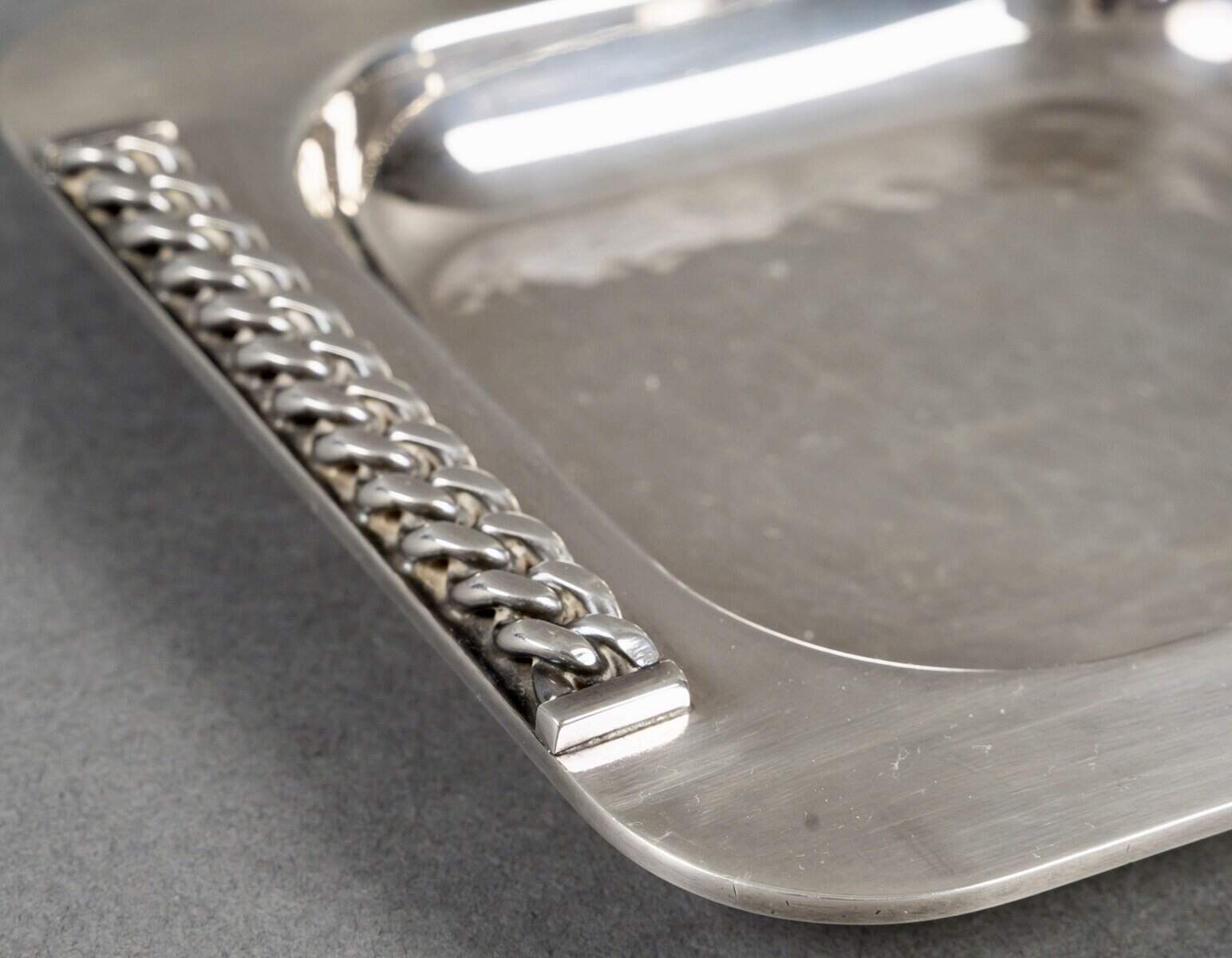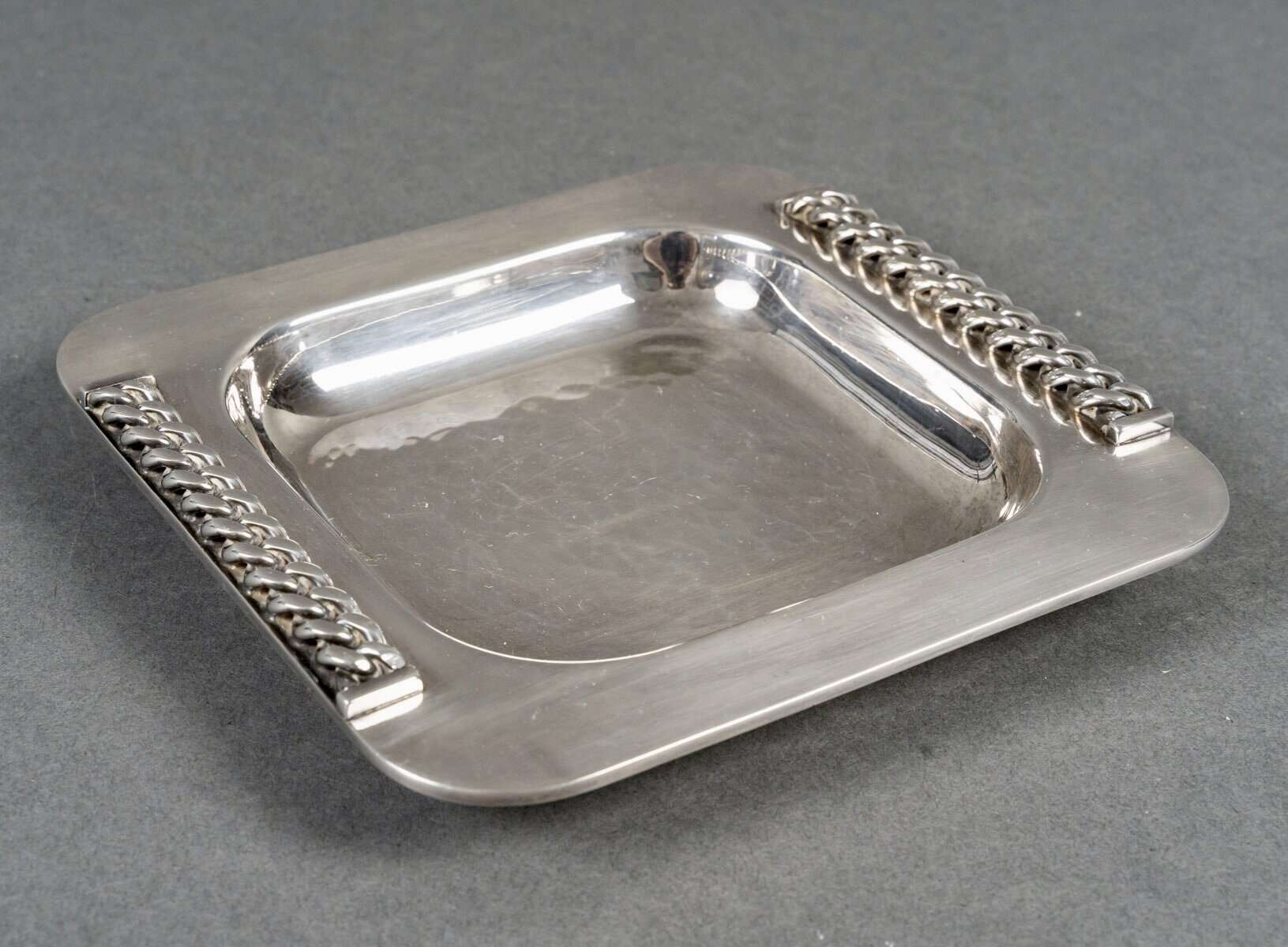 Art Déco Cendrier Vide Poches « Gourmette » en métal argenté martelé de Jean Desprès.