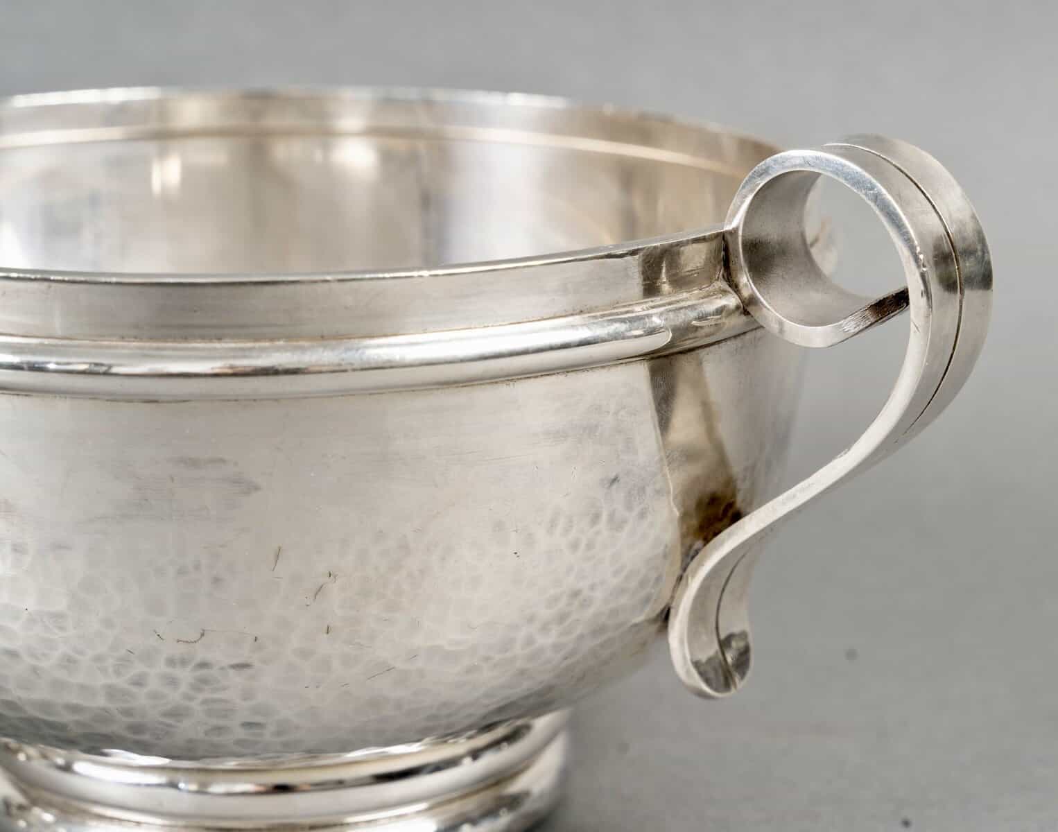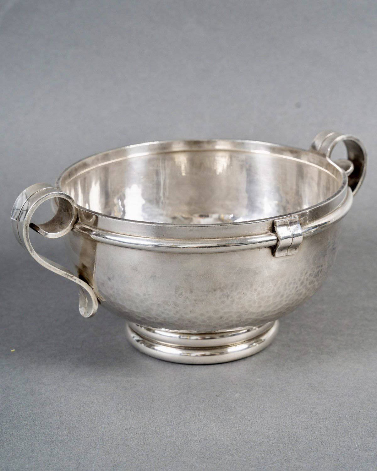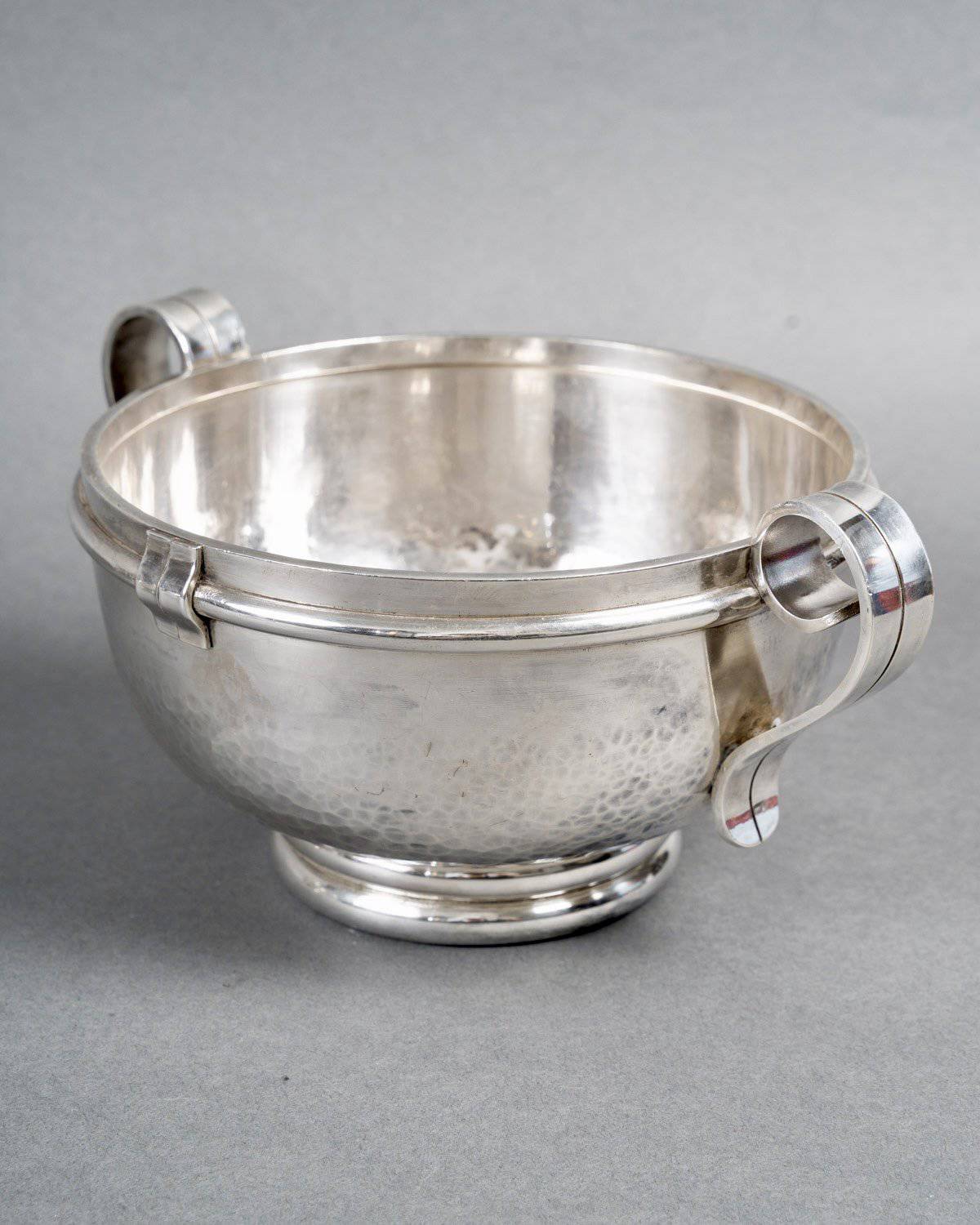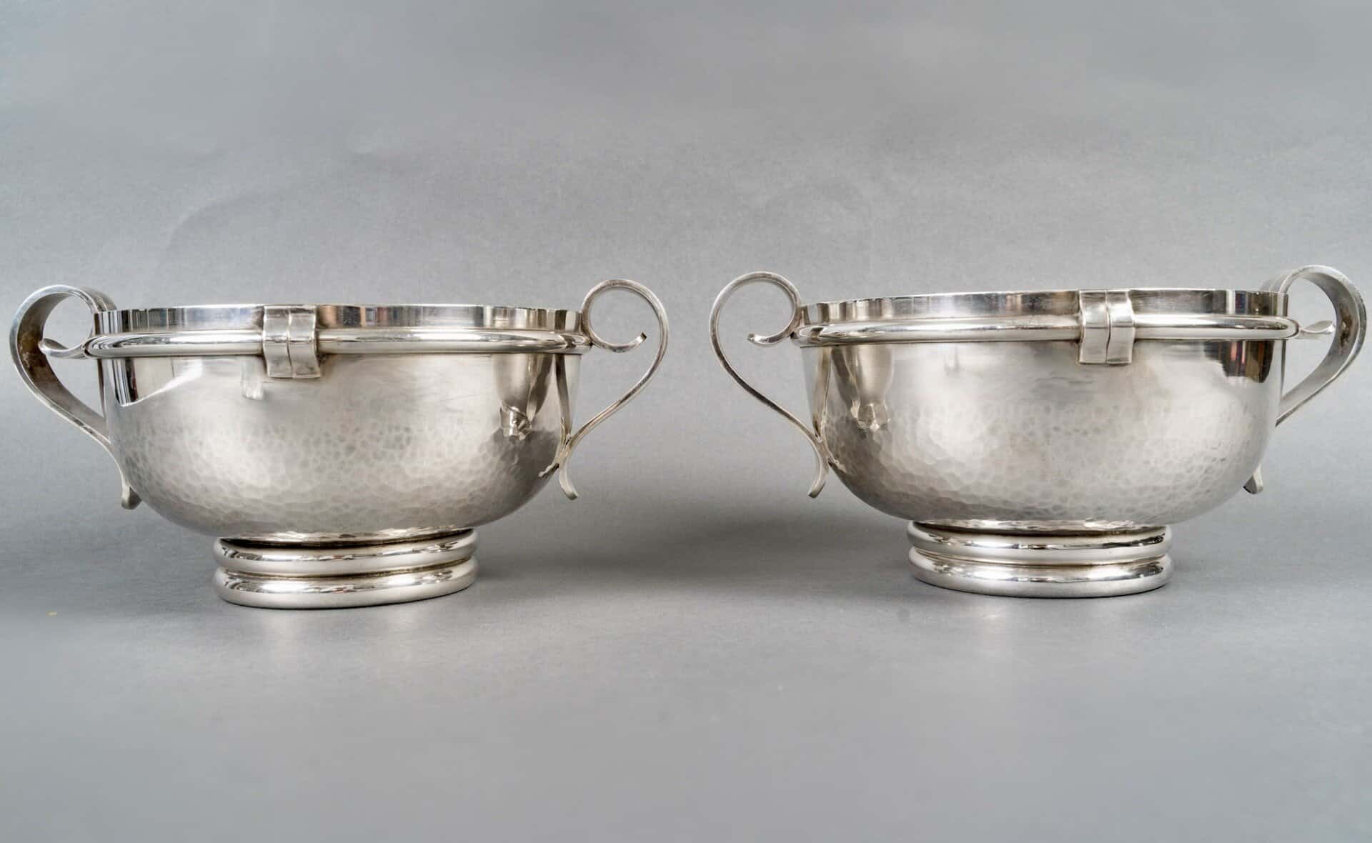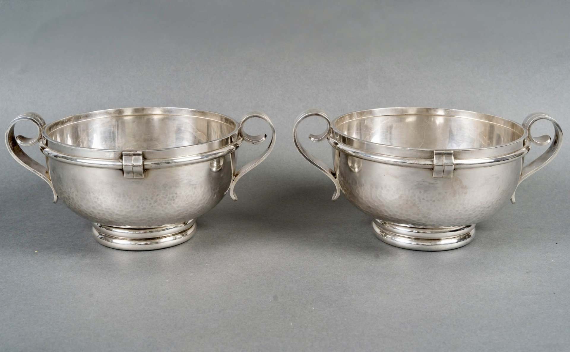Paire de Coupes ArtDéco Moderniste en métal argenté martelé de Jean Desprès.