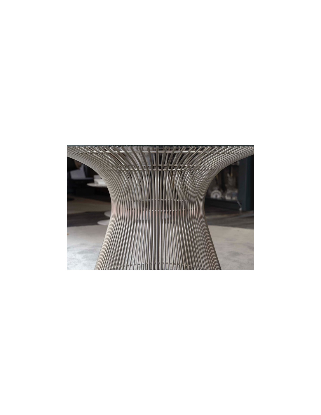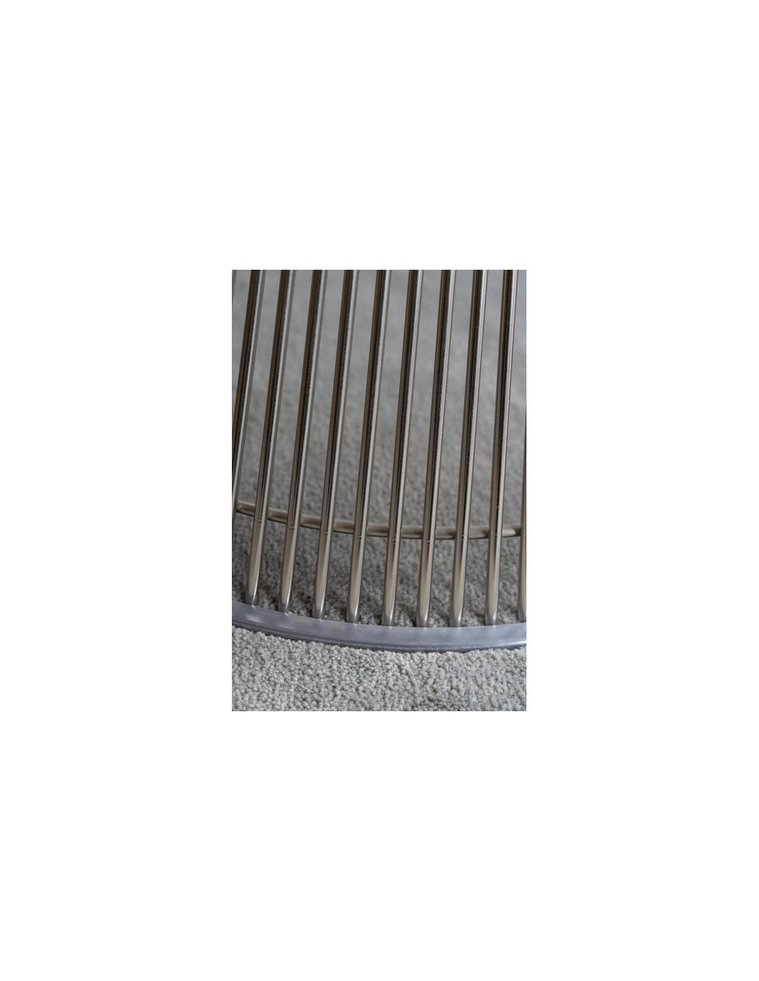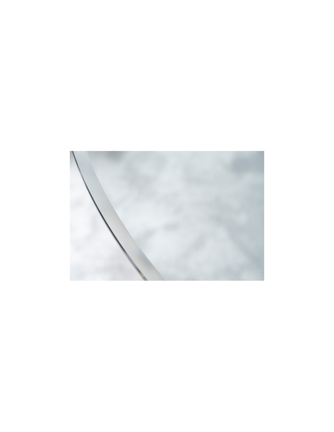 La base du piétement est un anneau de protection en profilé plastique, transparent. Le plateau est en verre trempé