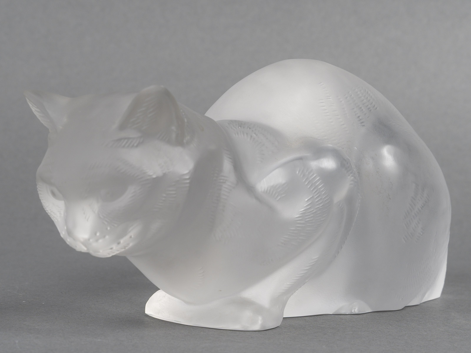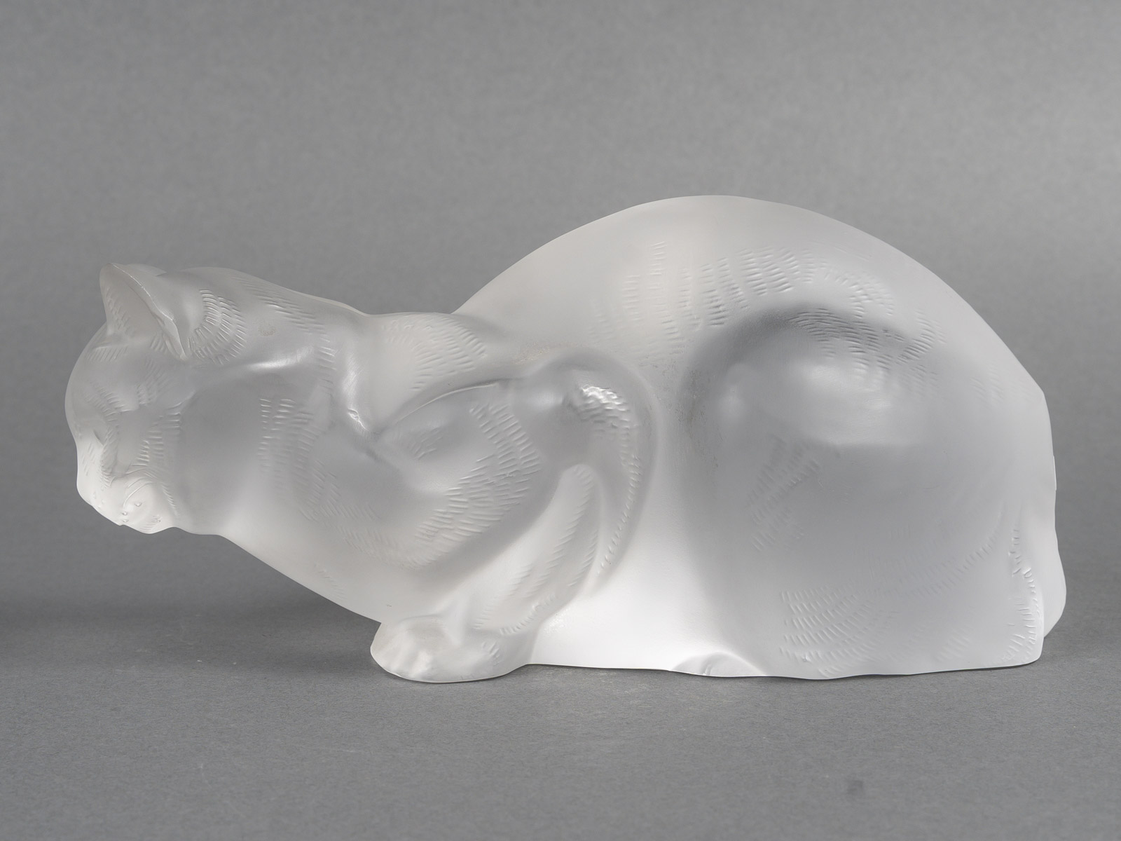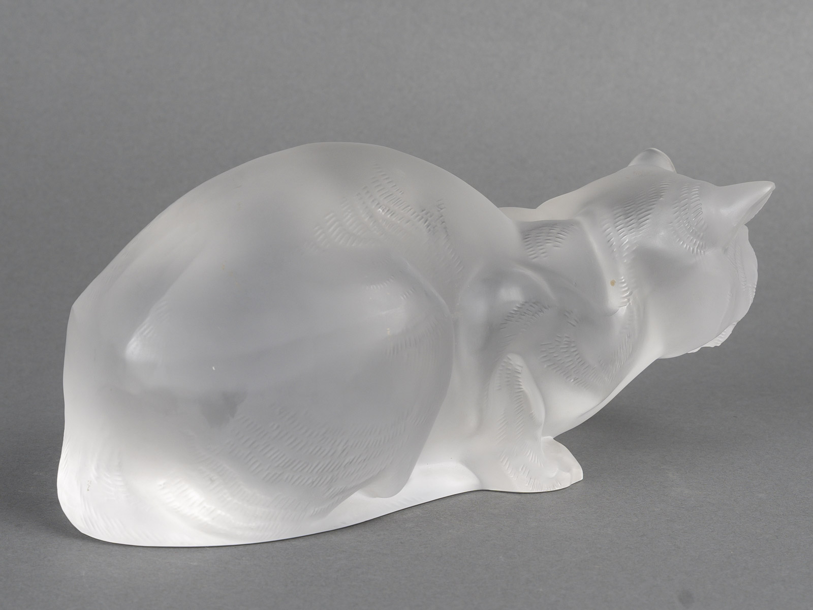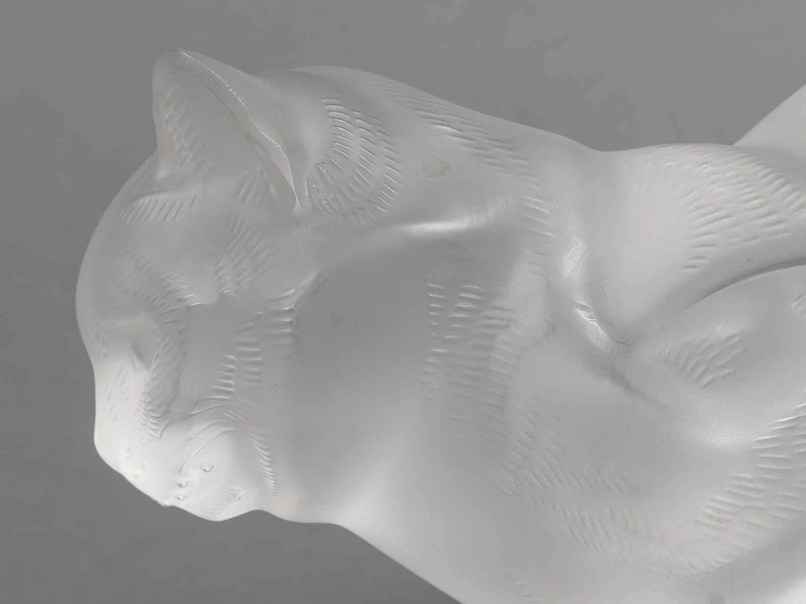 LALIQUE – Chat couché en cristal XXe Signé Lalique France