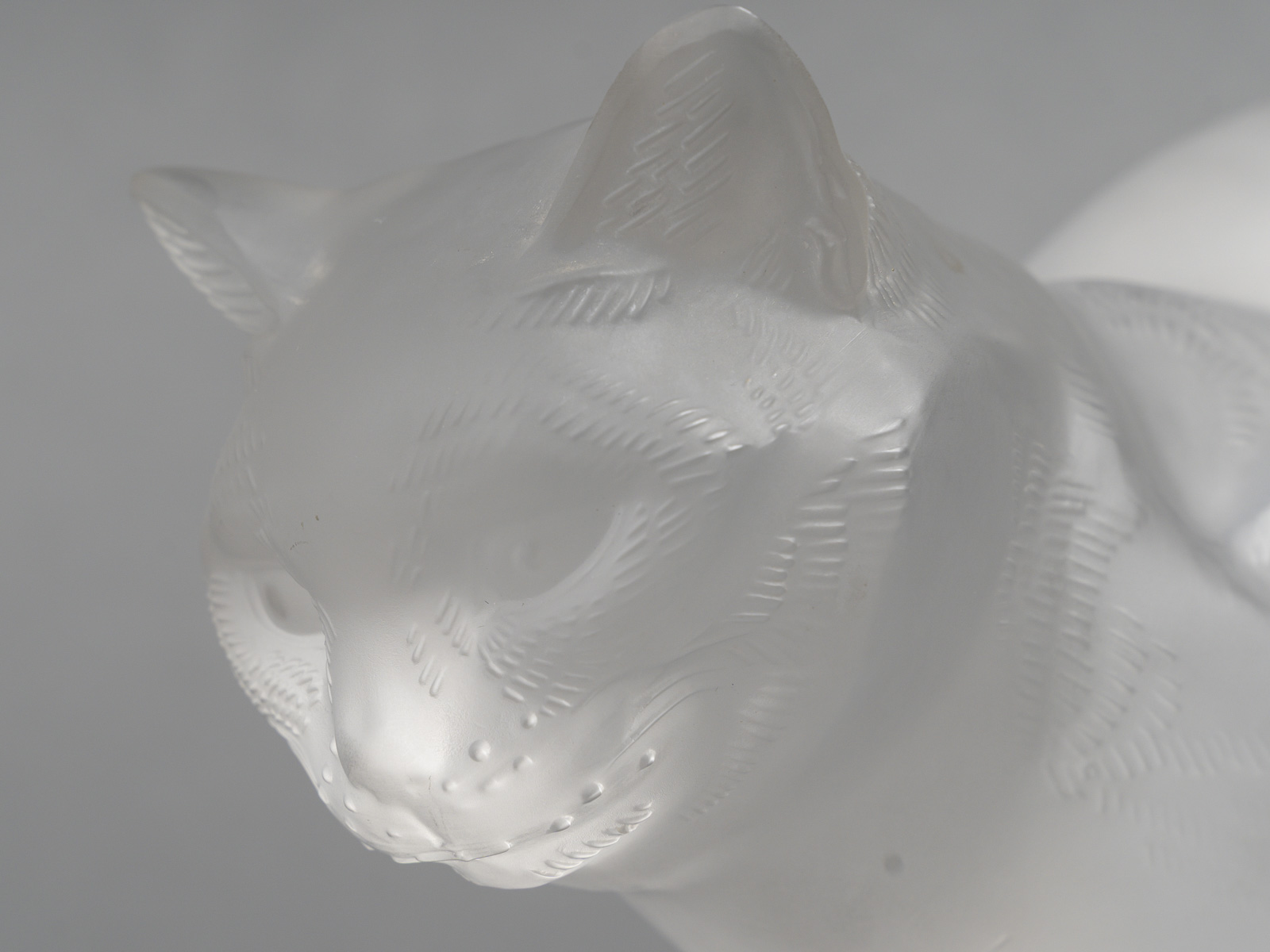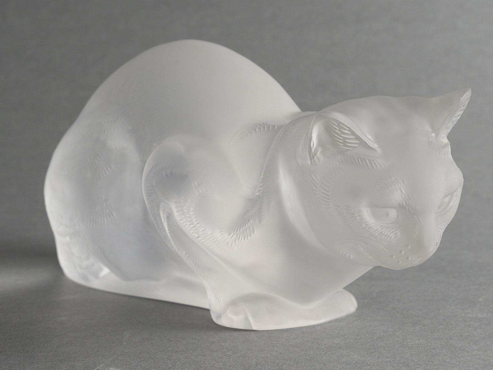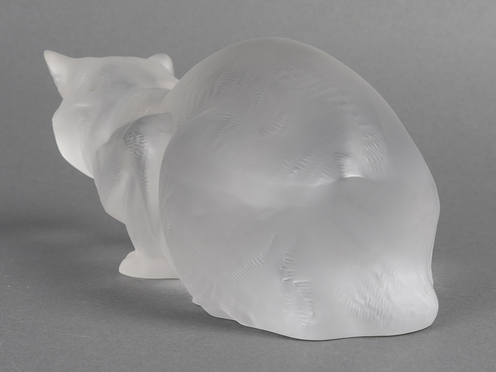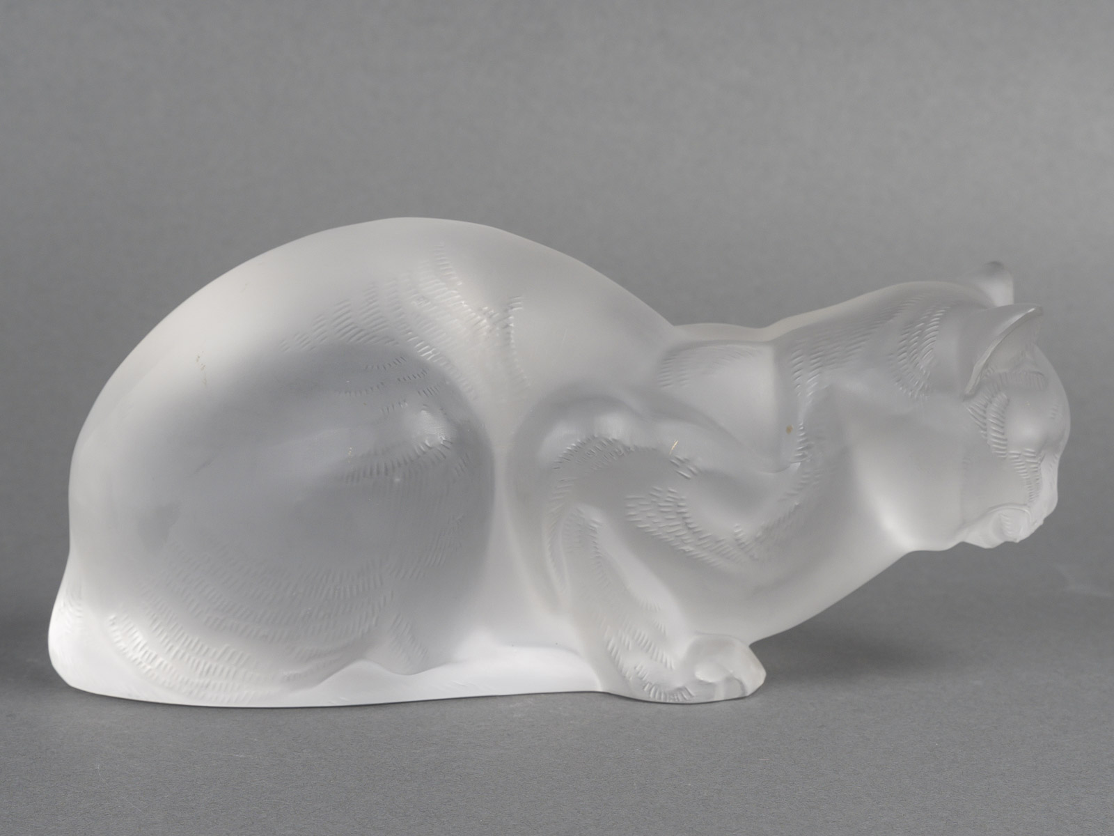 LALIQUE – Chat couché en cristal XXe Signé Lalique France