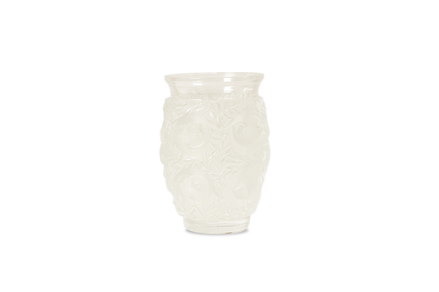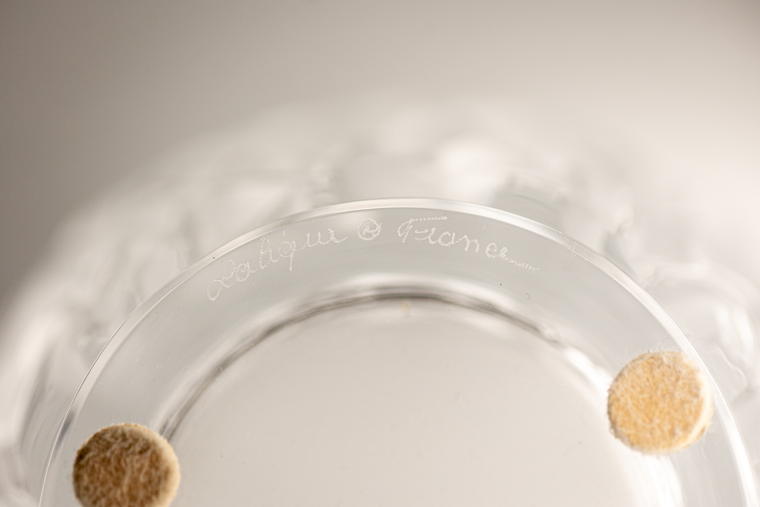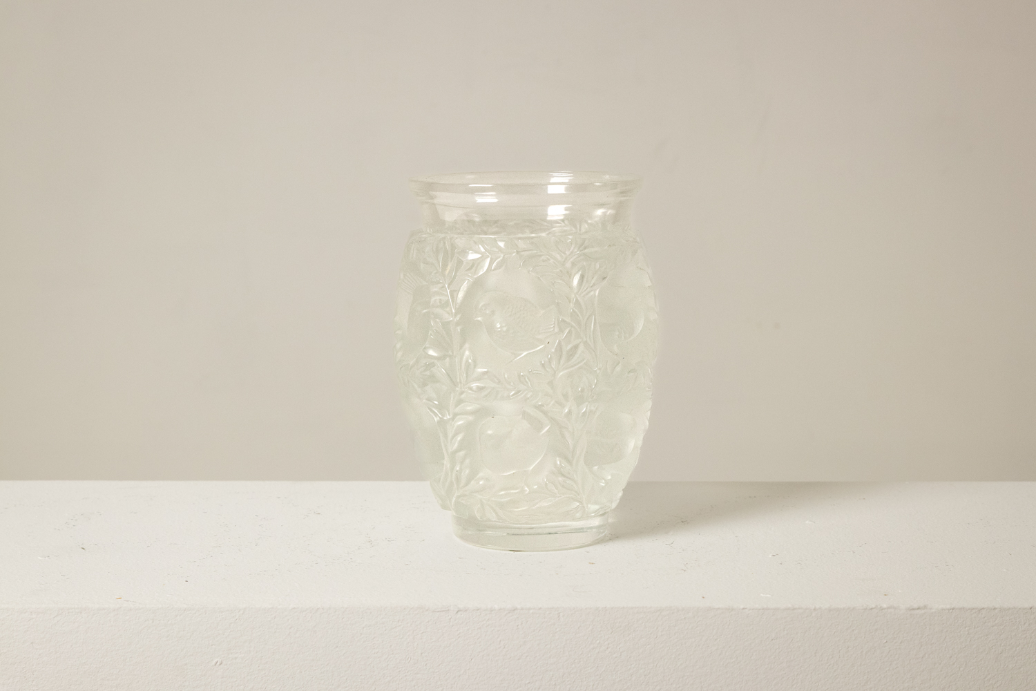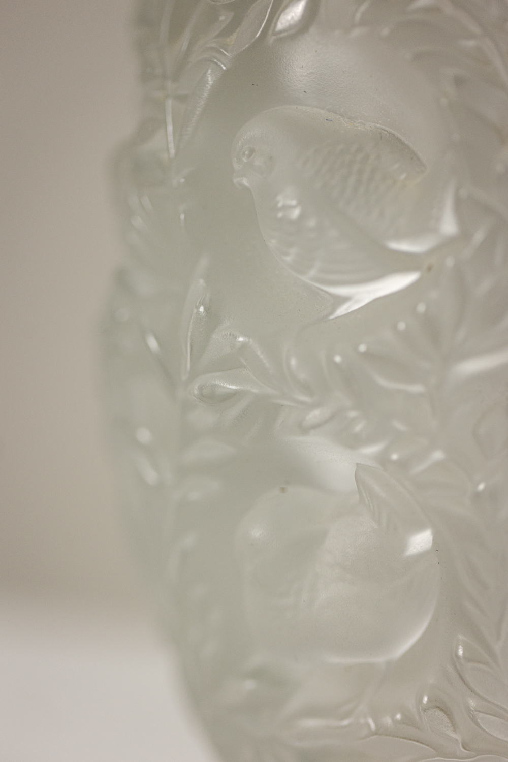 Vase bagatelle en cristal à motifs oiseaux et végéteaux. Signé dessous Lalique France.