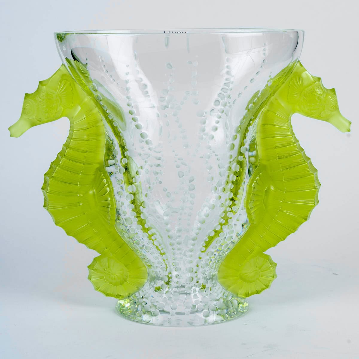 Lalique France – Vase Poséidon Cristal Blanc et Vert Absinthe – NEUF – 92/99