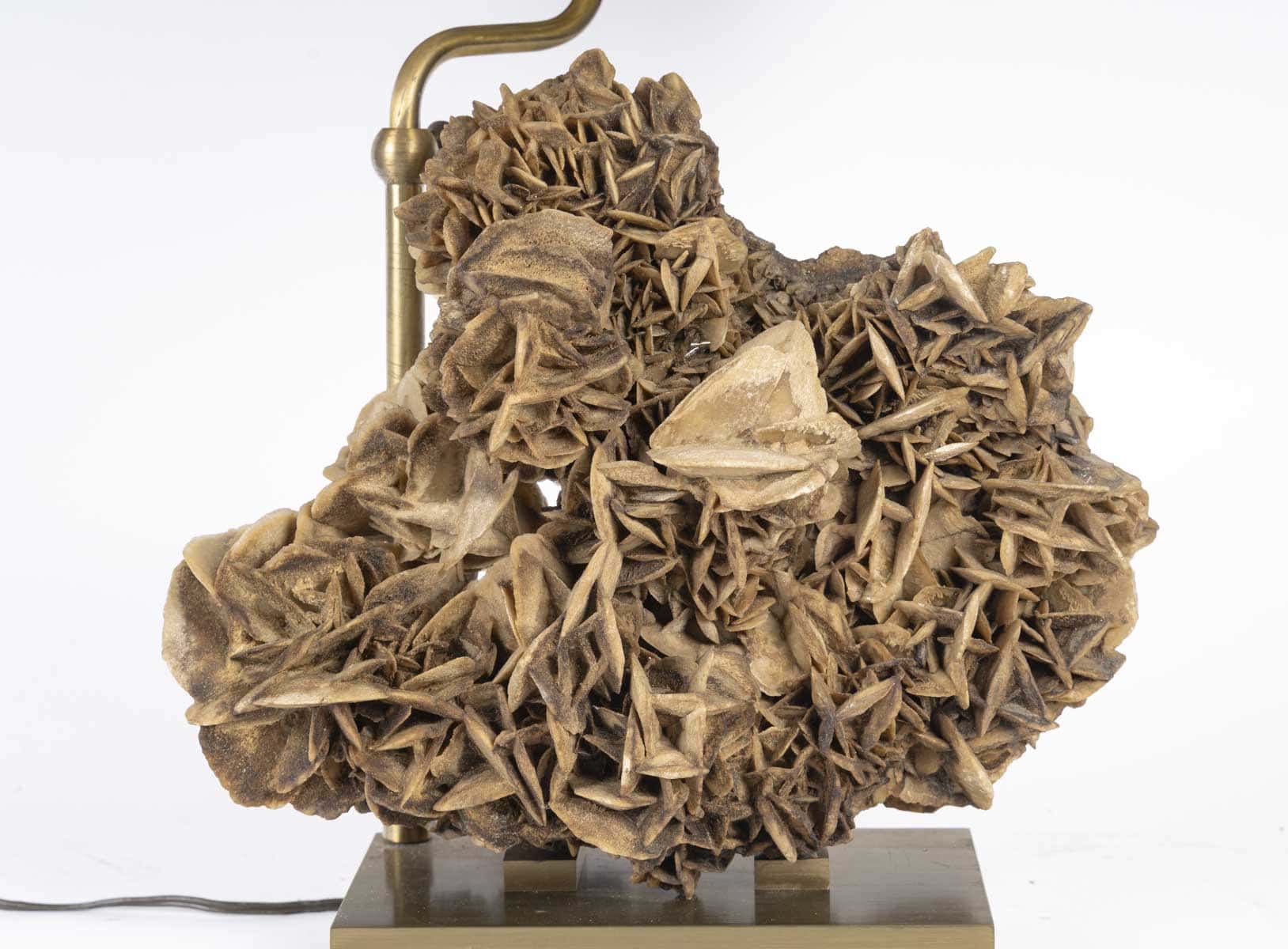 Lampe de table en laiton ornée d’une importante rose dues sables