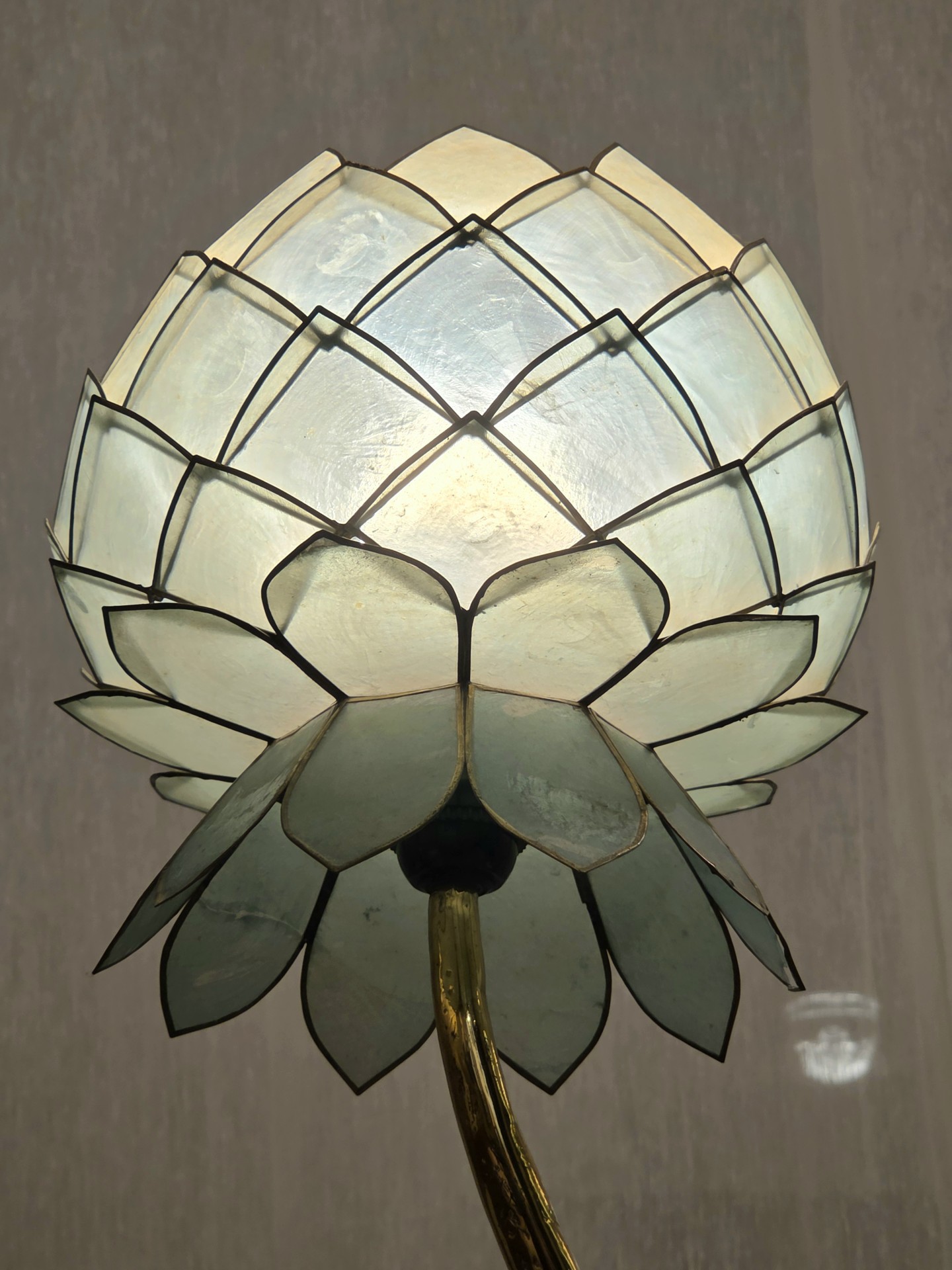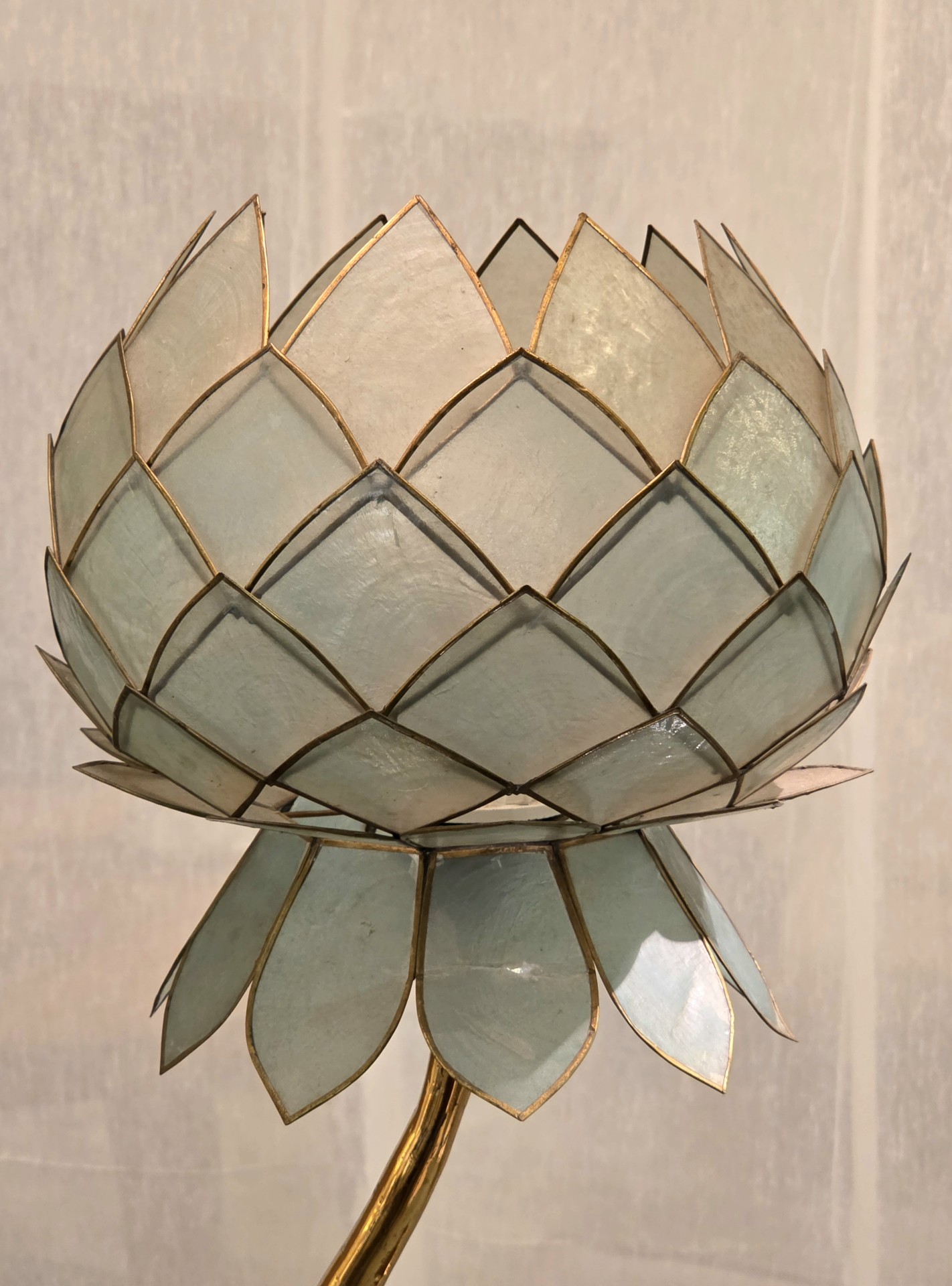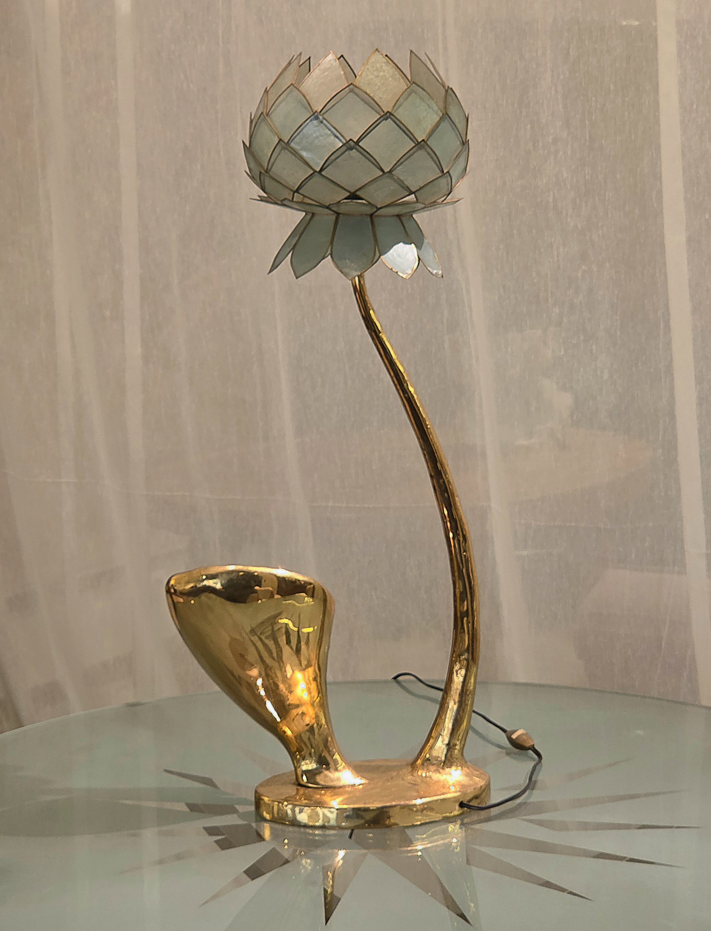 Lampe Sculpture Lotus, Bronze, Agate et Nacre, 1970s