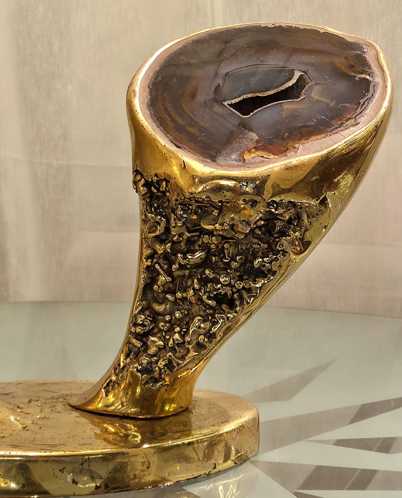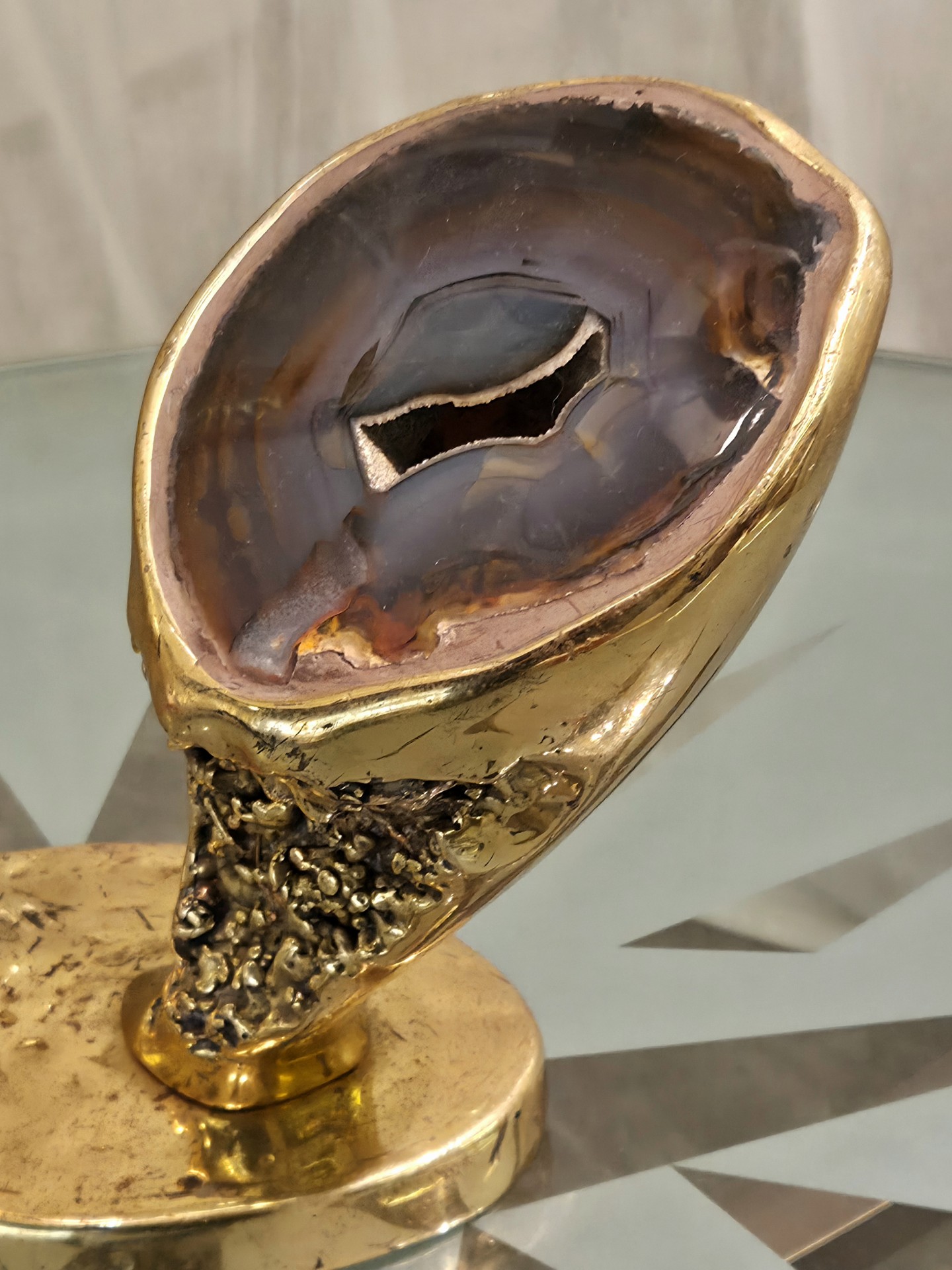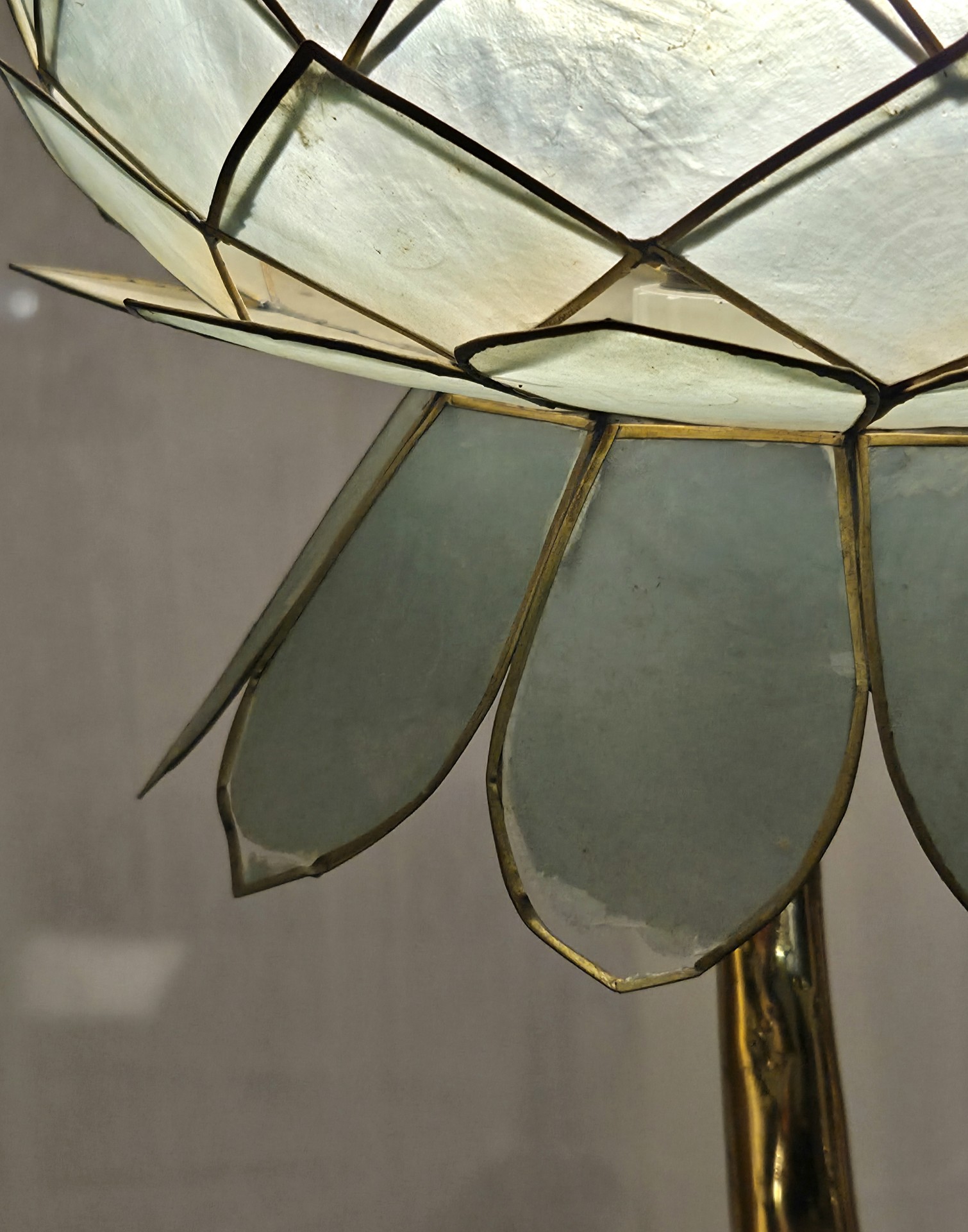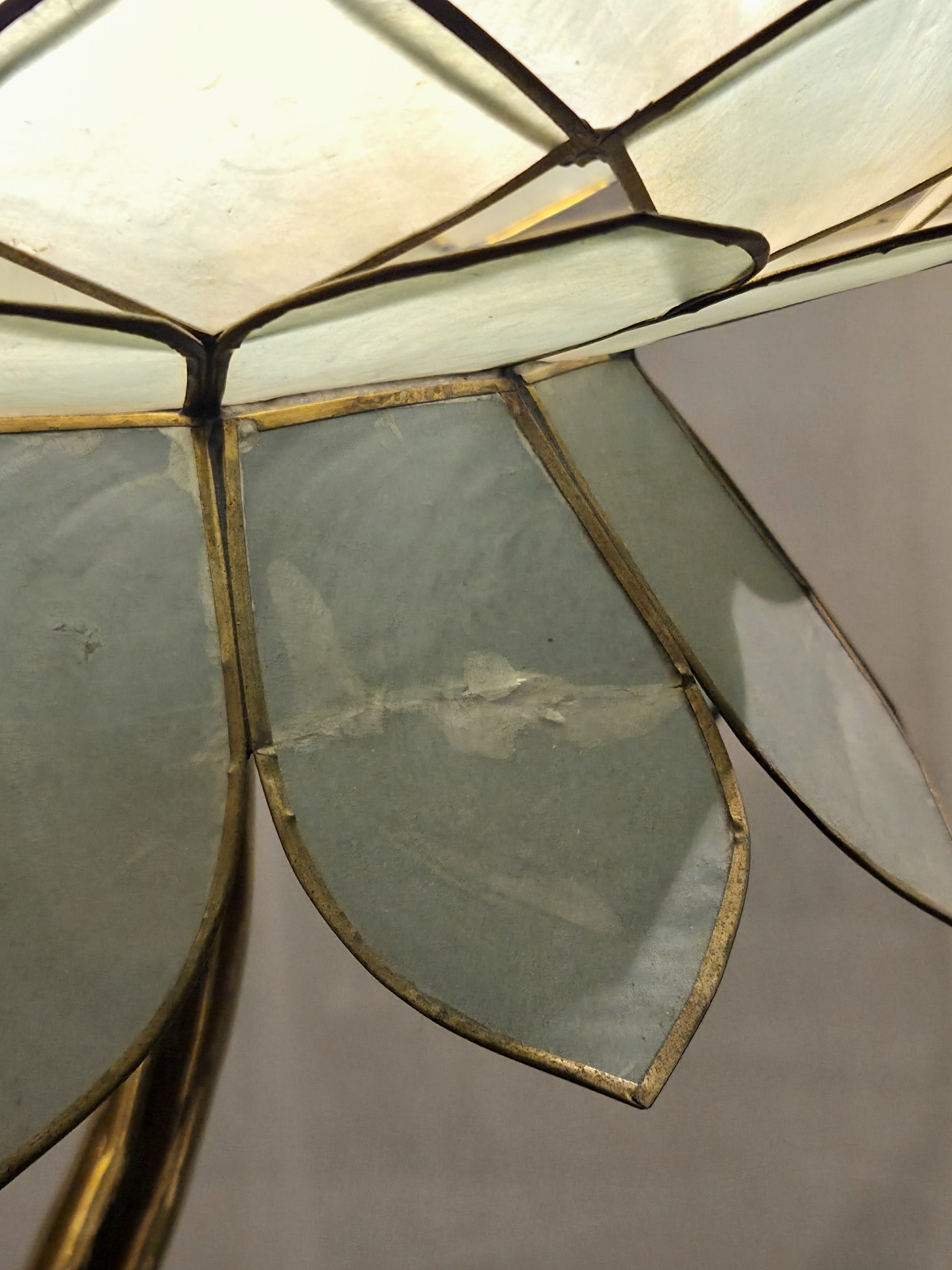 Travail des années 1970s en bronze, pierre d’agate et Abat jour en nacre.