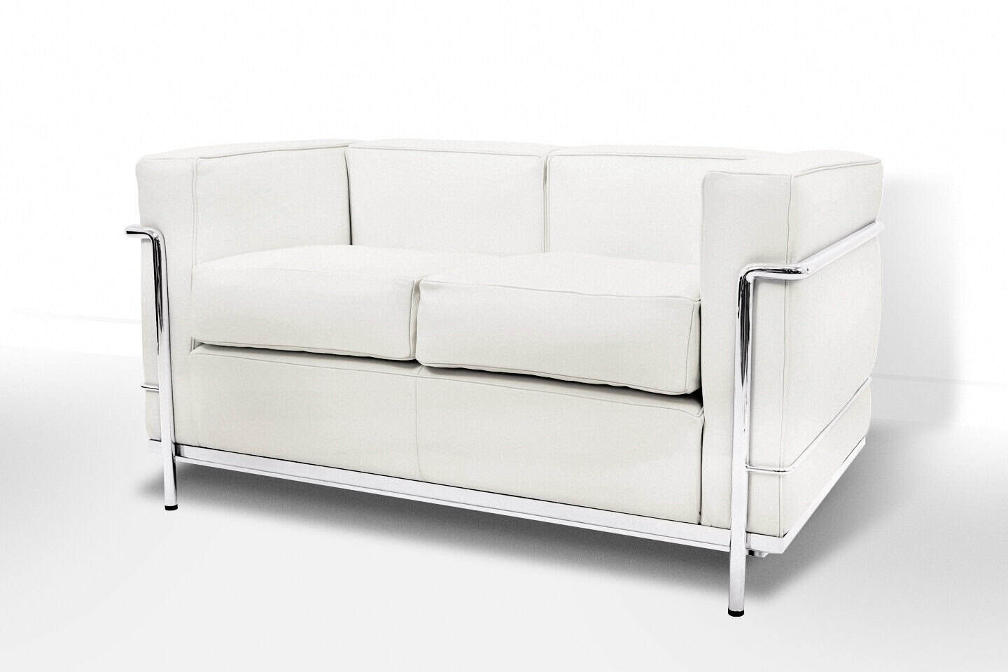 Le Corbusier, Perriand, Jeanneret – Cassina – Canapé LC2 Cuir Blanc 2 places NEUF