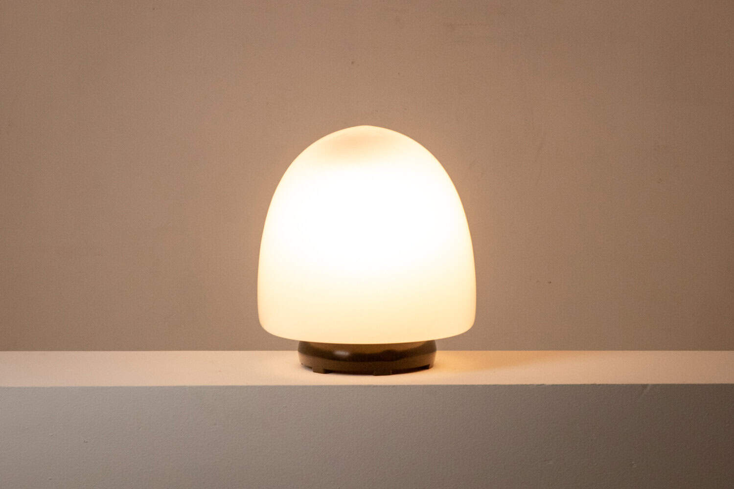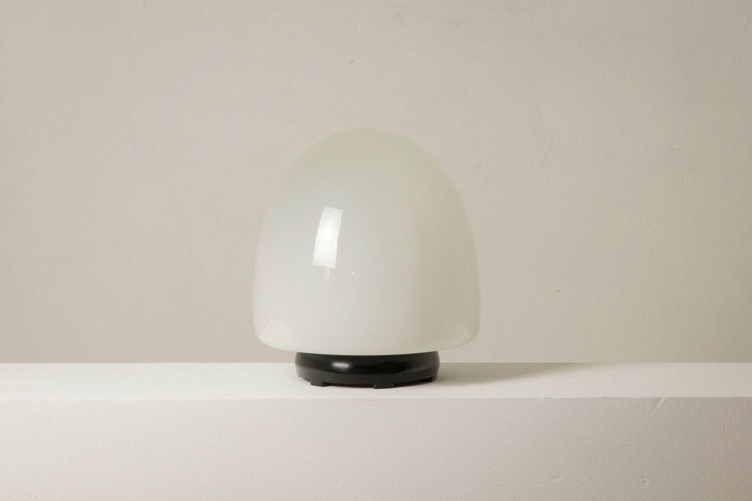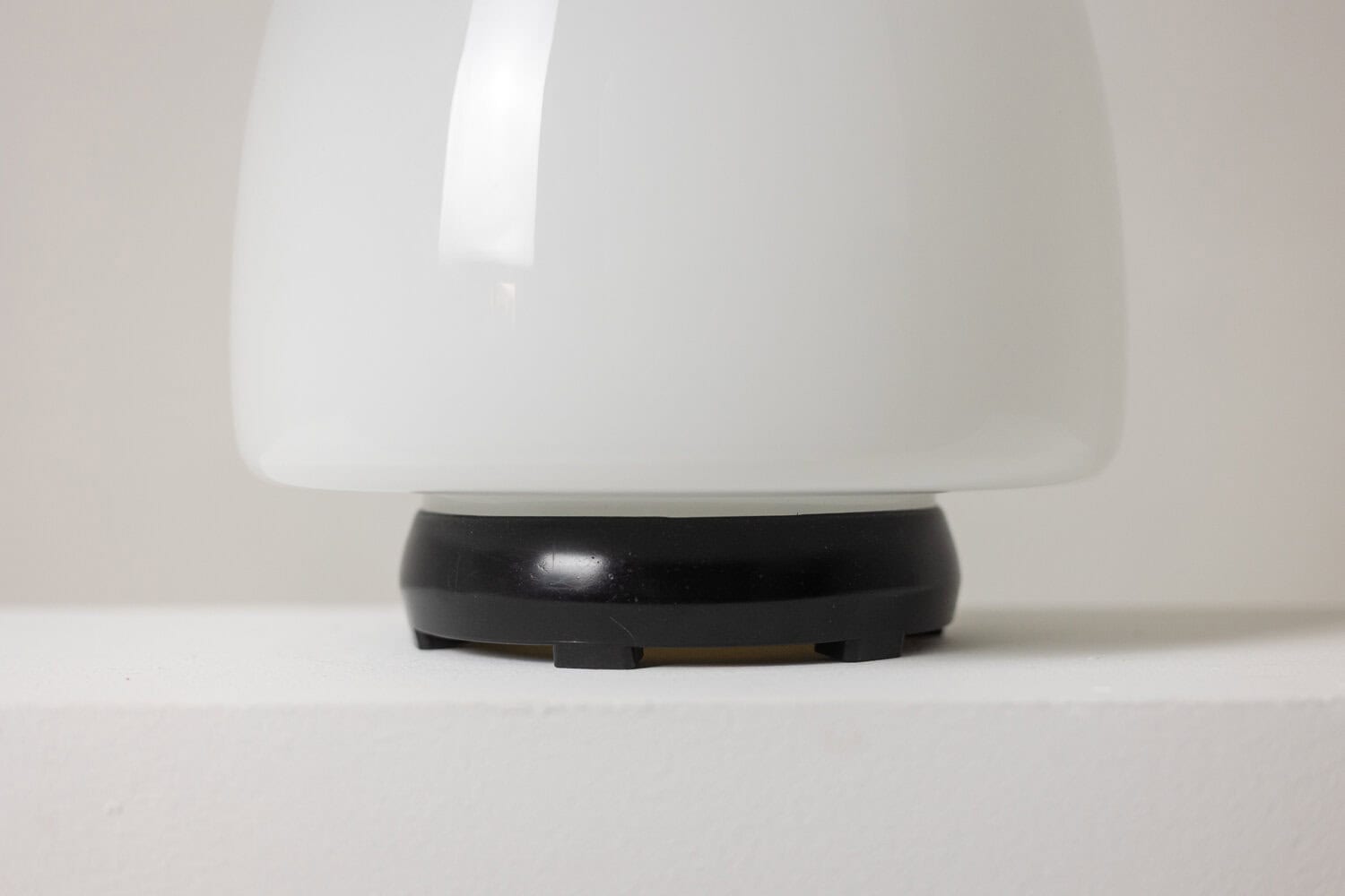 Paire de lampes en verre de forme oeuf et de couleur blanche.