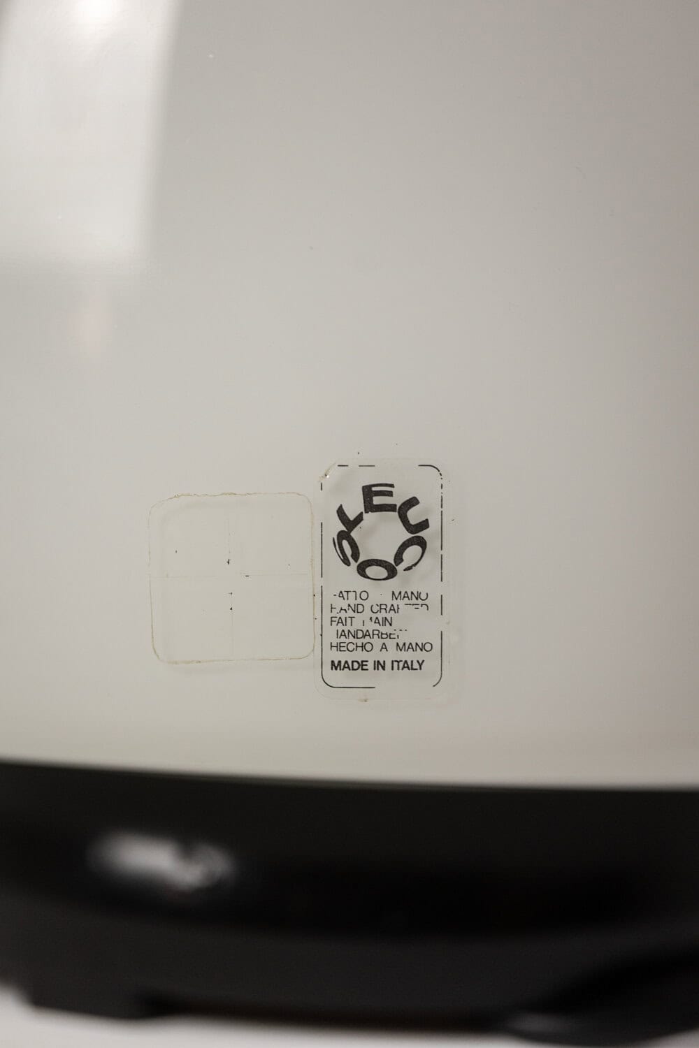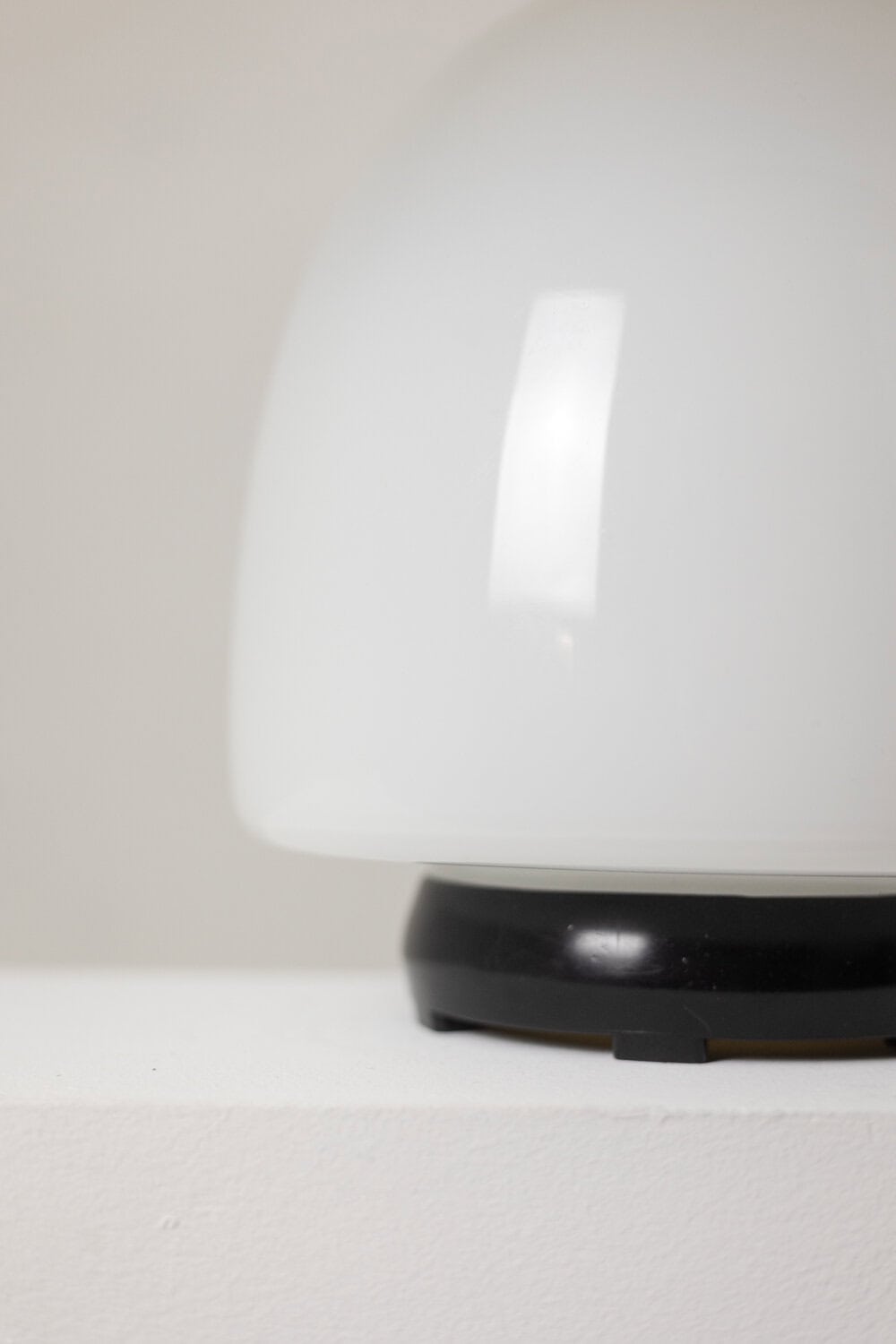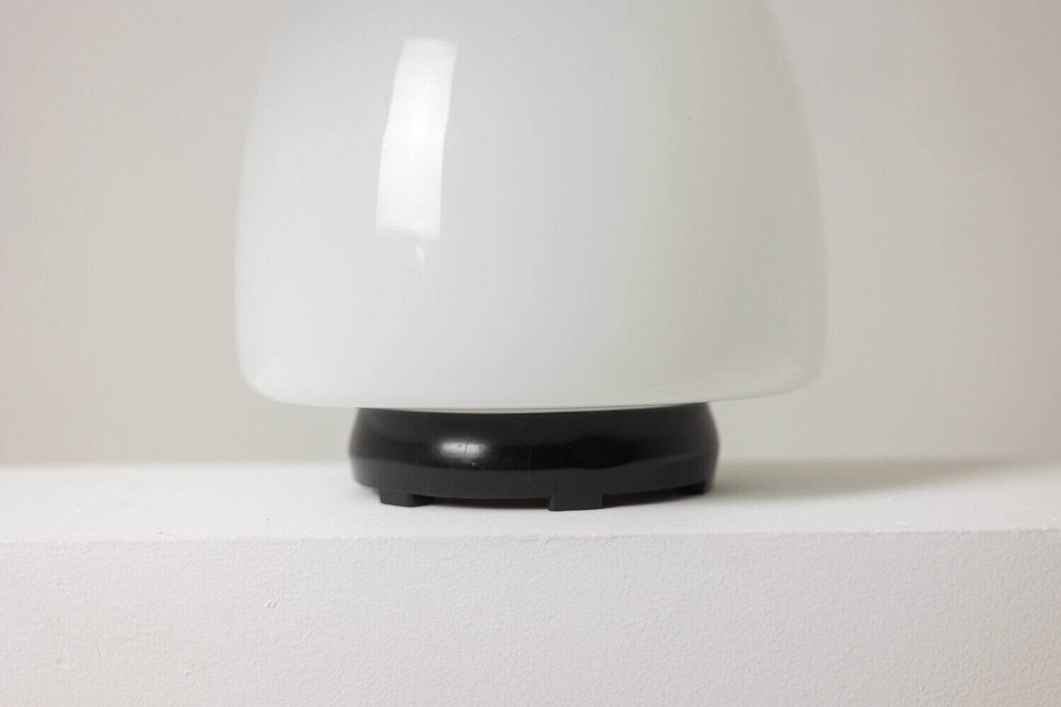 Paire de lampes en verre de forme oeuf et de couleur blanche.