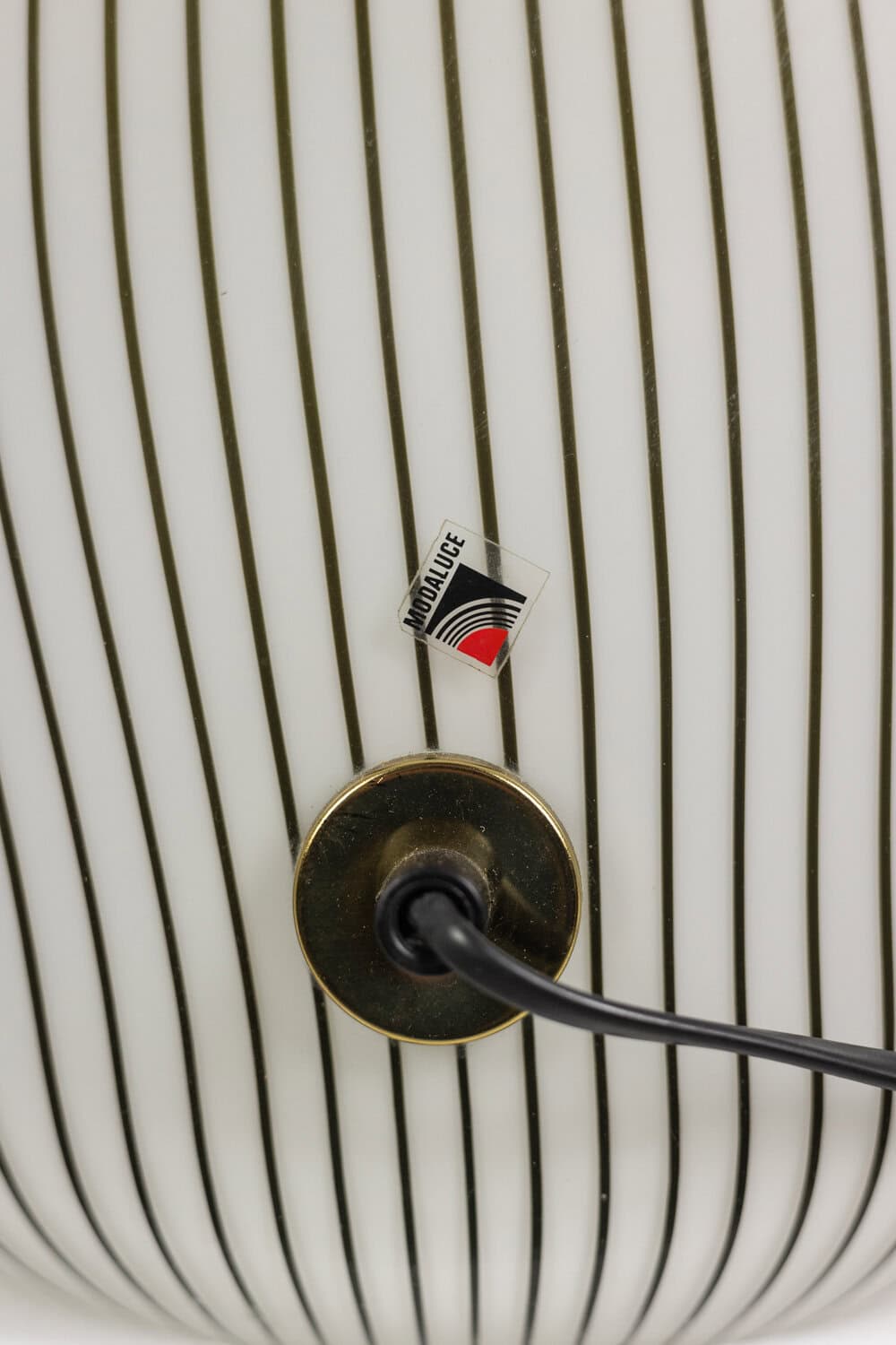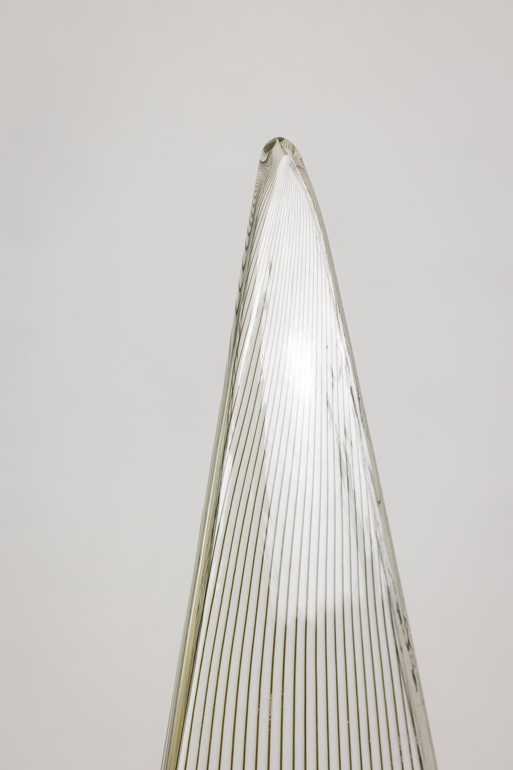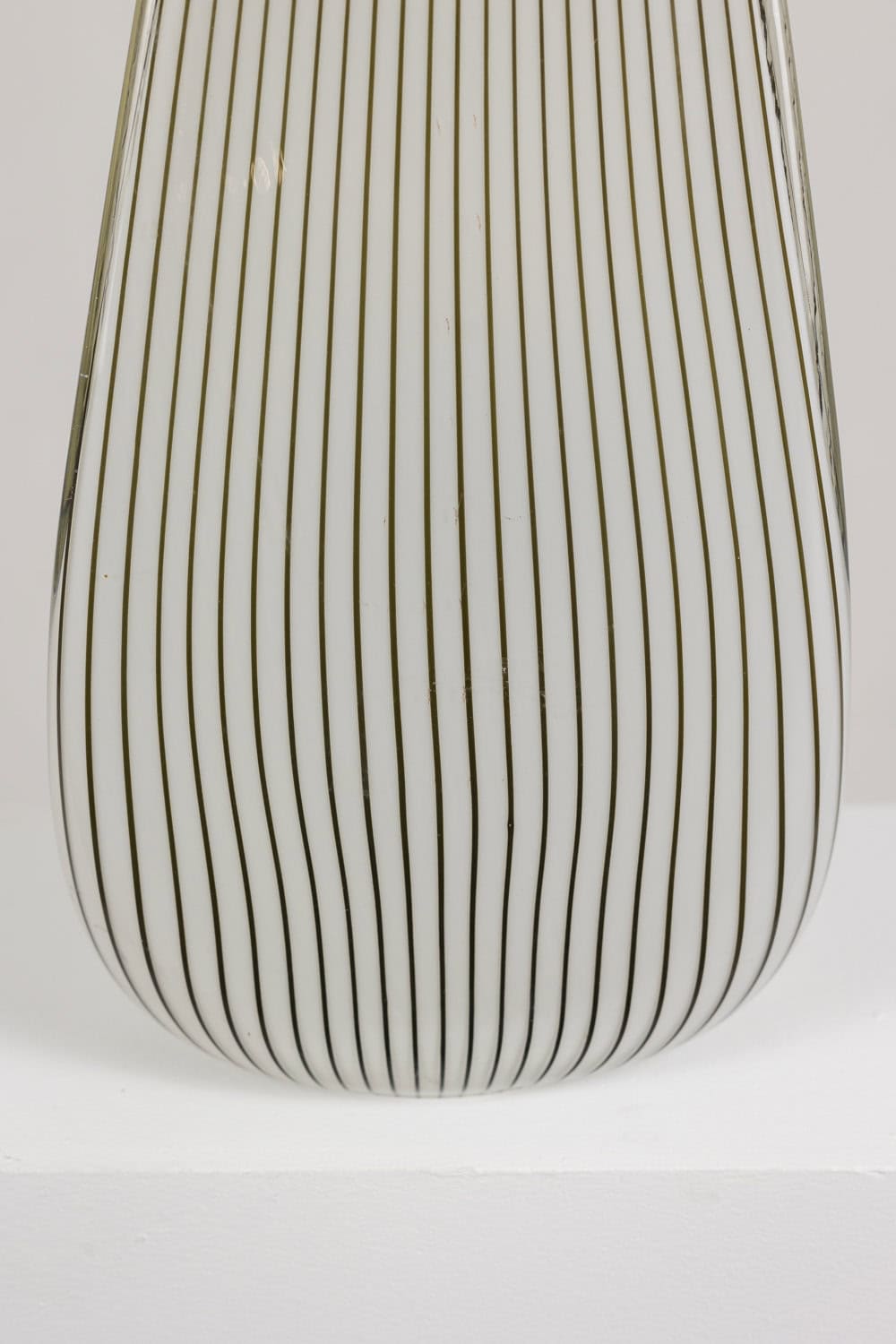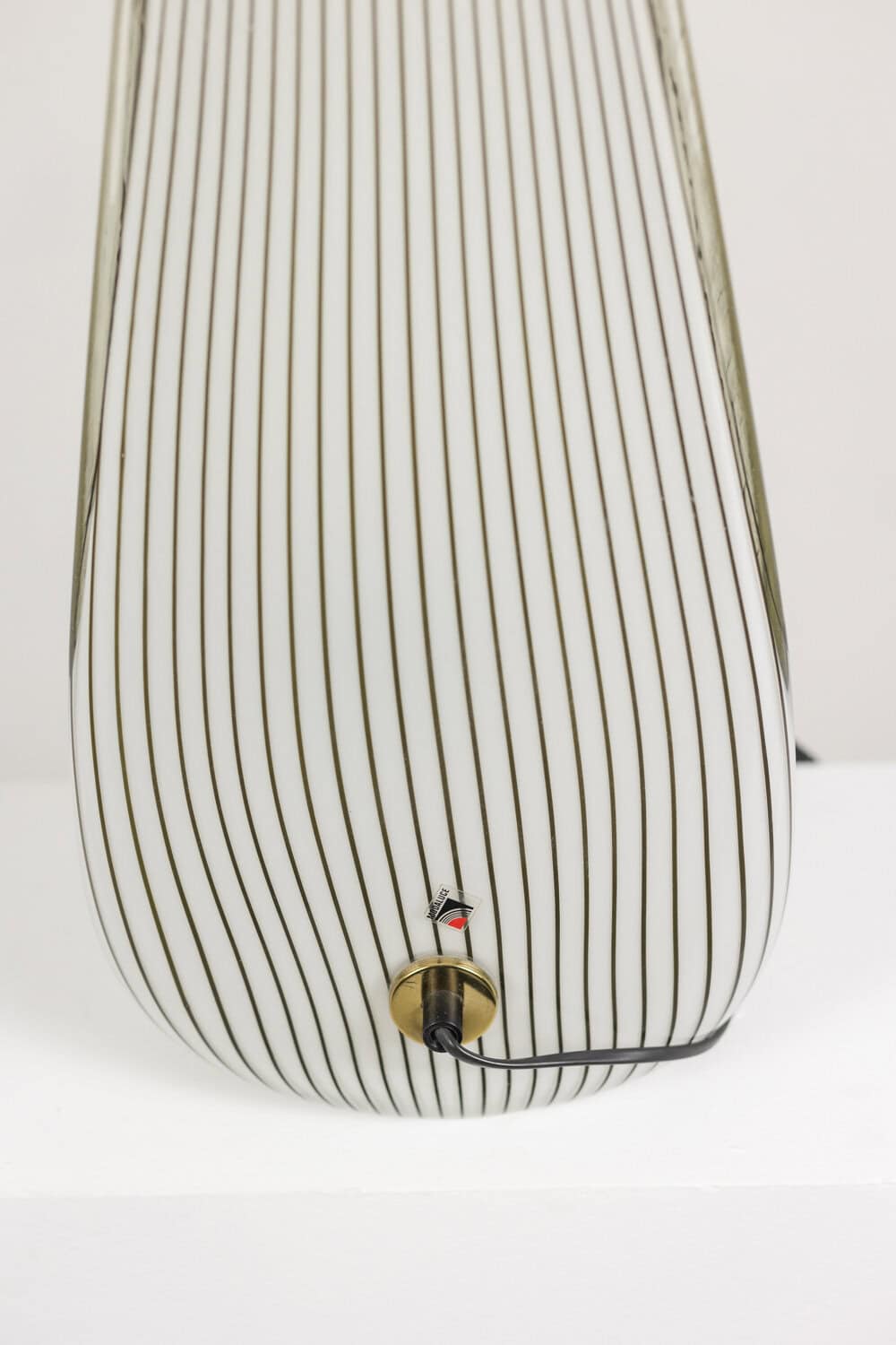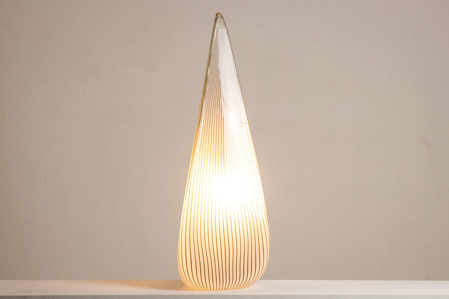 Lampe de forme cône en verre de Murano à motif rayé, de couleur blanche et noire.