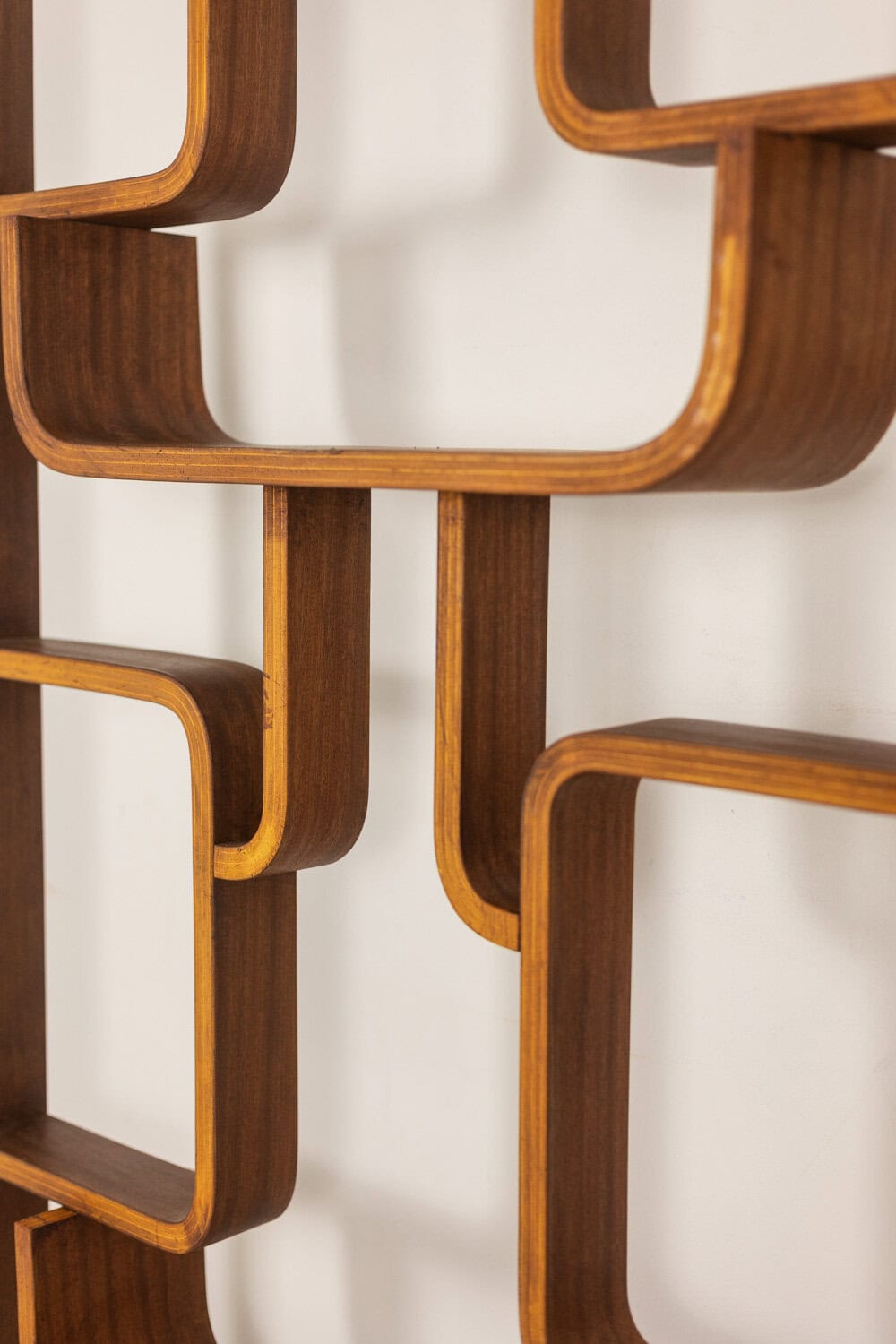 Paire d’étagères, ou cloison claustra en bois multiplis thermoformé, modèle iconique de ce designer tchèque.