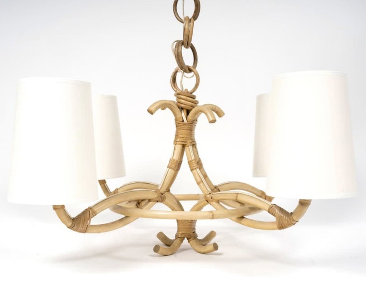 Lustre en rotin de 1960 par Louis Sognot