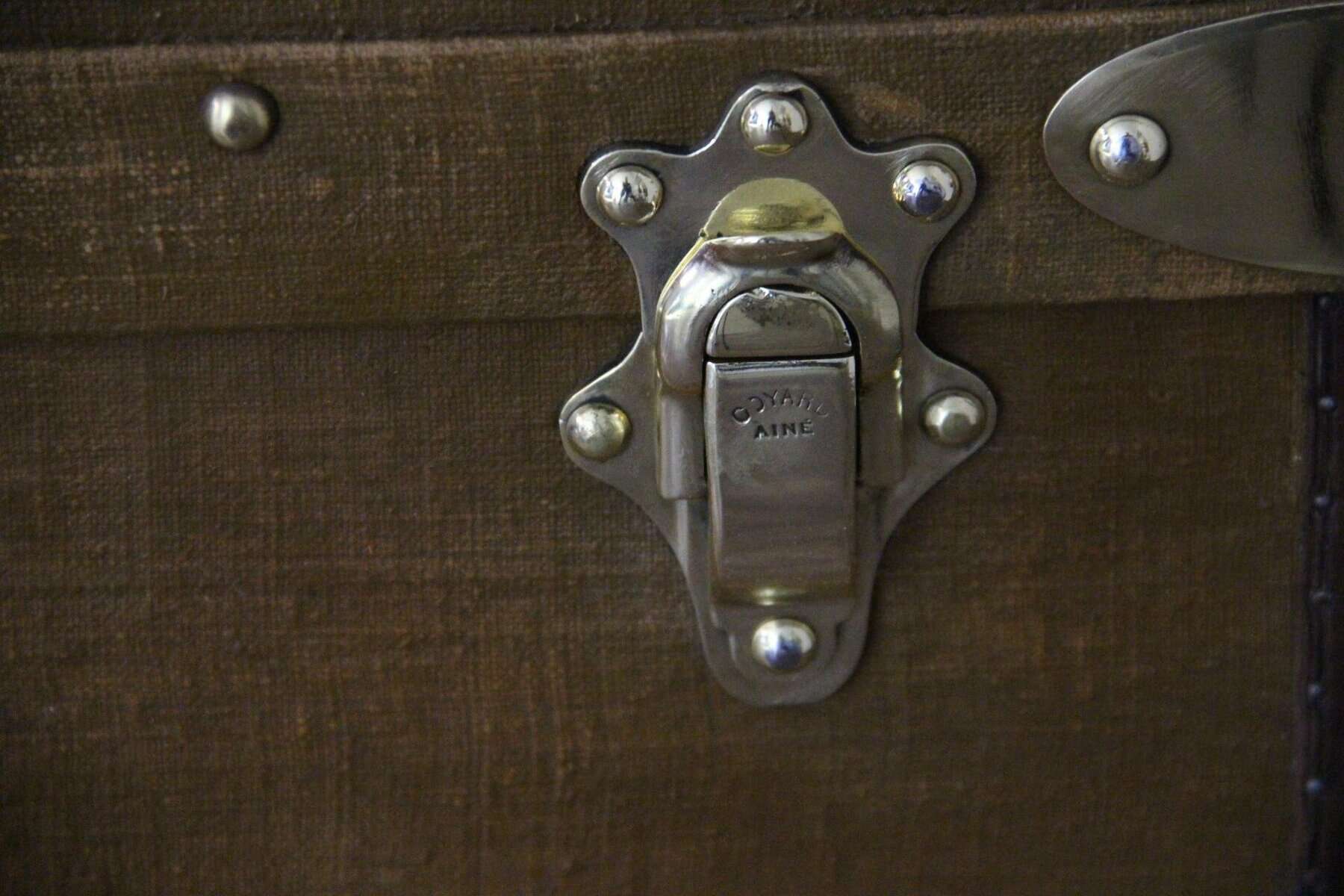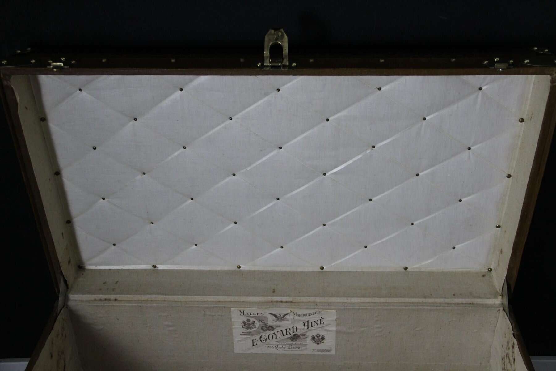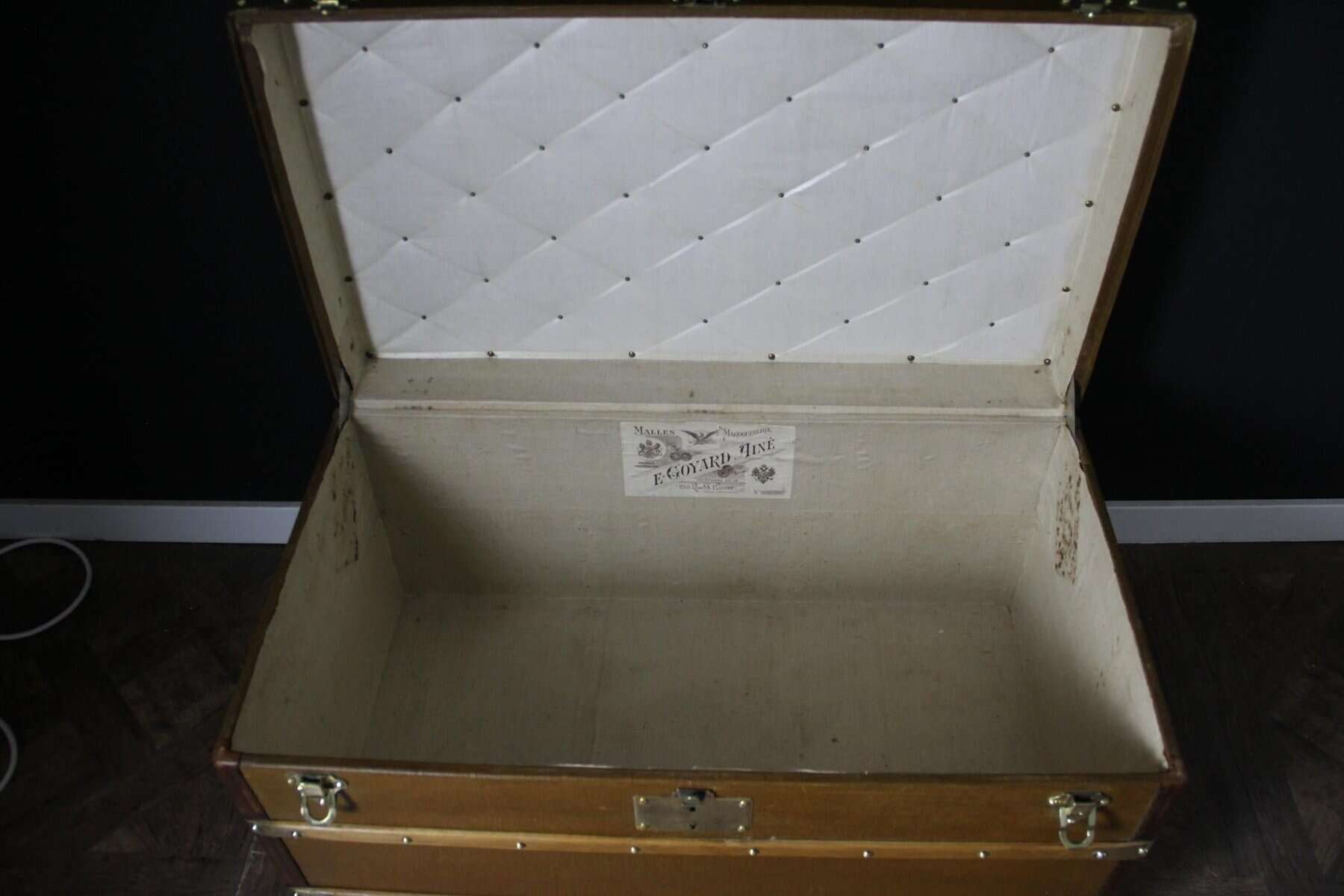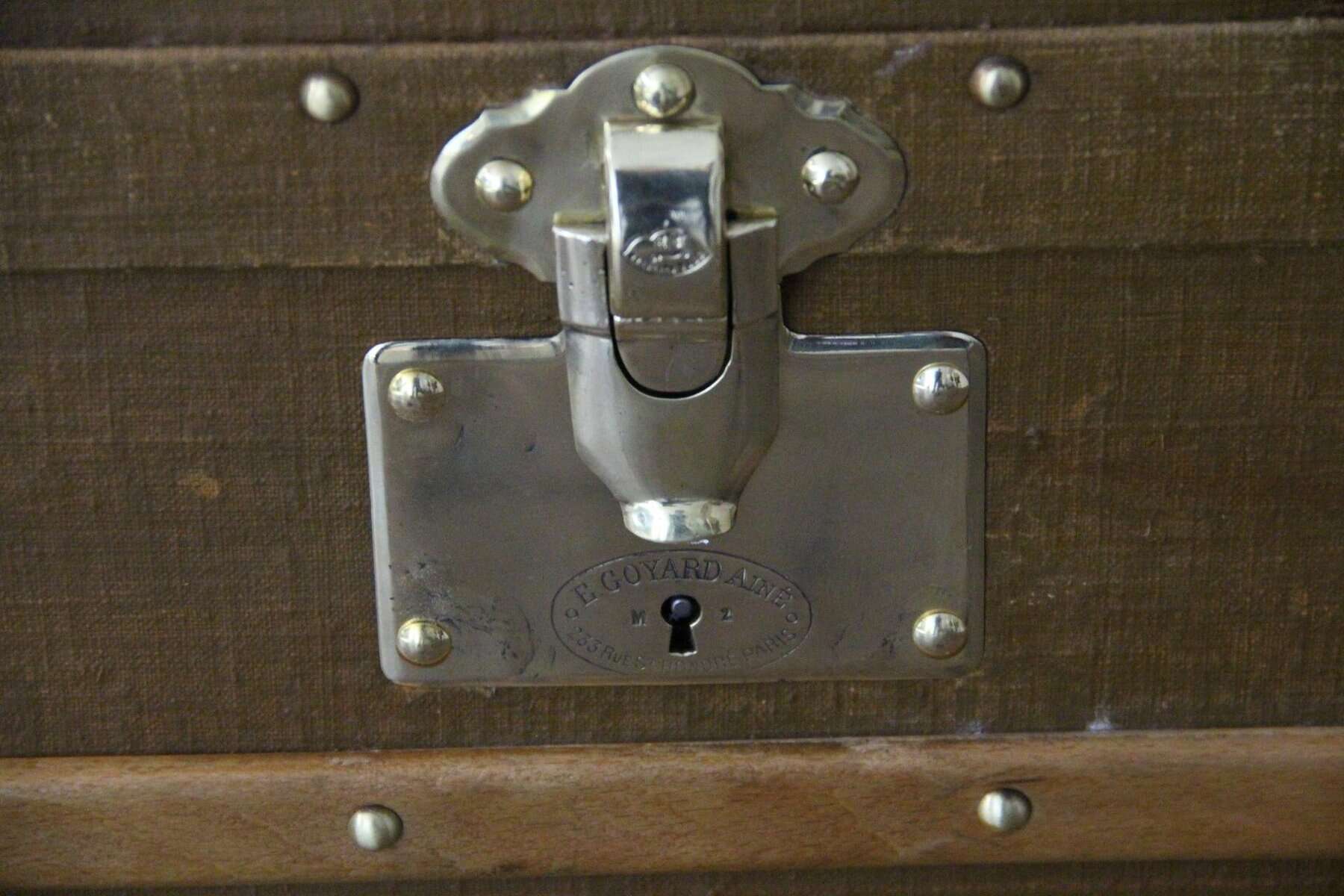 L’intérieur est également d’origine. De plus, elle porte toujours son étiquette Goyard. Elle est en bon état, propre et sans odeur. Elle est très propre compte tenu du fait qu’il s’agit d’une malle de voyage antique, de plus de 100 ans. Vous pouvez l’utiliser pour le rangement. Grâce à sa taille, cette malle de voyage Goyard pourrait faire une magnifique table d’appoint, un coffre à couvertures ou une table basse. Cette très belle malle Goyard ajouterait une touche de chic français à tous les styles d’intérieur…