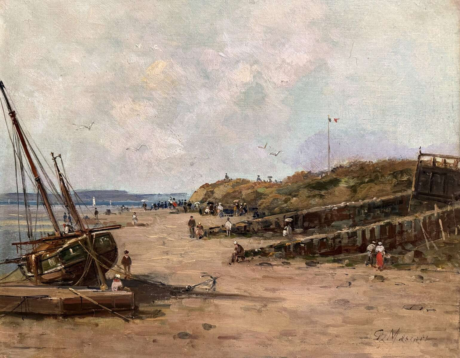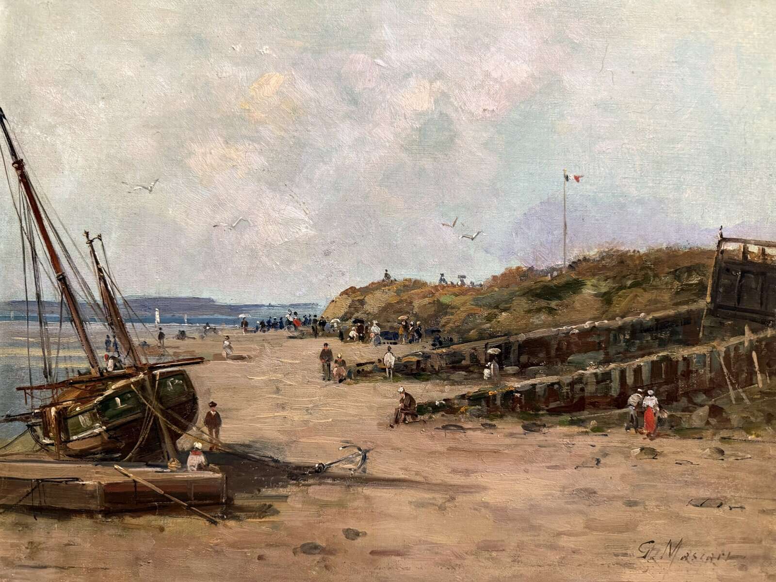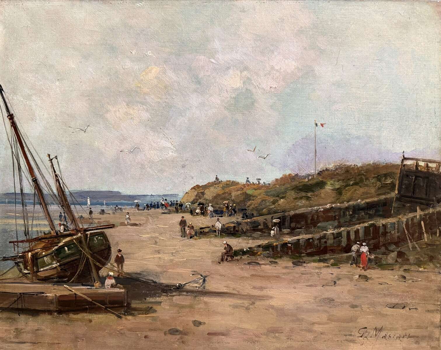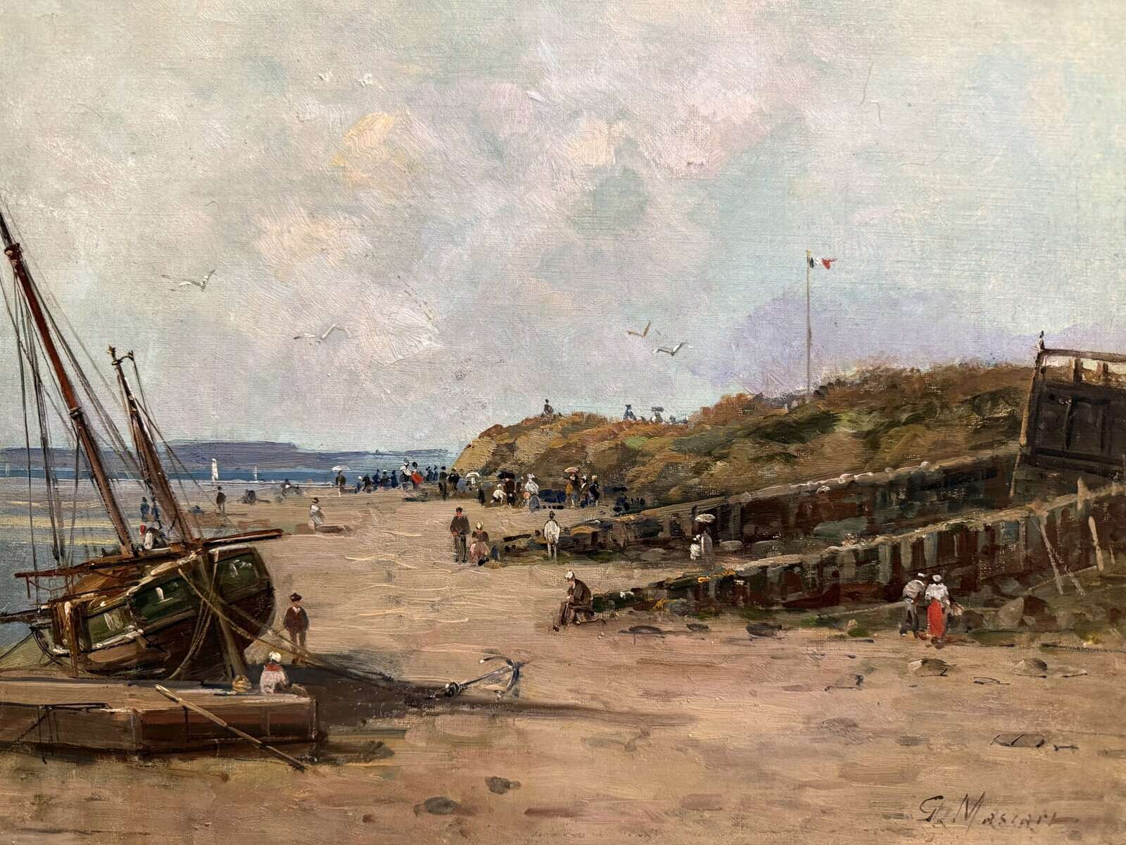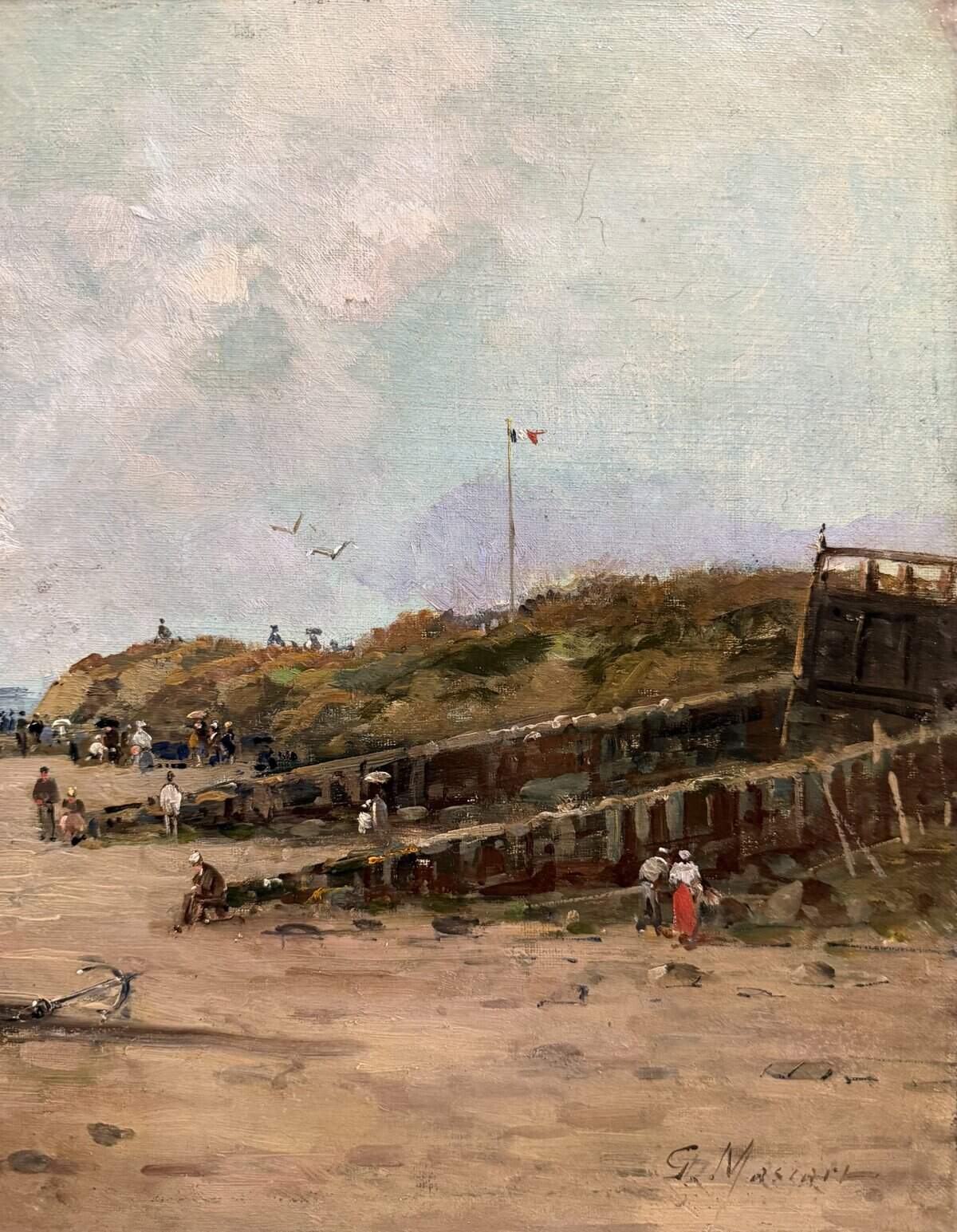 MASCART Gustave Tableau Français 19è Animation sur la plage Huile sur toile signée Certificat d’authenticité.
