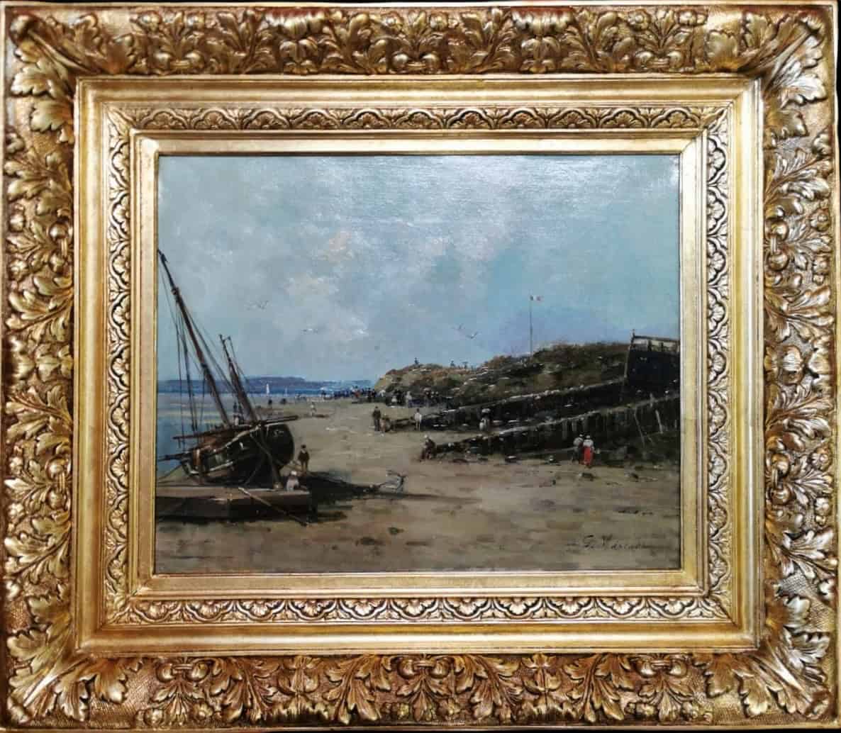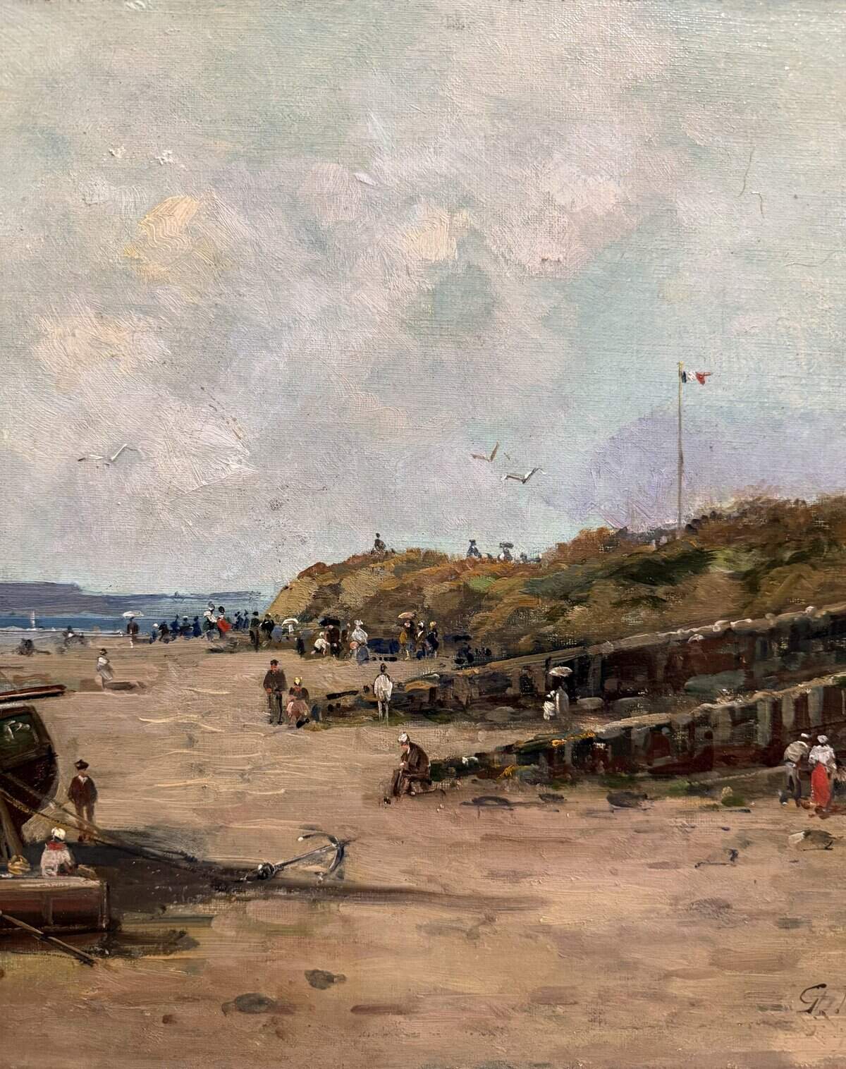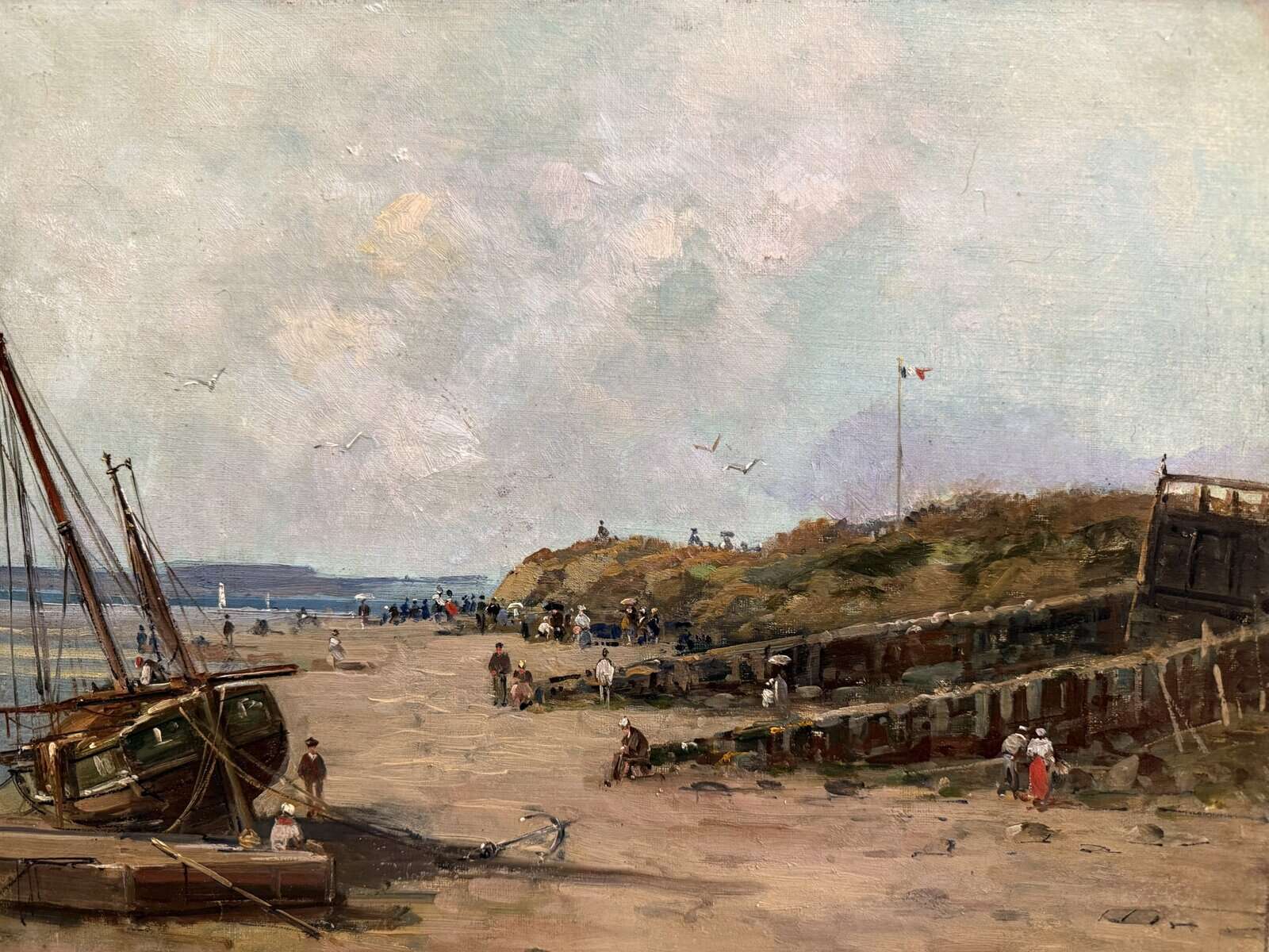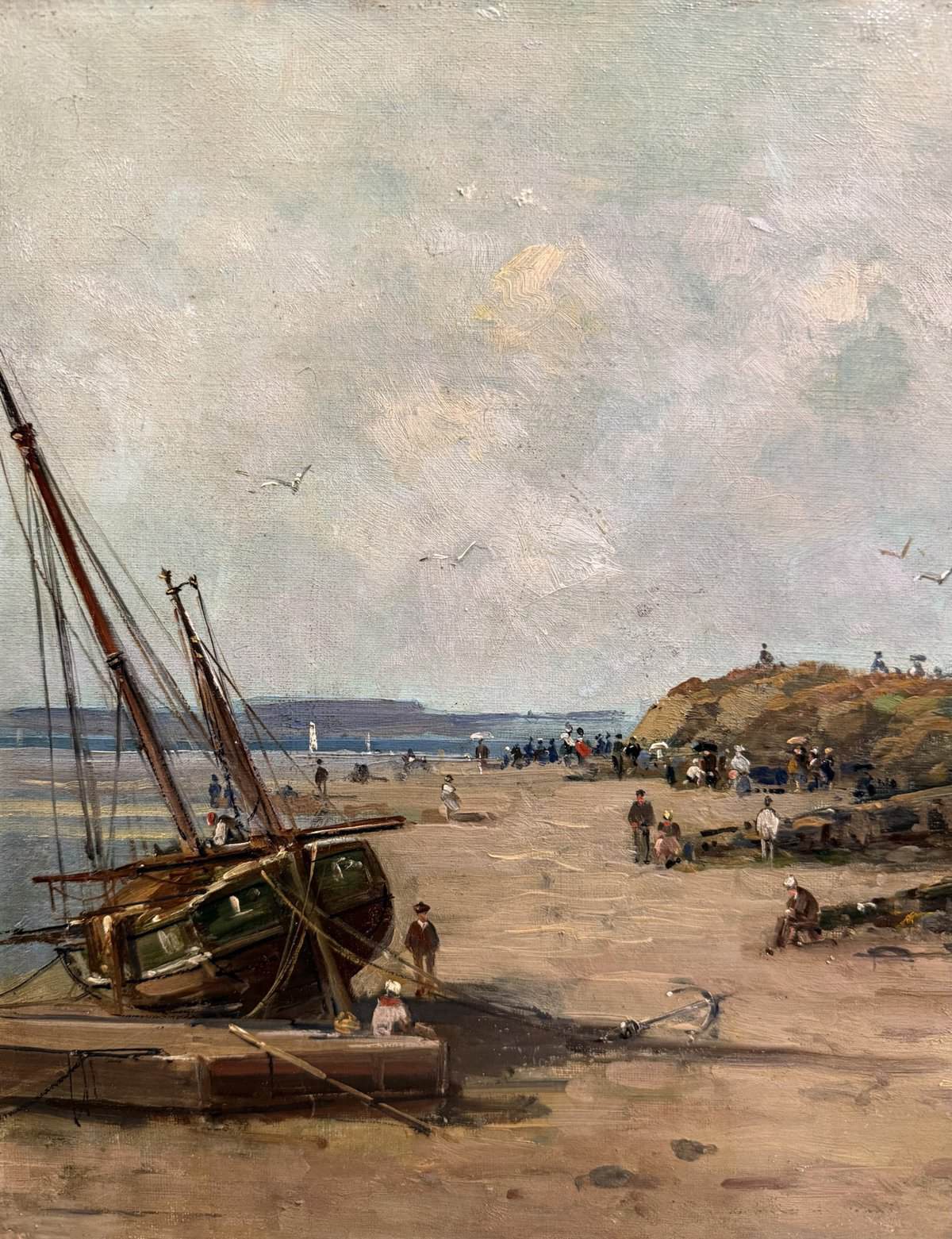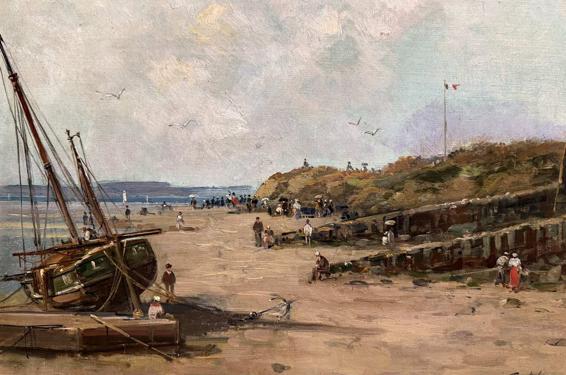 MASCART Gustave Tableau Français 19è Animation sur la plage Huile sur toile signée Certificat d’authenticité.