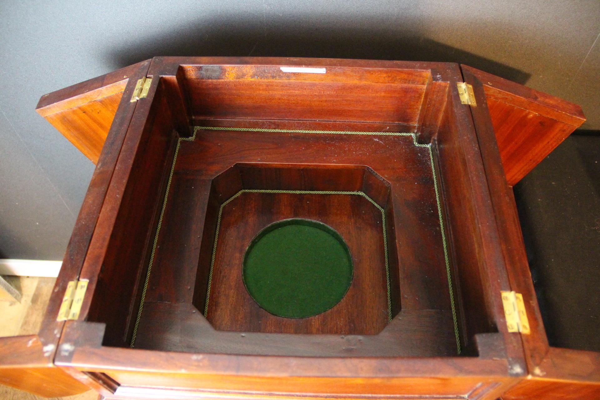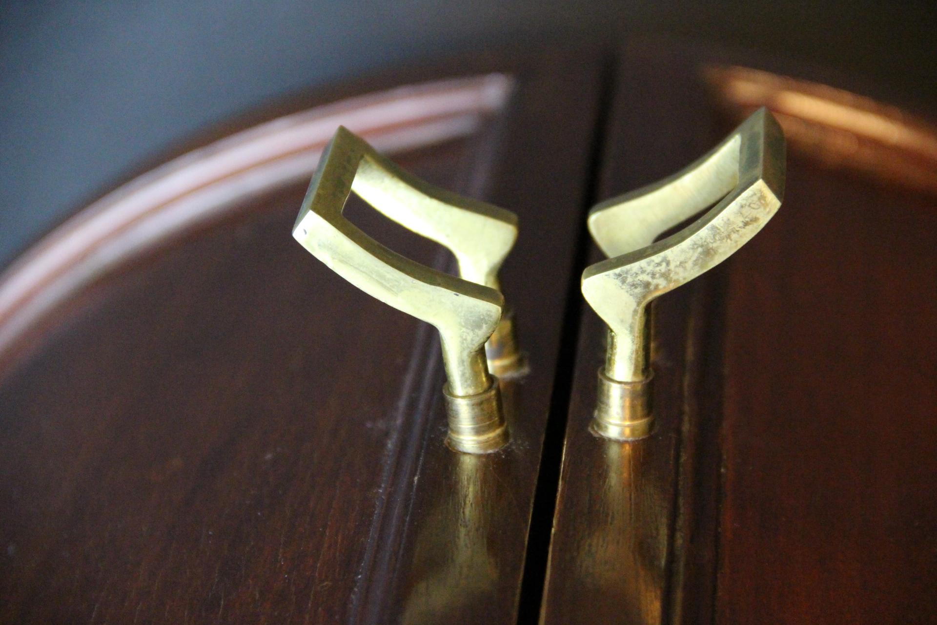 Ce bar d’appartement anglais est particulièrement inhabituel et élégant. Fabriqué en magnifique noyer de couleur marron, des années 1920, son dessus en forme d’arc s’ouvre grâce à 2 poignées en bronze massif pour révéler un intérieur époustouflant composé d’un ensemble complet de 6 verres à champagne Baccarat et d’un magnifique seau à glace en métal argenté. Tous ses verres sont estampillés Baccarat. Chaque verre est maintenu à l’intérieur grâce à un anneau ajusté ainsi que le seau à glace. C’est un véritable meuble surprise car de l’extérieur, on ne peut pas imaginer ce qui se cache à l’intérieur mais quand il s’ouvre, il révèle son magnifique aménagement intérieur. C’est un bar de qualité supérieure . Cette meuble métamorphique ajoutera une touche de classe à tous les styles d’intérieurs et sera certainement un excellent sujet de conversation.