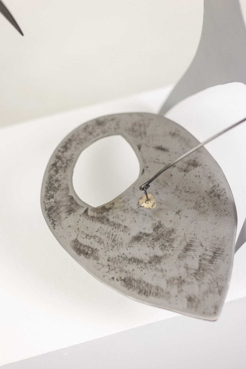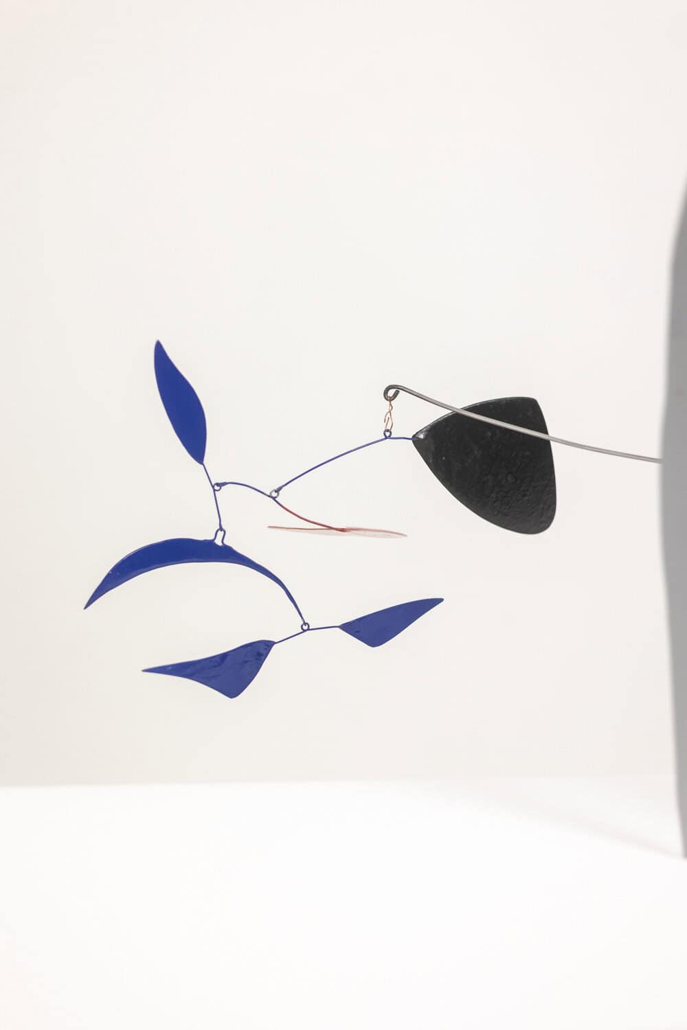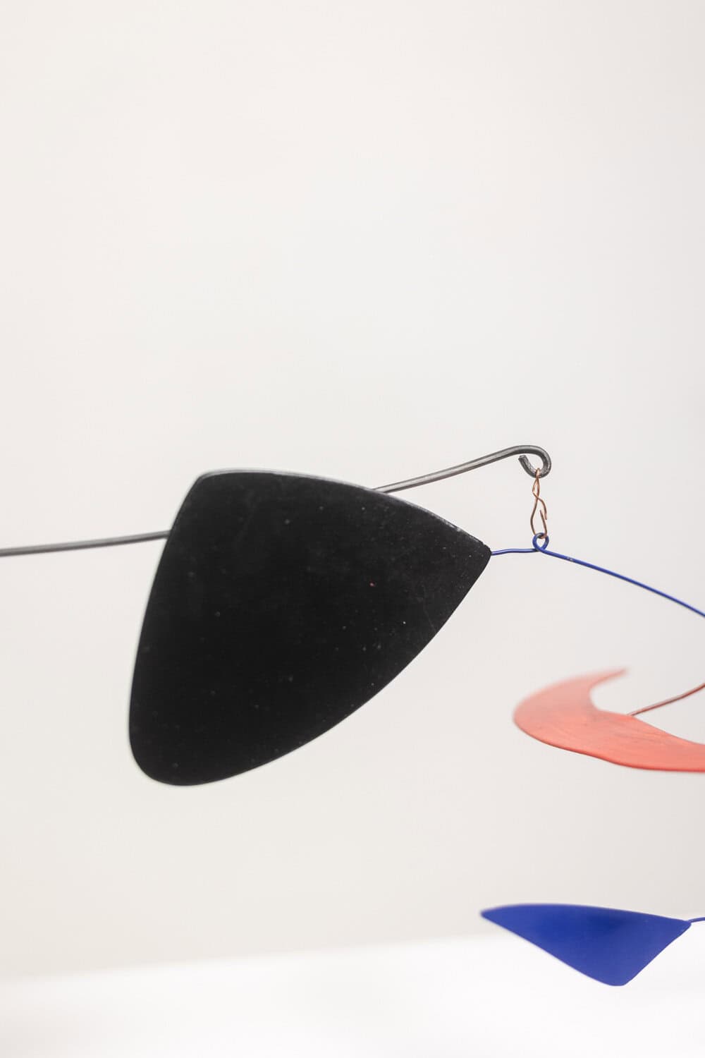 Sculpture stabile et mobile, en métal brut et métal laqué noir, bleu et rouge.